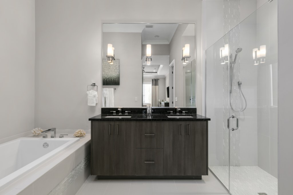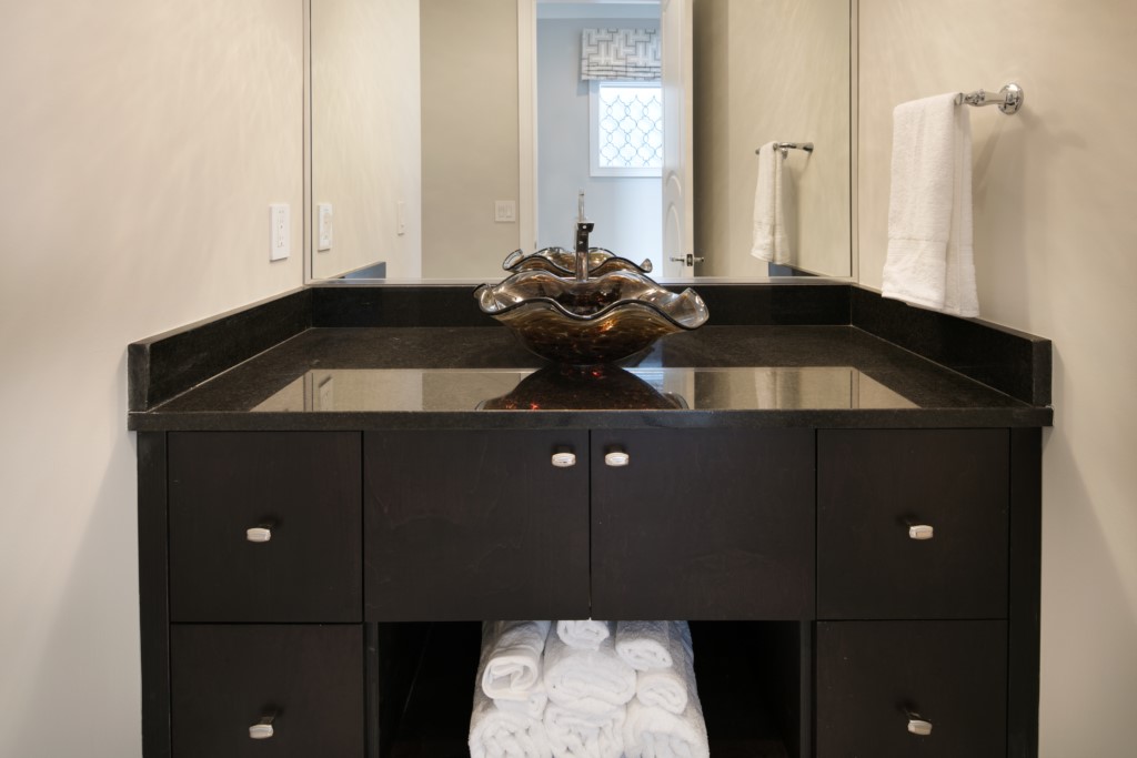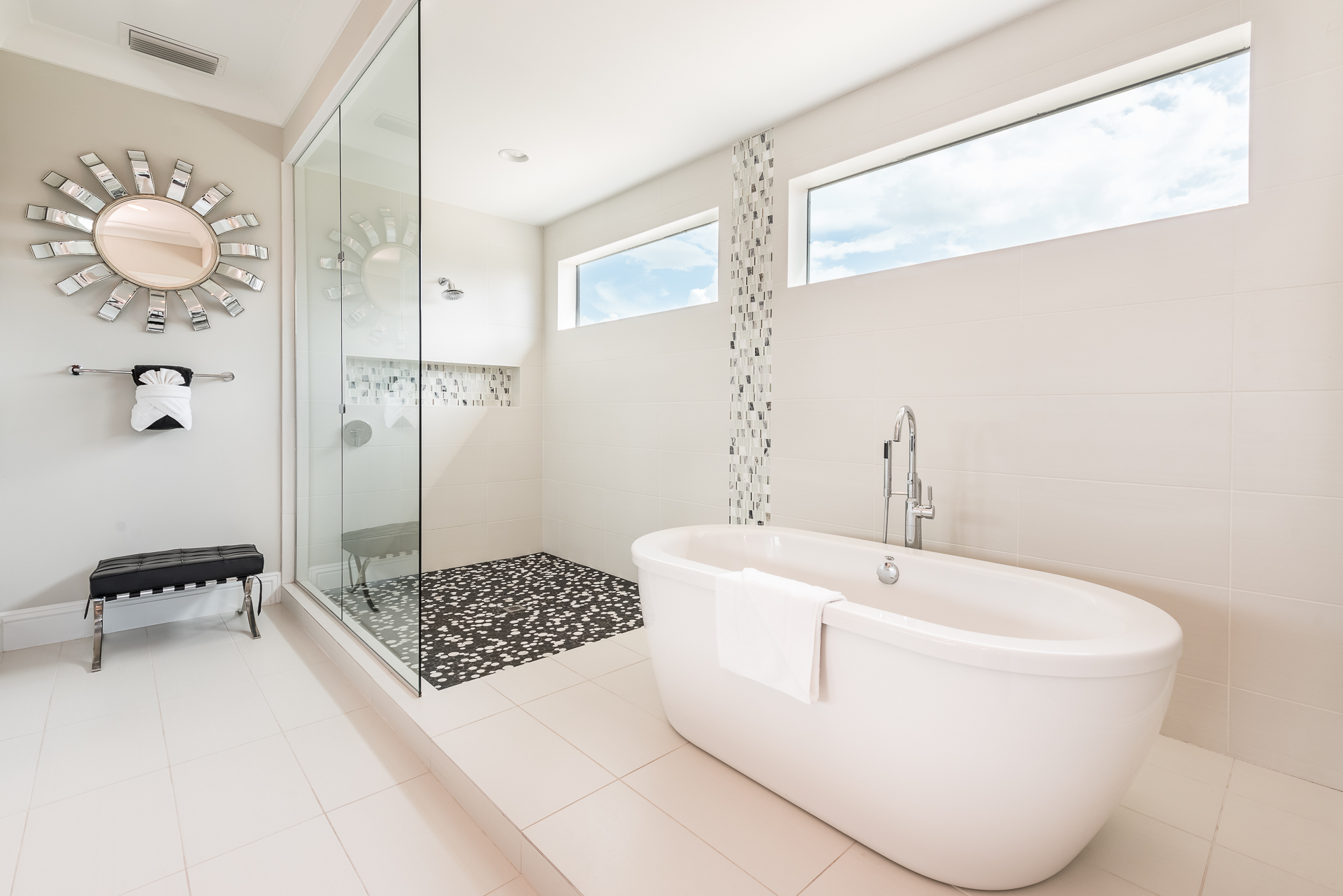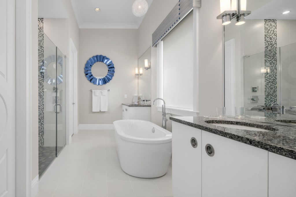 King sized Master with en suite (shower, tub, two separate vanities) and an accent chair