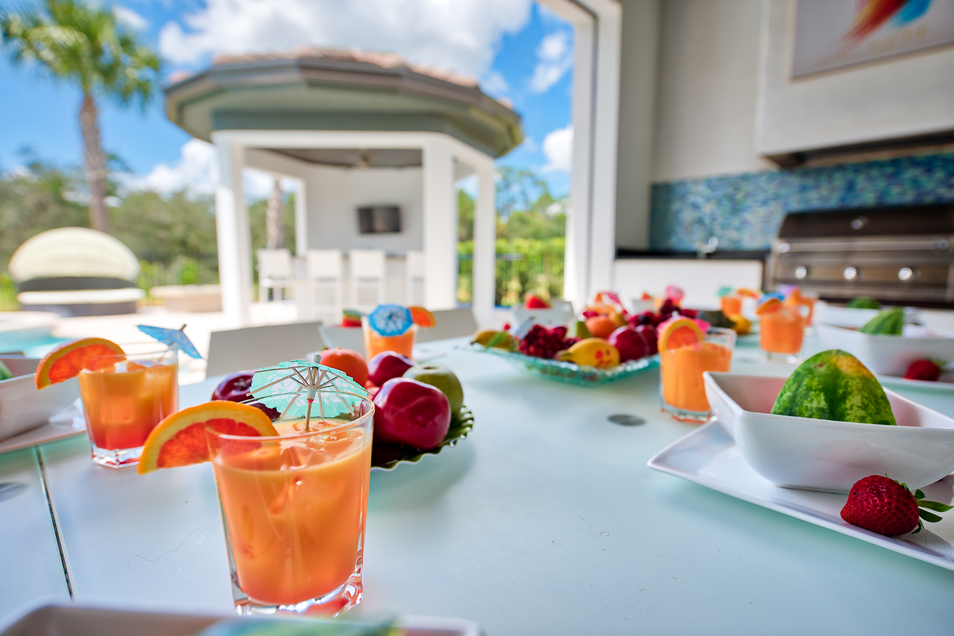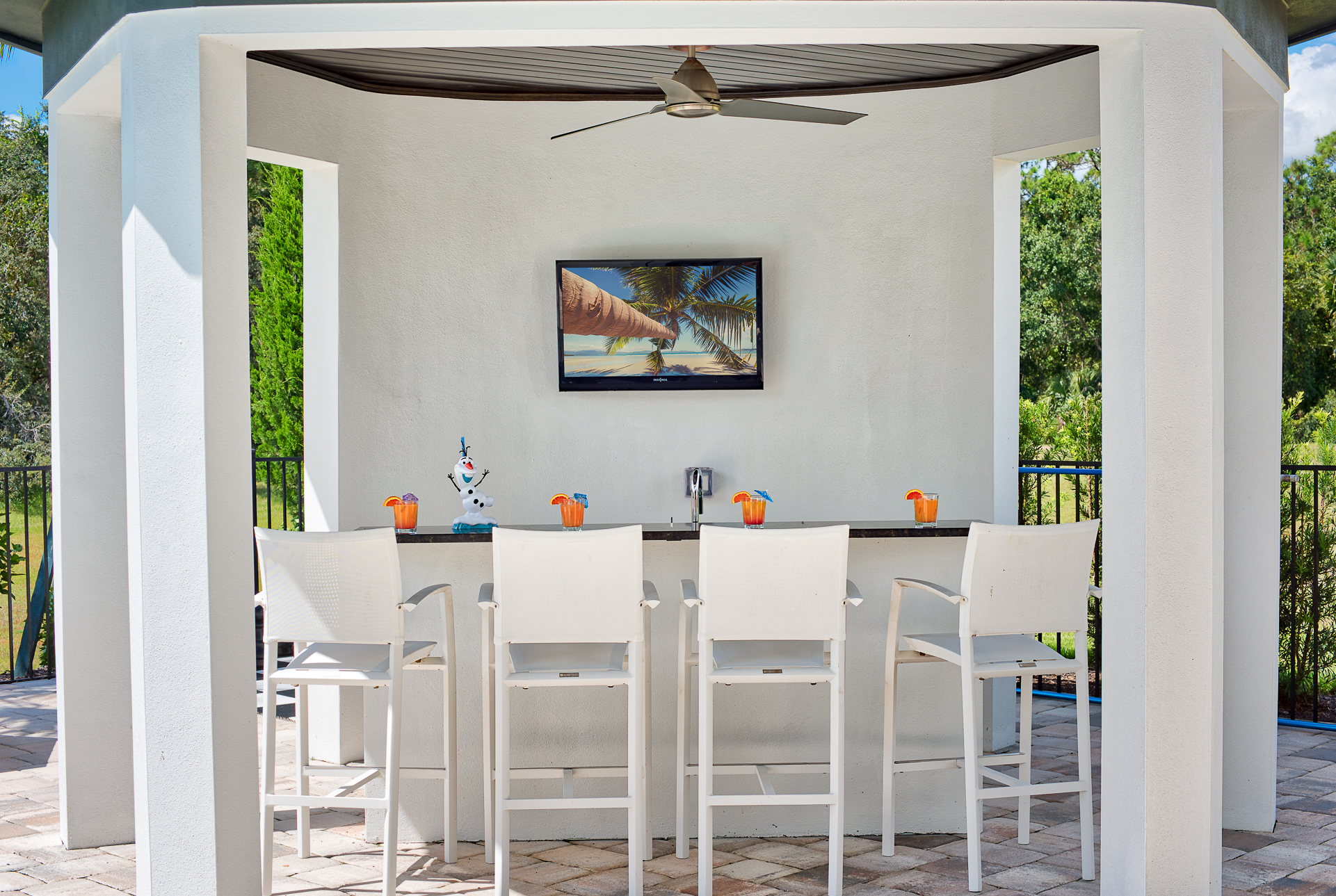 Right outside your patio doors, you can enjoy a private swimming pool and spa with sun loungers galore, a gazebo with a wet bar, and a grill for all your outdoor needs!