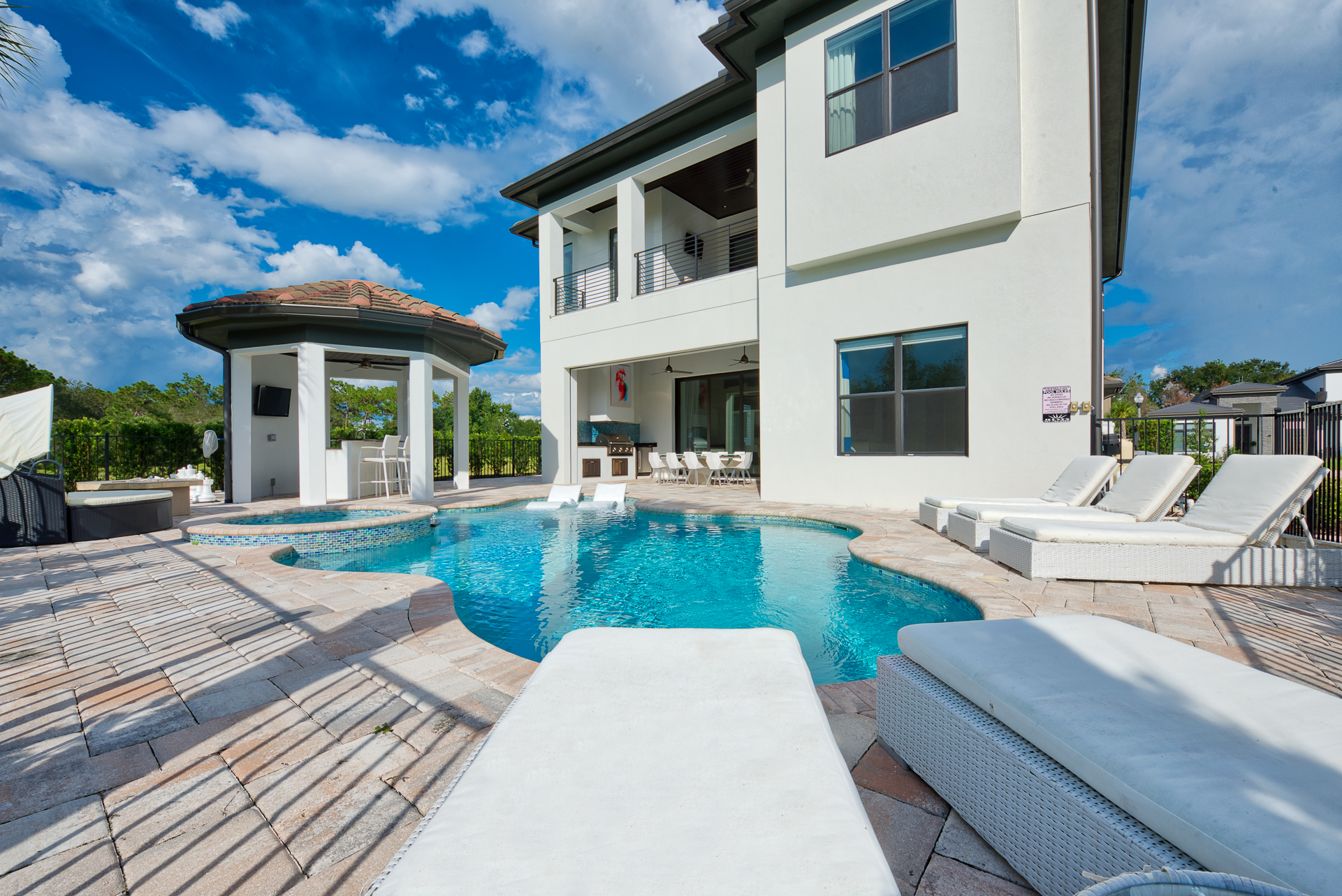 This 6 bedroom custom villa is located within the Reunion Resort, just a twelve minute journey down the road to the happiest place on Earth! Reunion Resort offers PGA golf courses right on property as well as a waterpark with a lazy river!