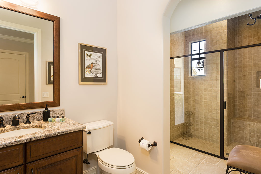 Also upstairs, two queen sized bedrooms share a Jack and Jill sized bathroom with shower and twin vanities.