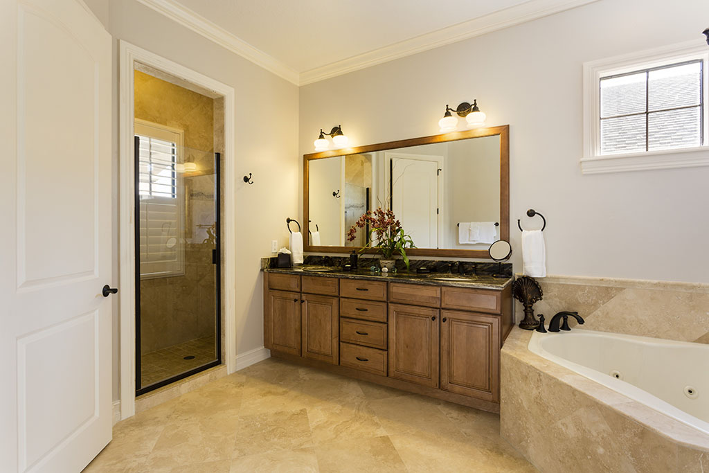 A king sized master suite is located to the rear upper floor of the home and includes a corner bath, twin vanities, a shower and access onto the golf view balcony.