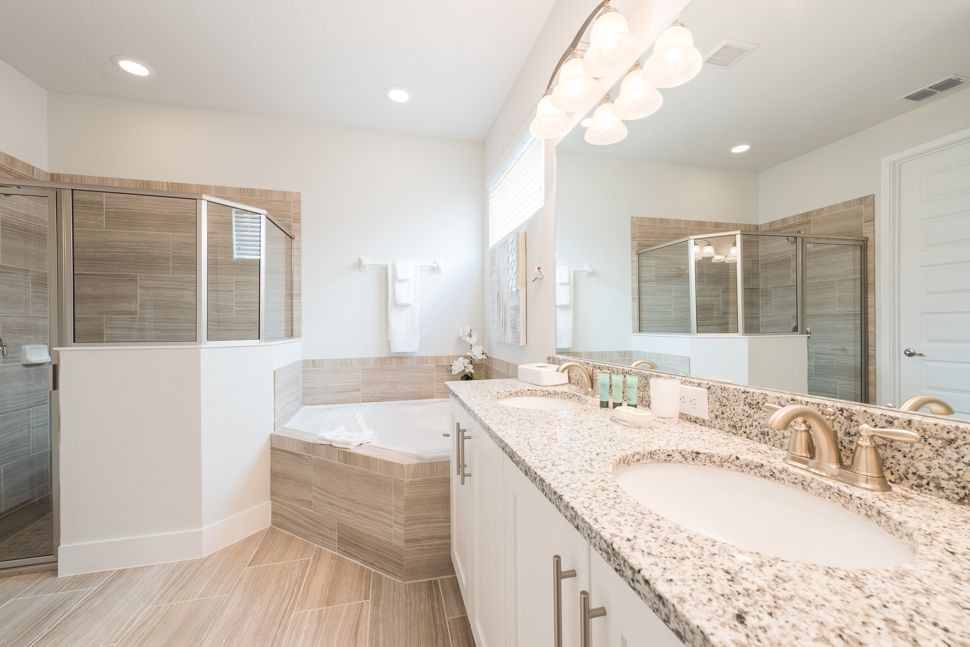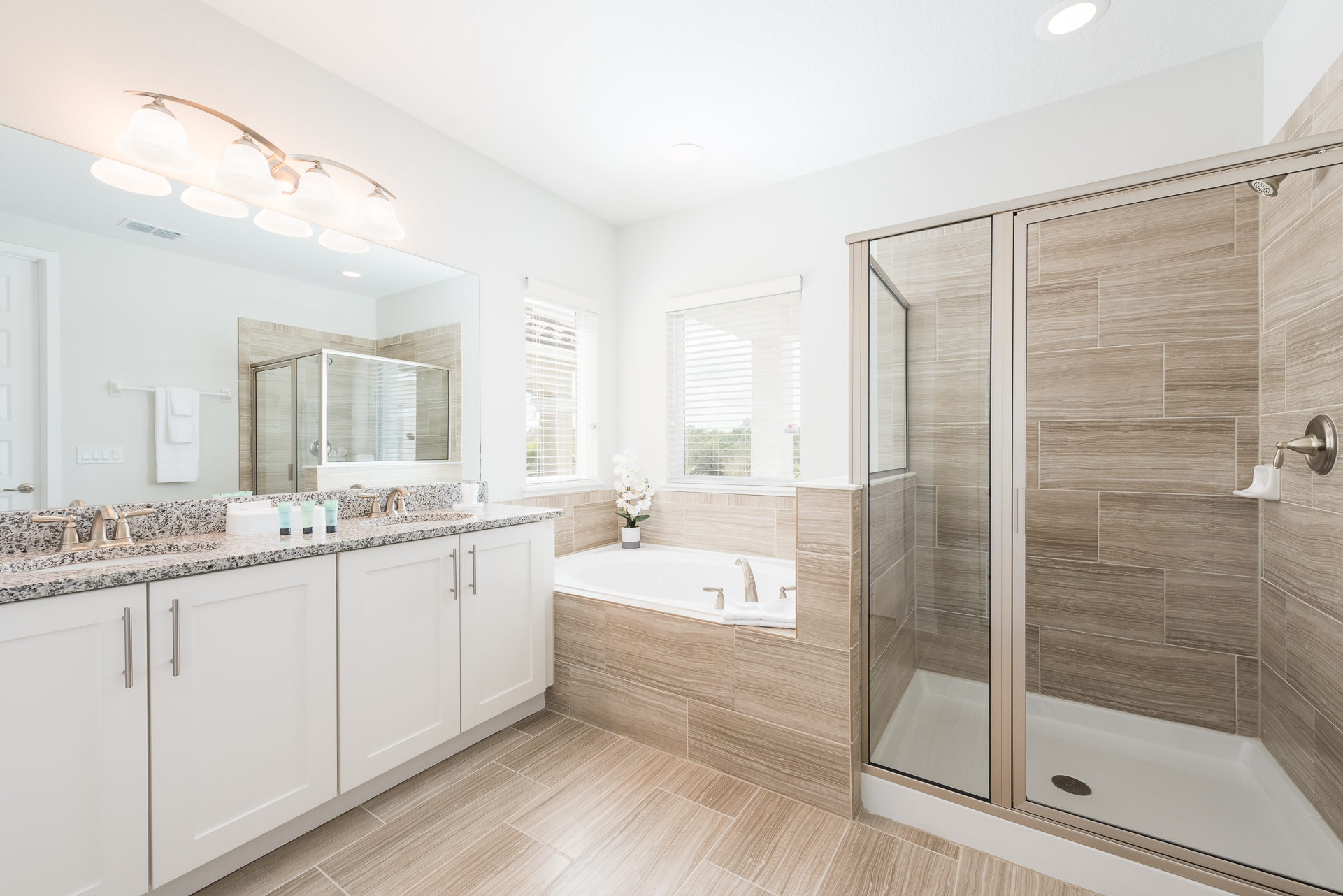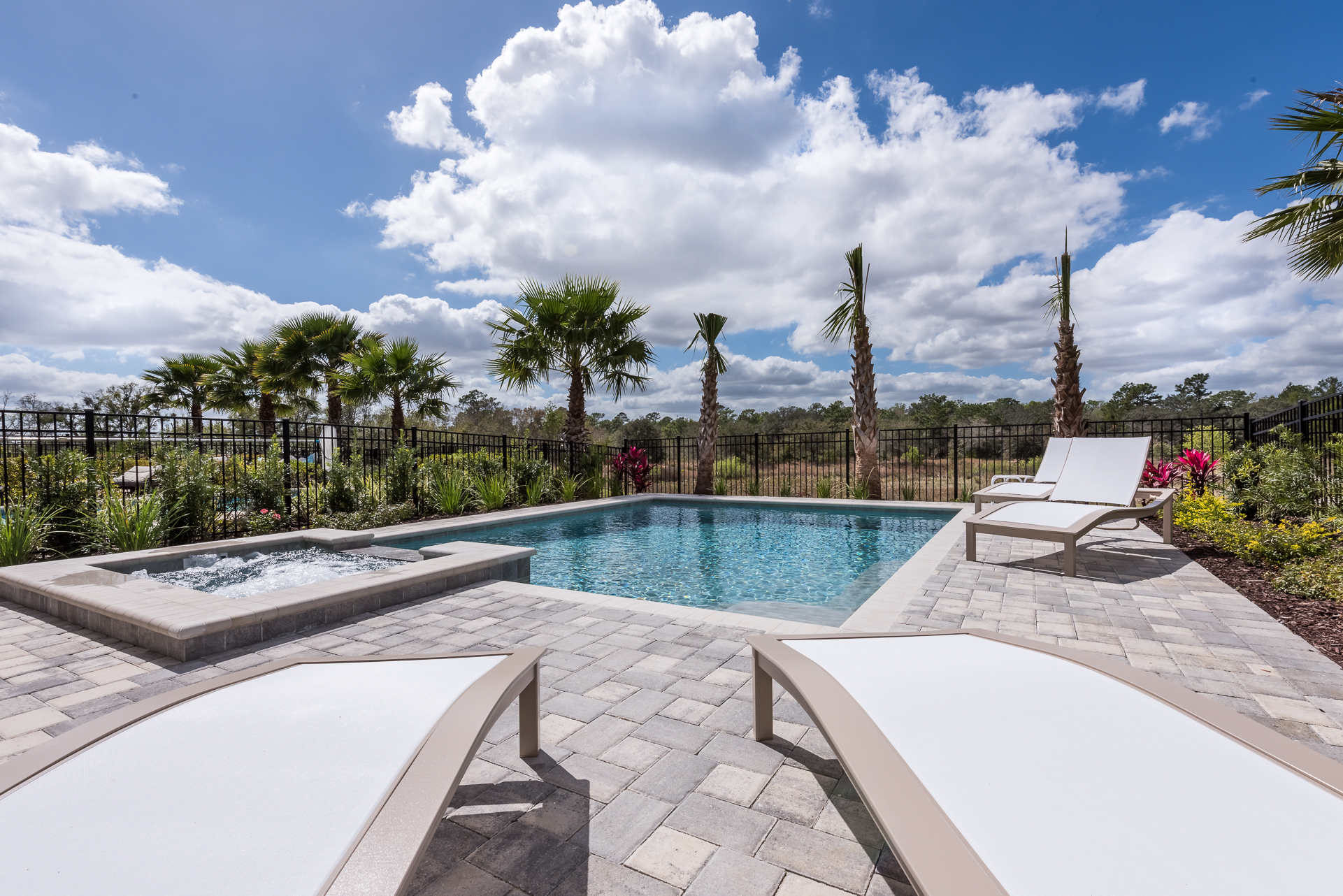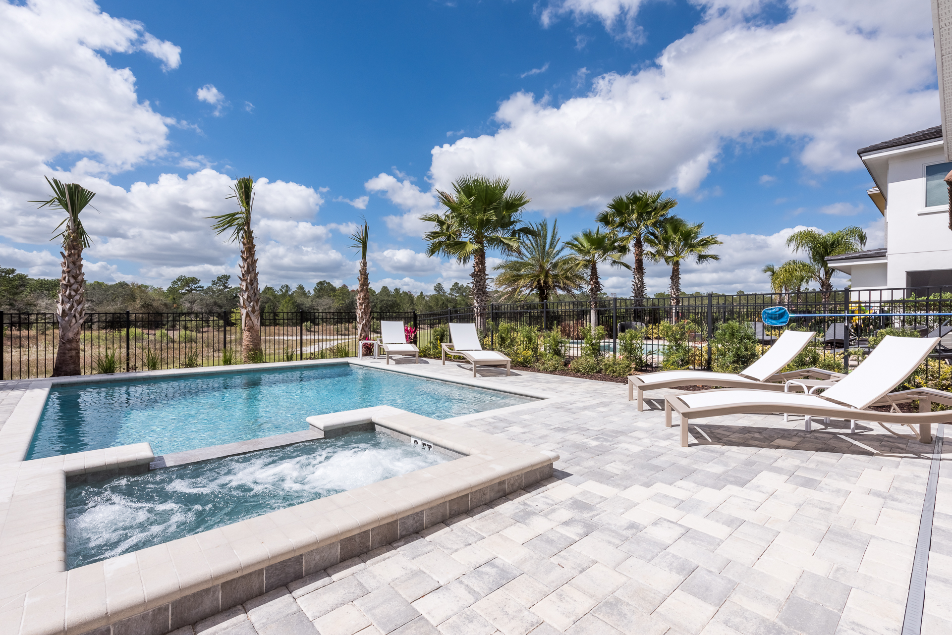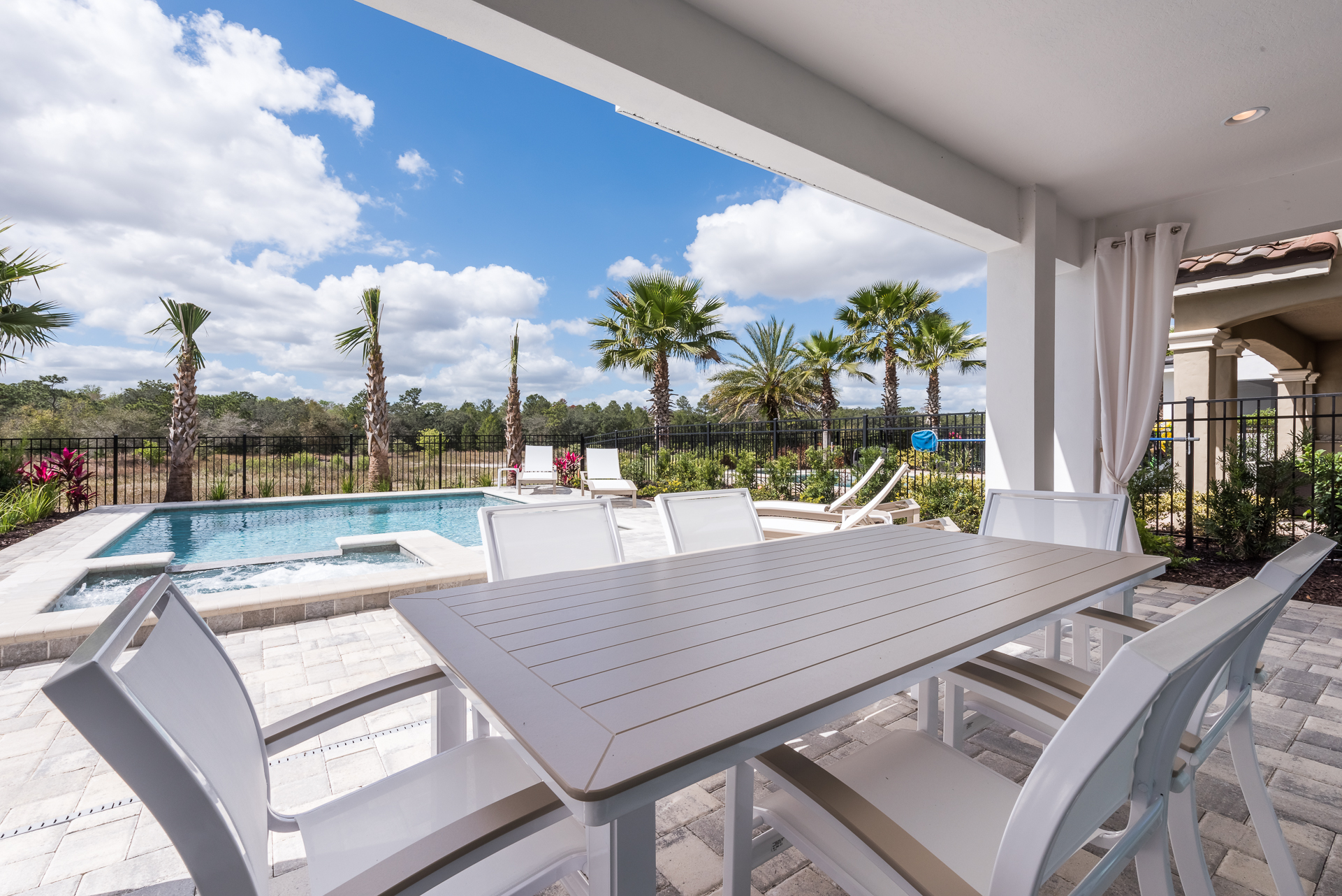 The private swimming pool and spillover spa is perfect for enjoying the warm Florida weather and having a relaxing day out on the pool deck after long days at the theme parks.