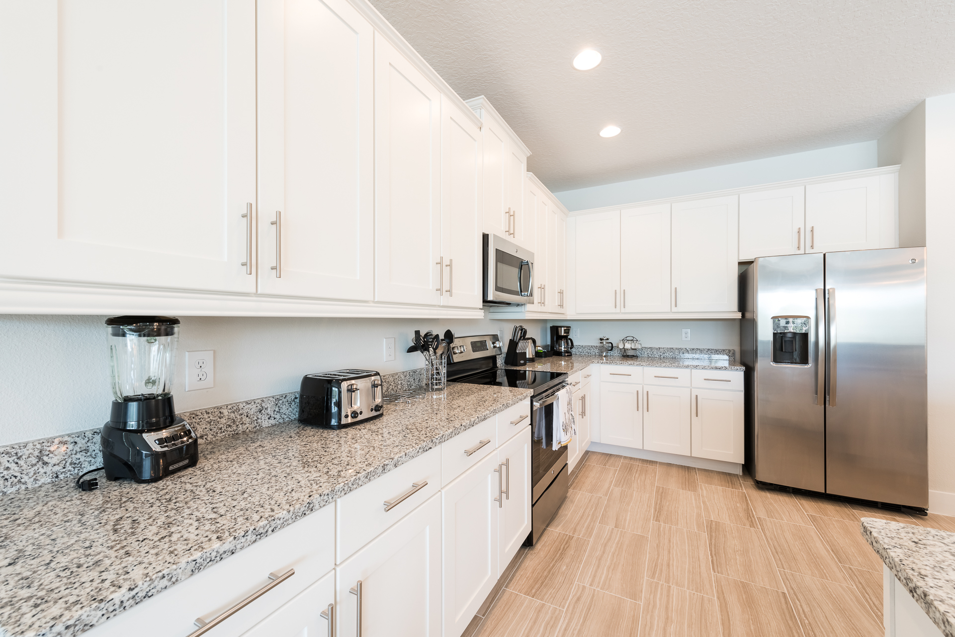 Refrigerator/freezer, oven, microwave, dishwasher, coffee maker, toaster, blender