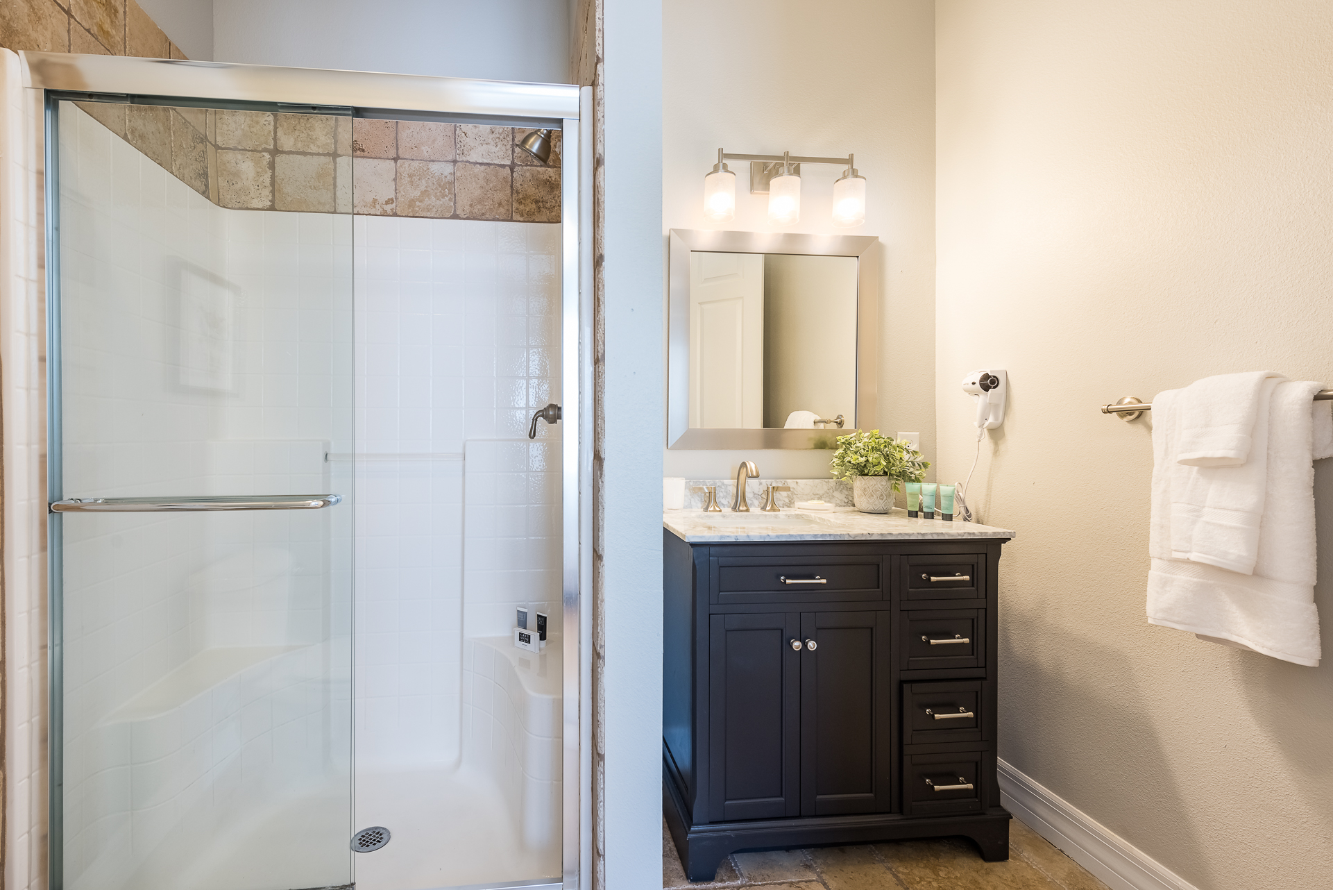 King sized Master with en suite (shower, tub, 2x separate vanities), accent chair