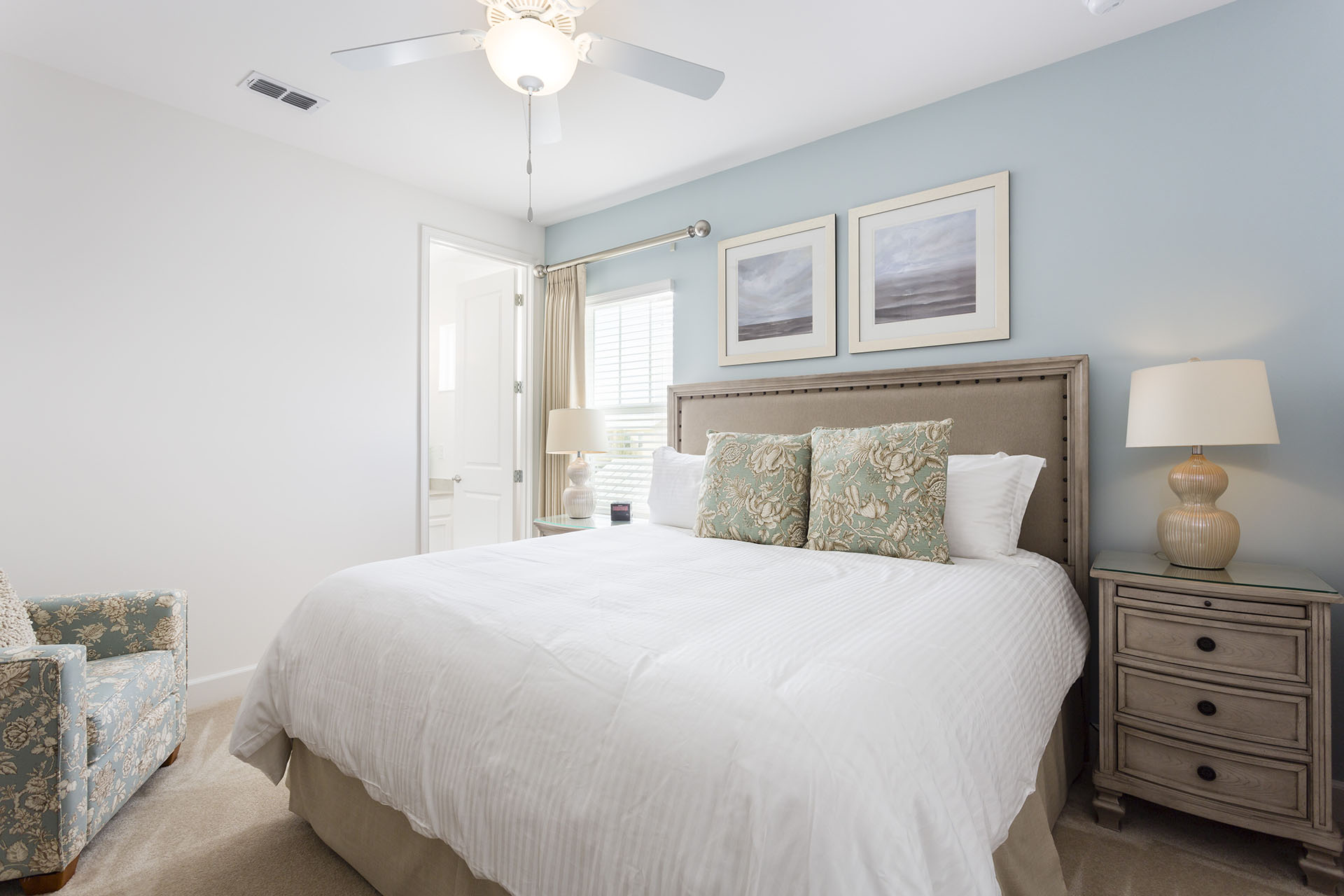 King sized Master with en suite (dual showers, twin vanities) and an accent chair