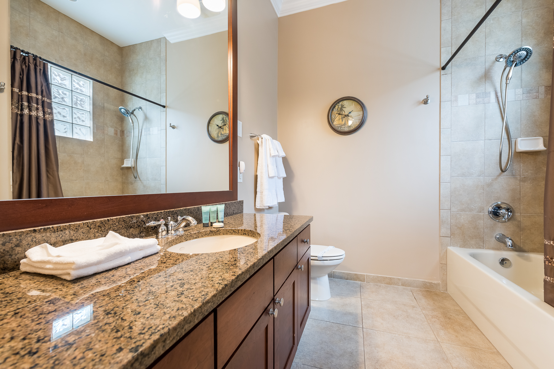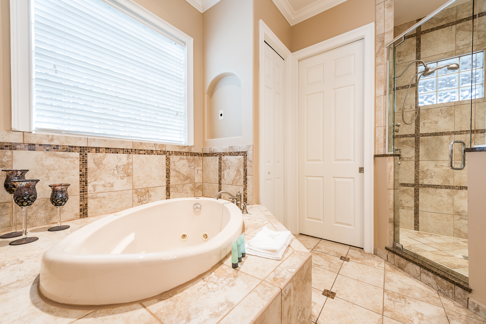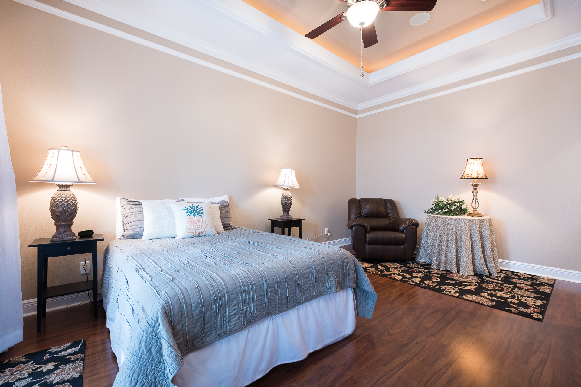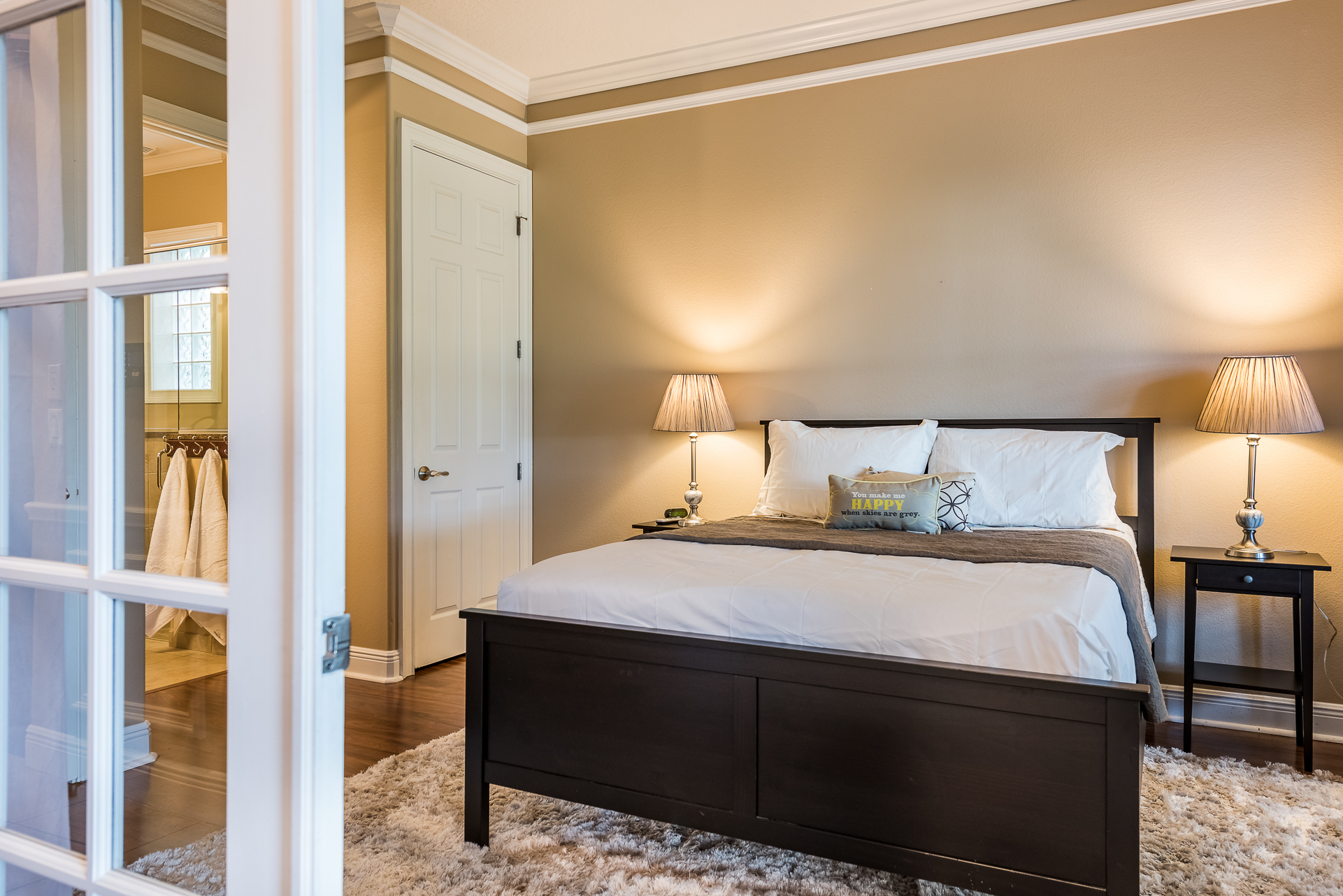 King sized Master with en suite (shower, tub, twin vanities), upper floor balcony access and a leather recliner