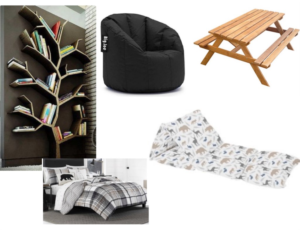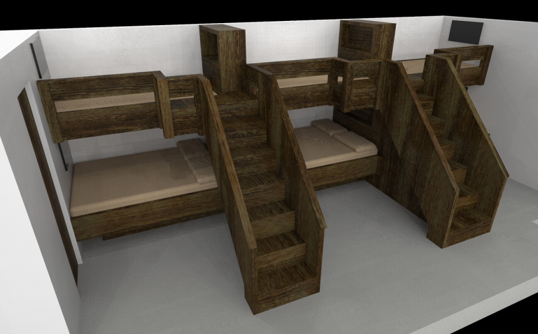 A boys and girls themed Cabin sleeping 9 children in each room with bunk beds (3x Full and 6x Twin sized beds in each room)