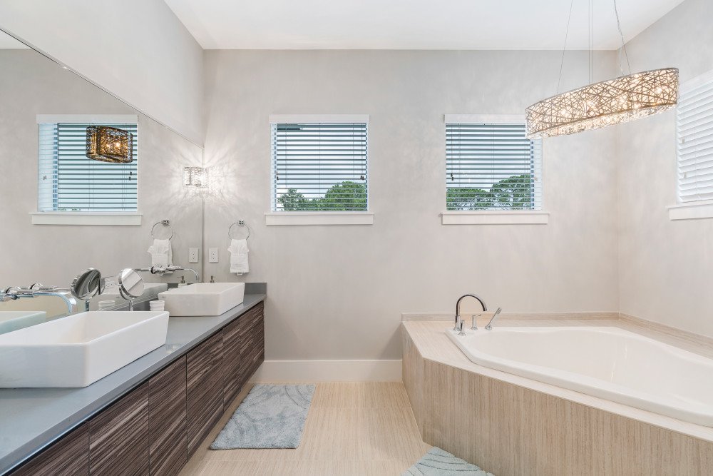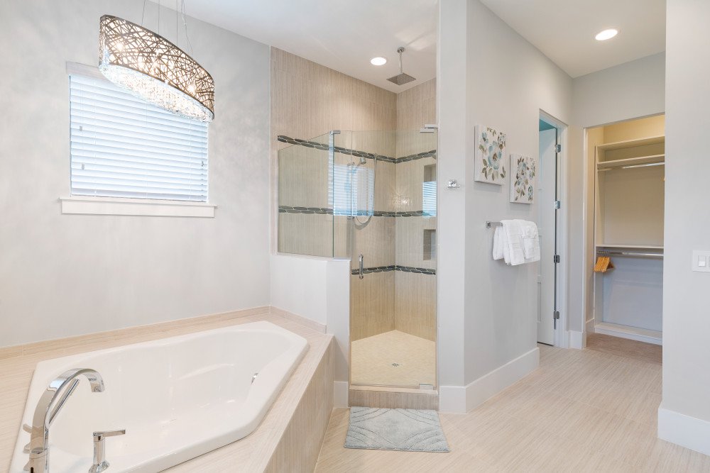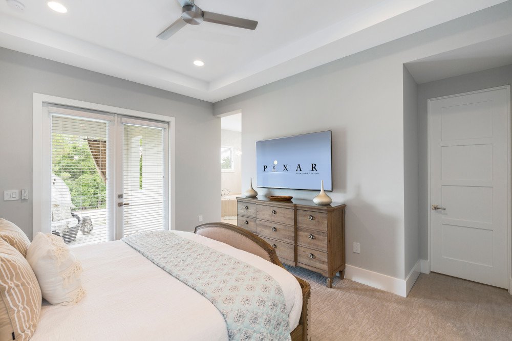 King sized Master with en suite (shower, tub, twin vanities) and balcony access over the pool deck