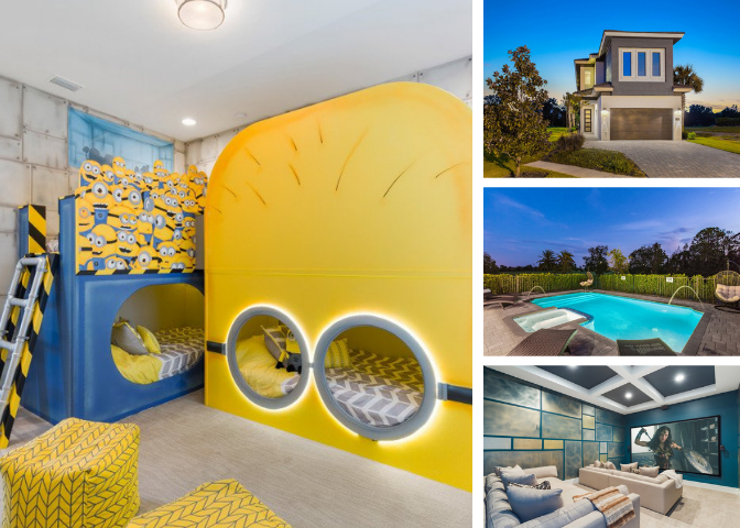 W003 offers 6 bedrooms (sleeping up to 12 guests) with a children's themed bedroom, your very own private swimming pool and spillover spa with a summer kitchen and grill, as well as a home theater and themed games room for all your entertainment needs!