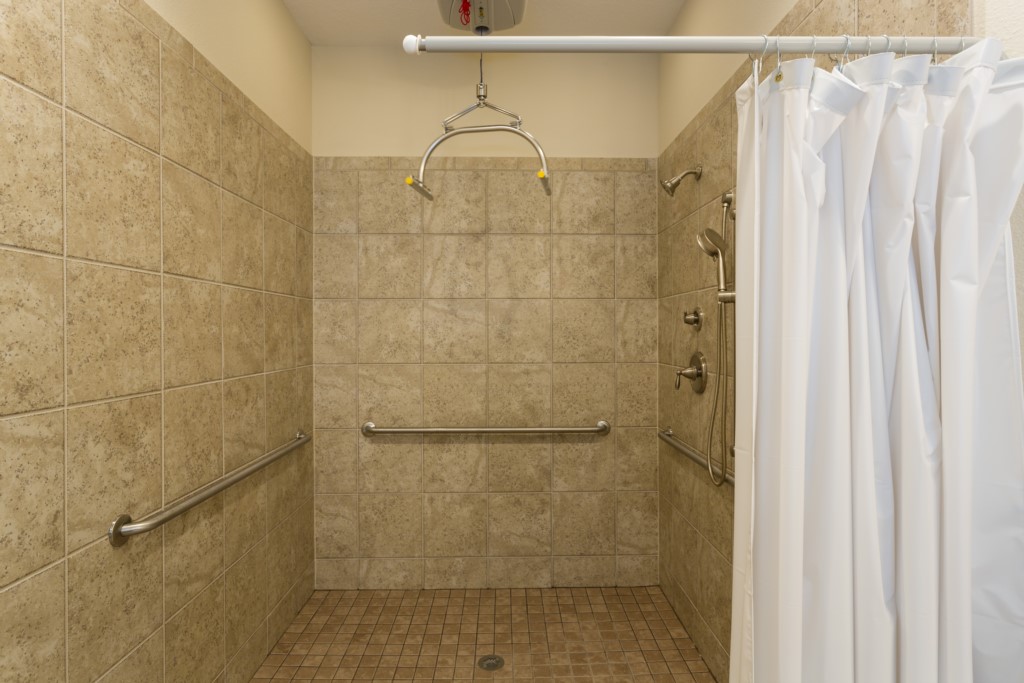 This large bedroom is designed for regular use, but also offers an opportunity for guests with disabilities to enjoy a fabulous vacation with ease.