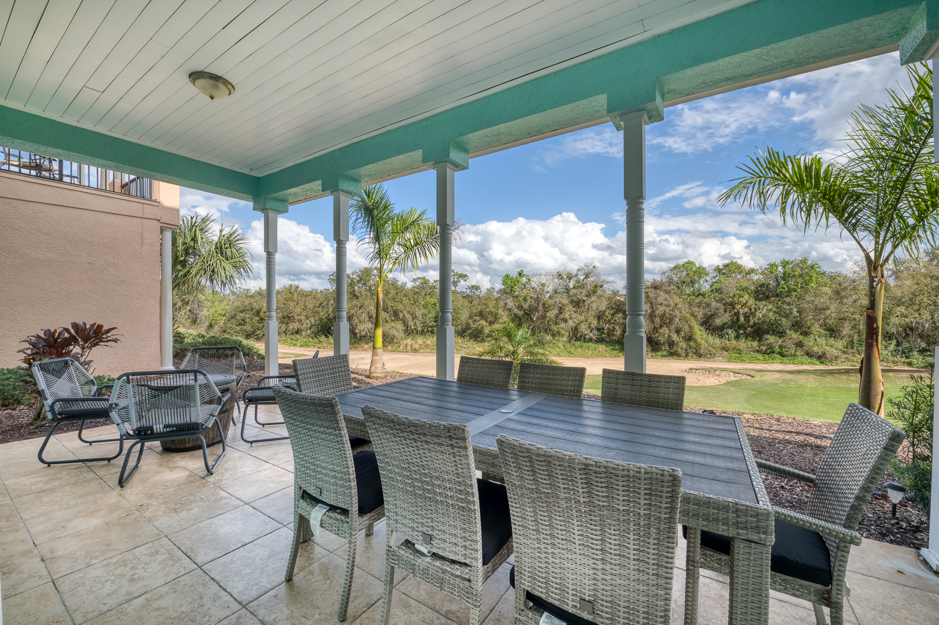 Patio has a 4 seat and 8 seat table overlooking the golf course