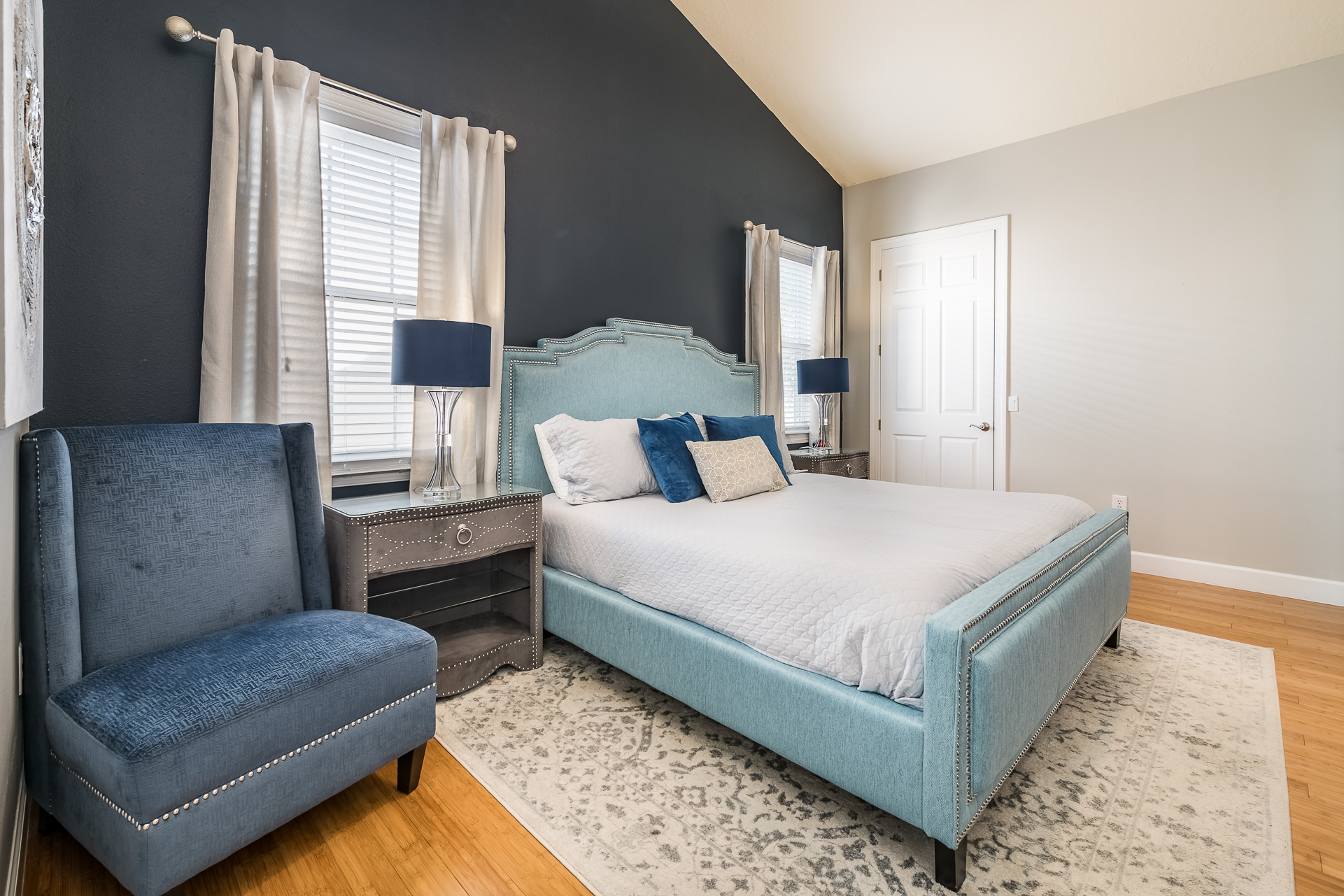 King sized Master with en suite (shower, tub, 2x separate vanities), accent chair