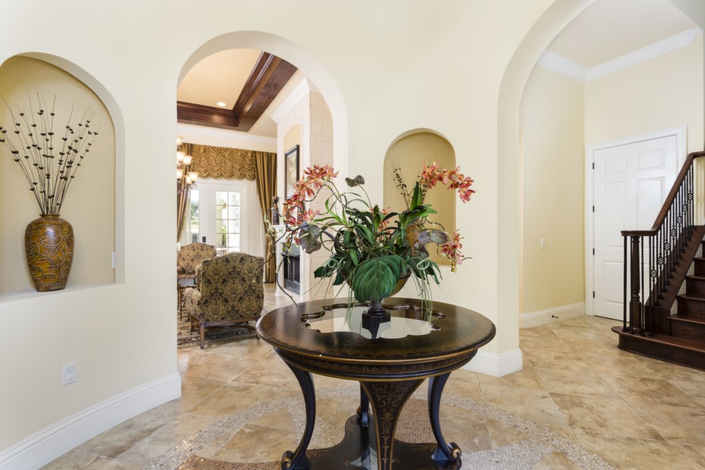 Additional seating area with a feature fireplace, comfortable sofa, 2x accent chairs