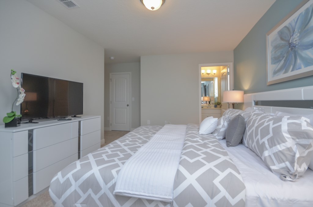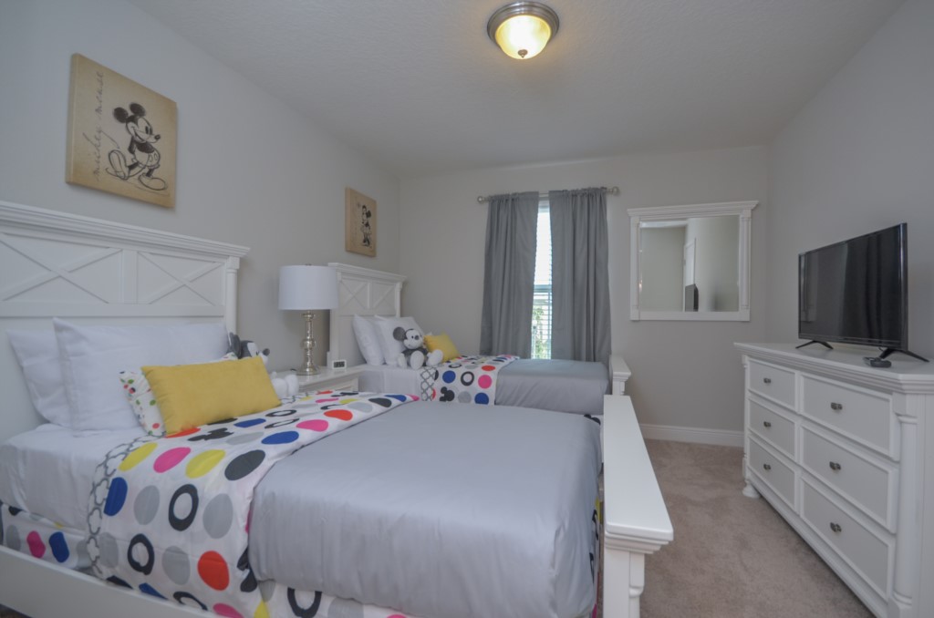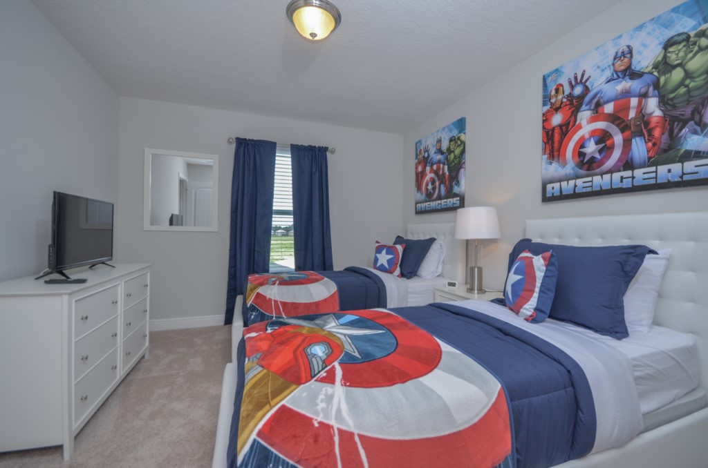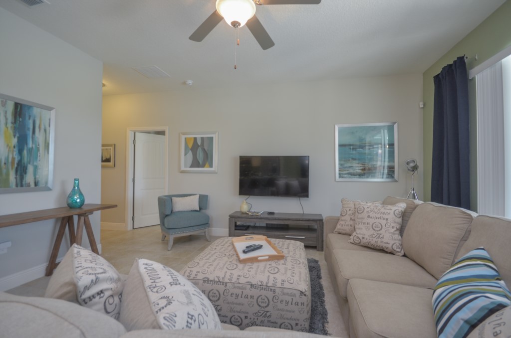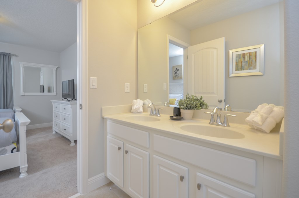 Our luxury villa offers a full living area downstairs and a separate loft area upstairs both with large flat panel tvs to enjoy a movie night and gaming on a relaxing day in from the parks. No detail has been spared as the owners have ensured that your every need is addressed from a fully stocked kitchen to the choice of refreshing paint colors. You can have a Disney area villa rental for less and get a lot less. But here in our villa rental you will have upgraded, plush mattresses for a perfect nights sleep with quality bed linens and so much more. This Solterra Resort villa rental is luxury, fun for the family, and relaxing for the adults!