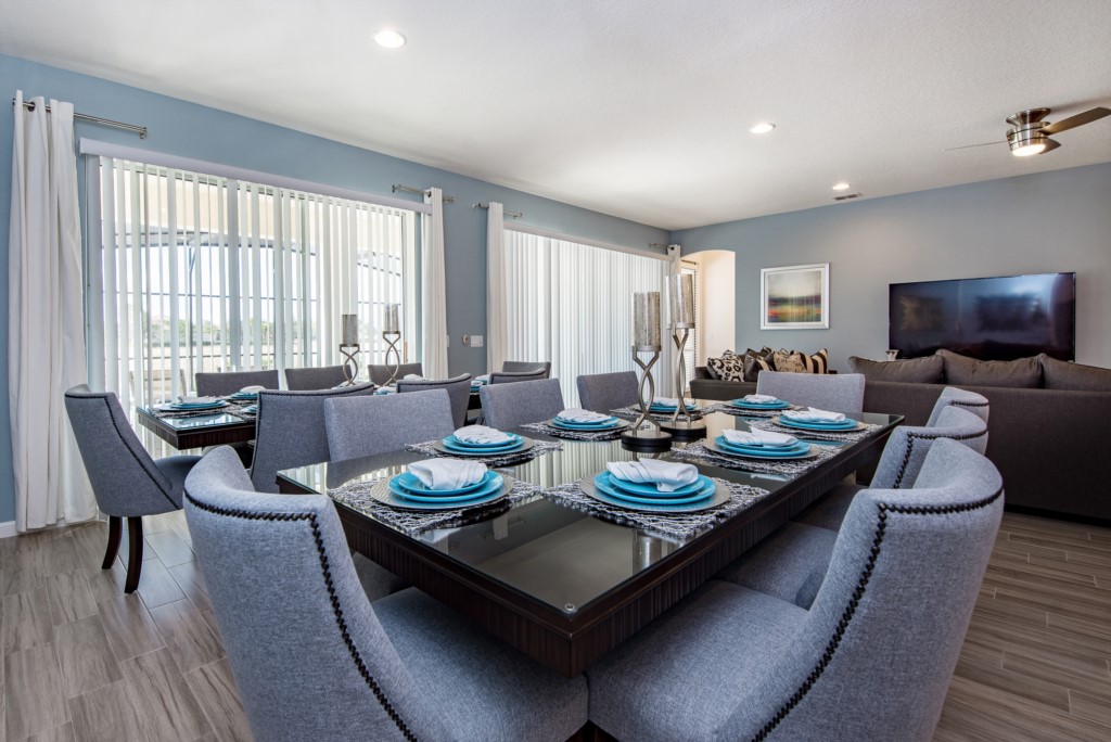 Just a few paces away, a large 16 seat dining table makes a perfect spot for family dinners, as you chat about the day's adventures in the theme parks!