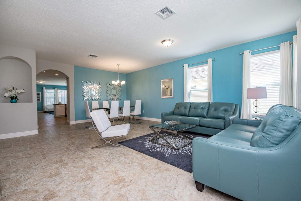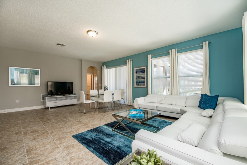 This gorgeous brand new 6 bedroom, 6 bath vacation home rental in the beautiful Solterra Resort, Davenport, Florida! There is enough space for the entire family in this open, spacious, 2 story Disney area vacation villa paradise. The location could not be any better. Only a few short minutes from Walt Disney World and Orlando's other famous attractions like Universal Studios, Seaworld, and Legoland, our Solterra Resort villa rental sits nestled off Interstate 4 and Hwy 27. Easy access to shops, restaurants, and world class golf. Solterra Resort is a secure gated community only moments from the magic but far enough to experience peace from the busy tourist district. Solterra Resort is 15 minutes to Disney with access to the Interstate only 3-5 minutes from the entrance.