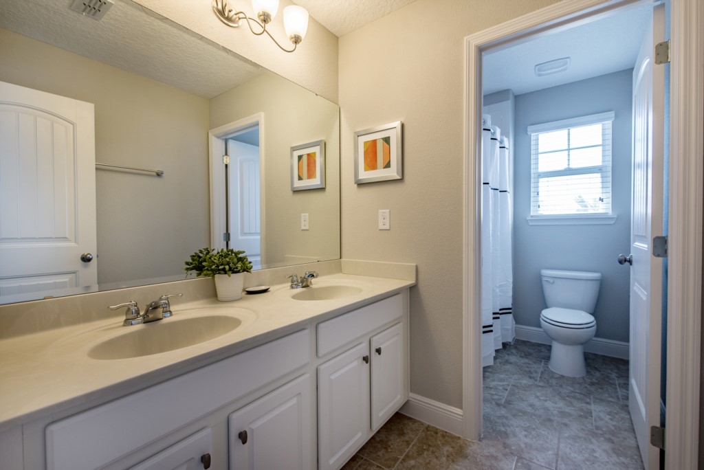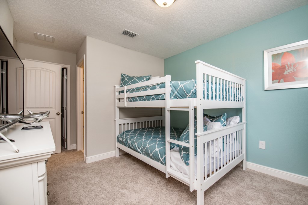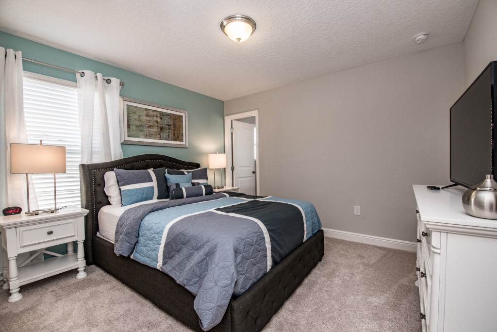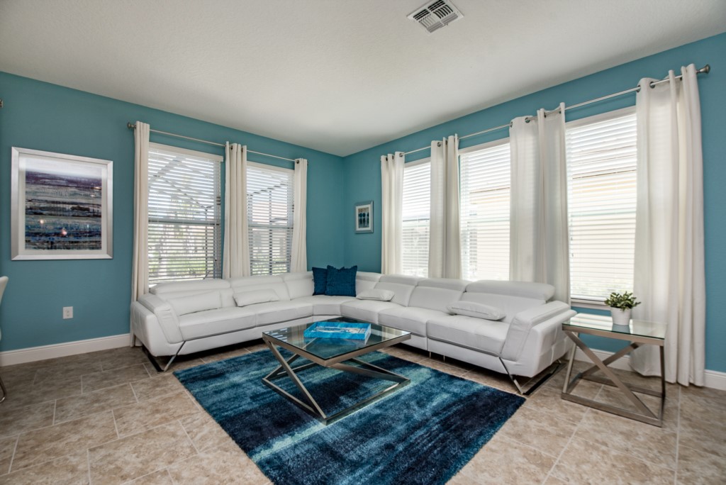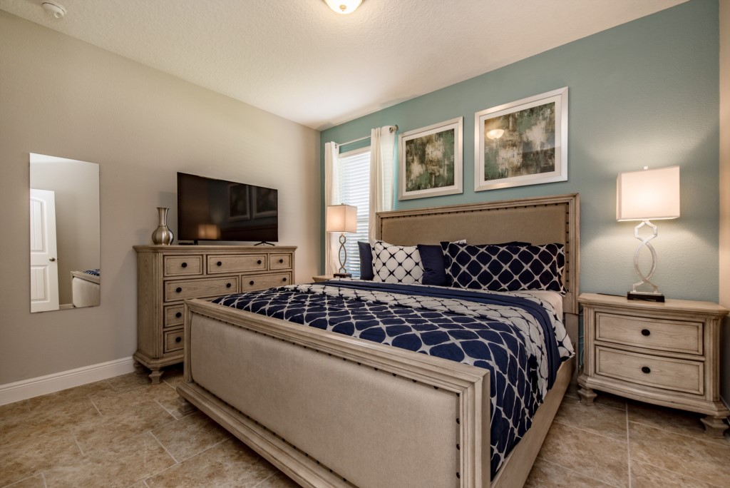 Our luxury villa offers a full living area downstairs and a separate loft area upstairs both with large flat panel tvs to enjoy a movie night and gaming on a relaxing day in from the parks. No detail has been spared as the owners have ensured that your every need is addressed from a fully stocked kitchen to the choice of refreshing paint colors. You can have a Disney area villa rental for less and get a lot less. But here in our villa rental you will have upgraded, plush mattresses for a perfect nights sleep with quality bed linens and so much more. This Solterra Resort villa rental is luxury, fun for the family, and relaxing for the adults!