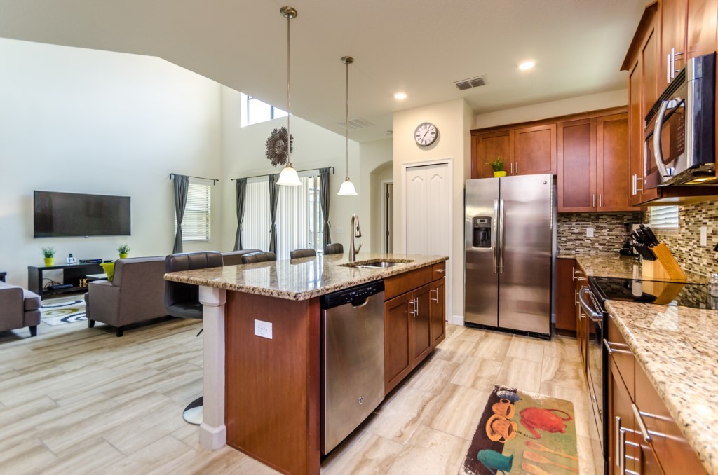 Fully Equipped Kitchen with Granite Countertops and Stainless Steel Appliances