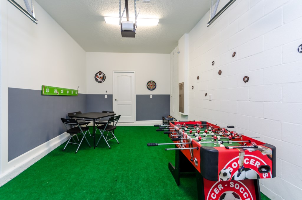 Gameroom With Foosball, Dart Board and Multi-Game Table and Chairs