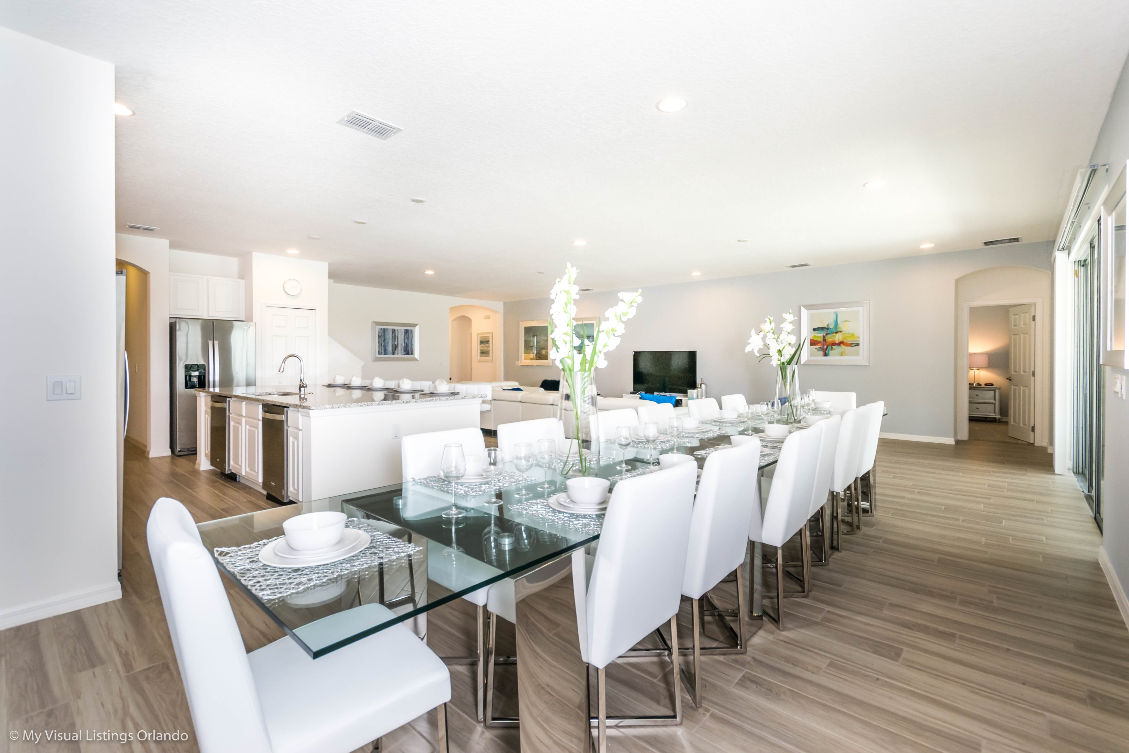 Just a few paces away, a dining table makes a perfect spot for family dinners, as you chat about the day's adventures in the theme parks!