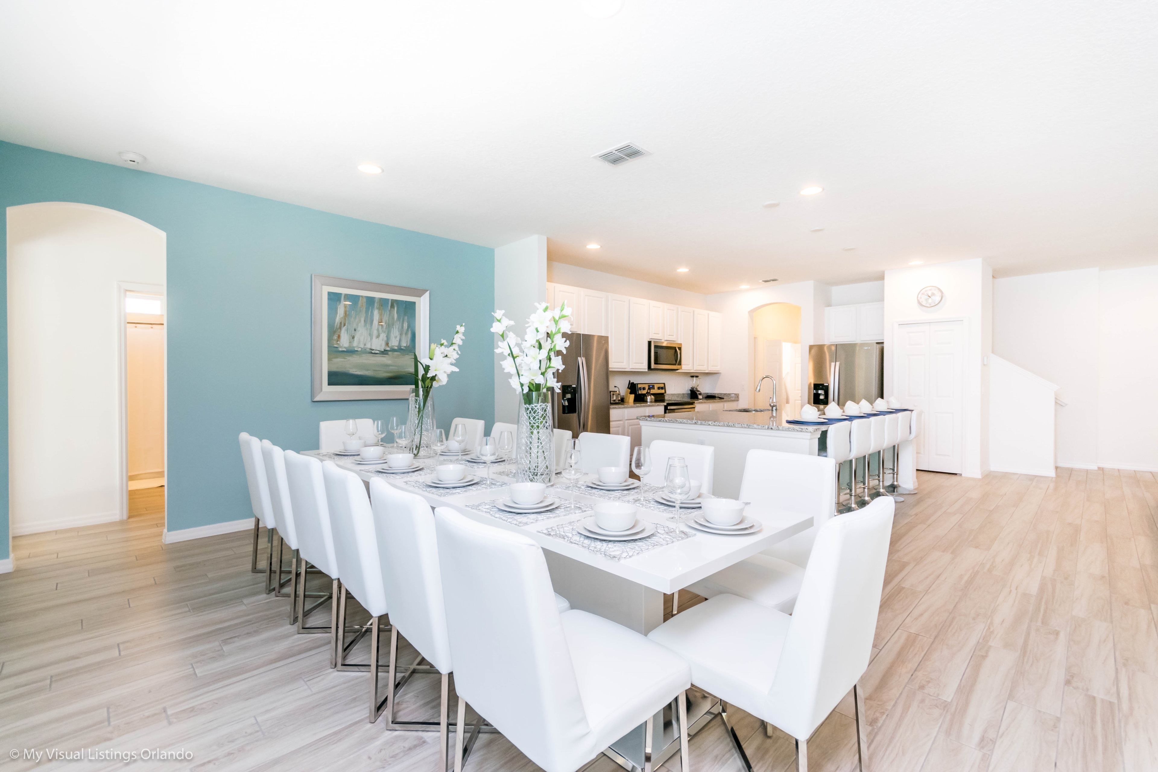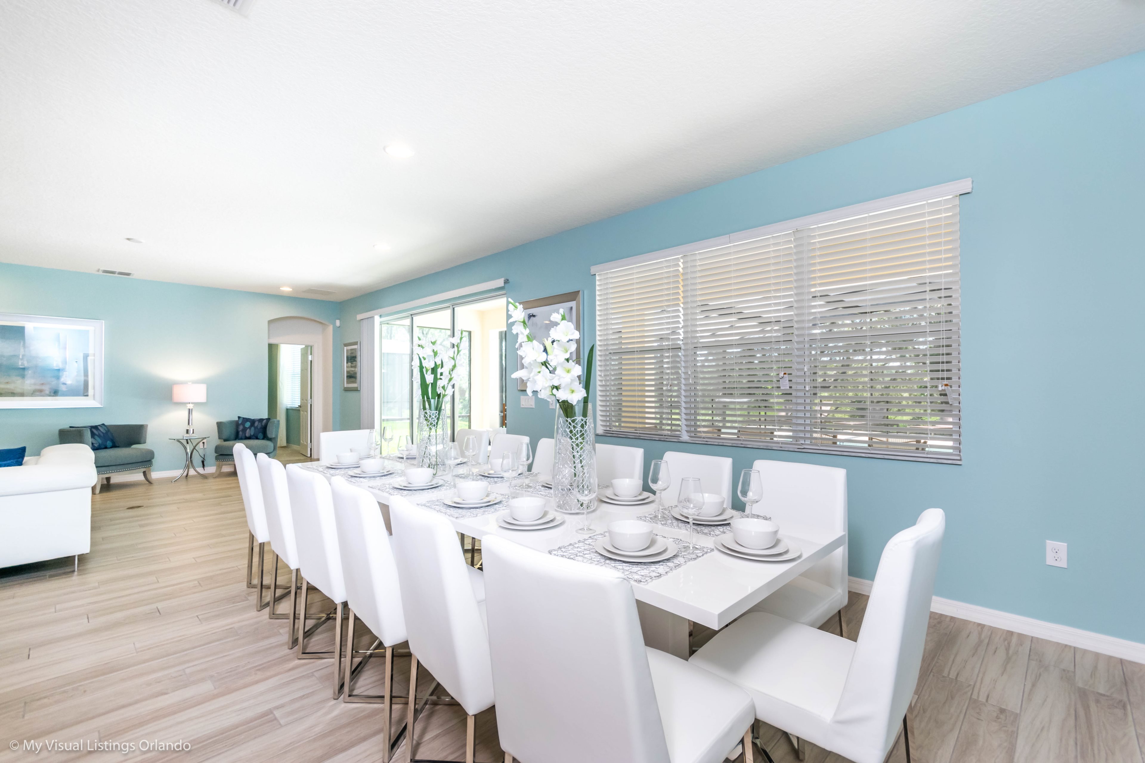 Just a few paces away, a dining table makes a perfect spot for family dinners, as you chat about the day's adventures in the theme parks!