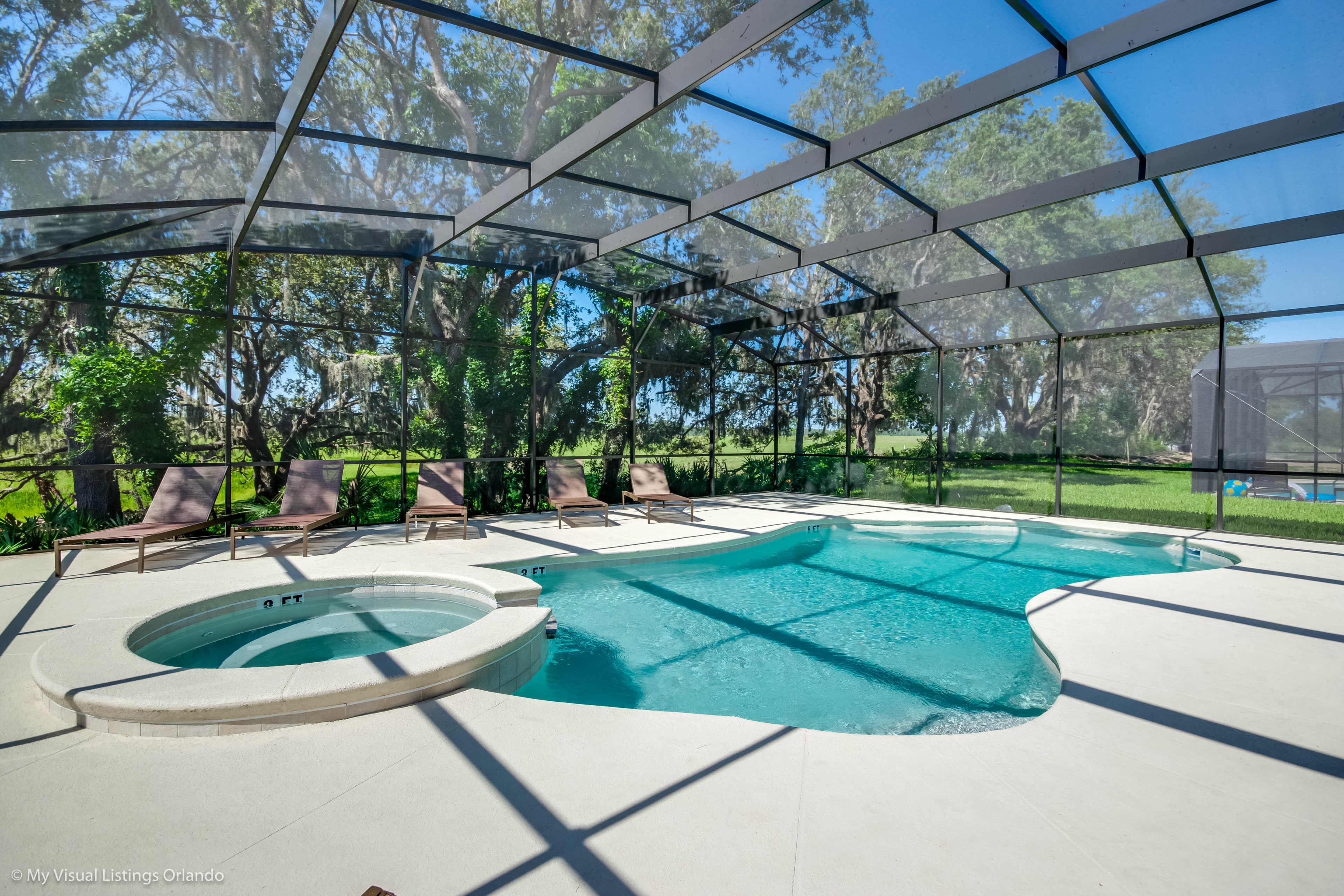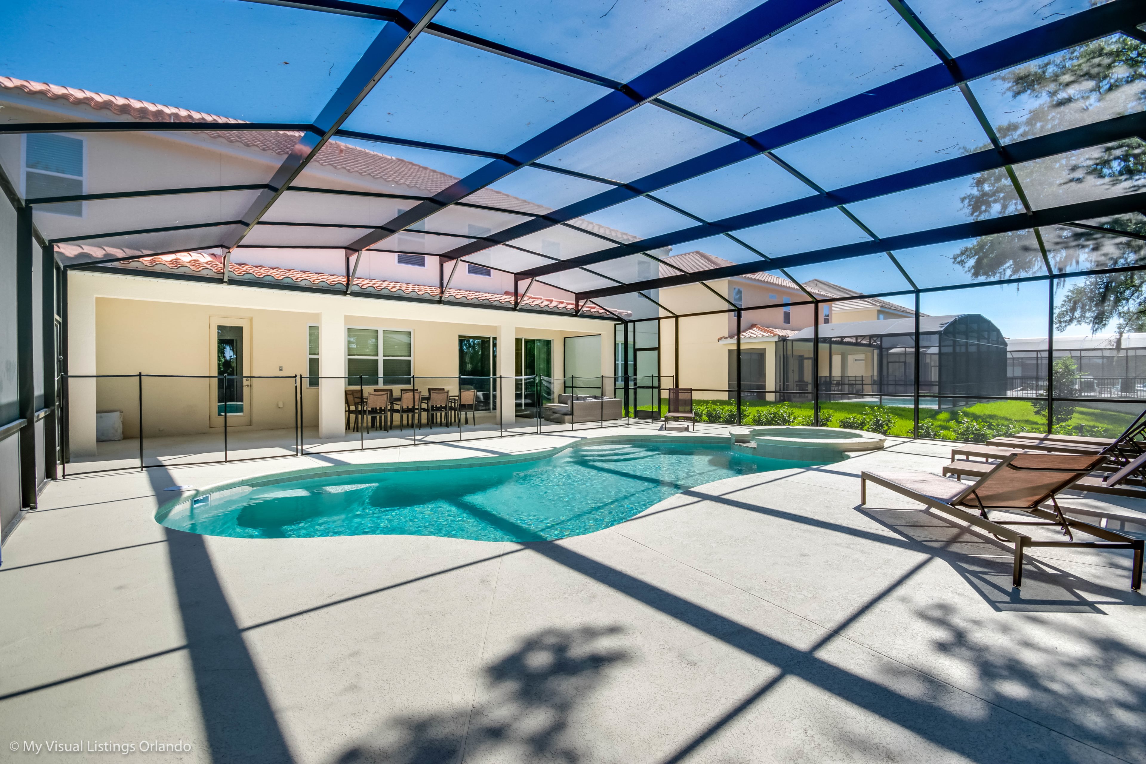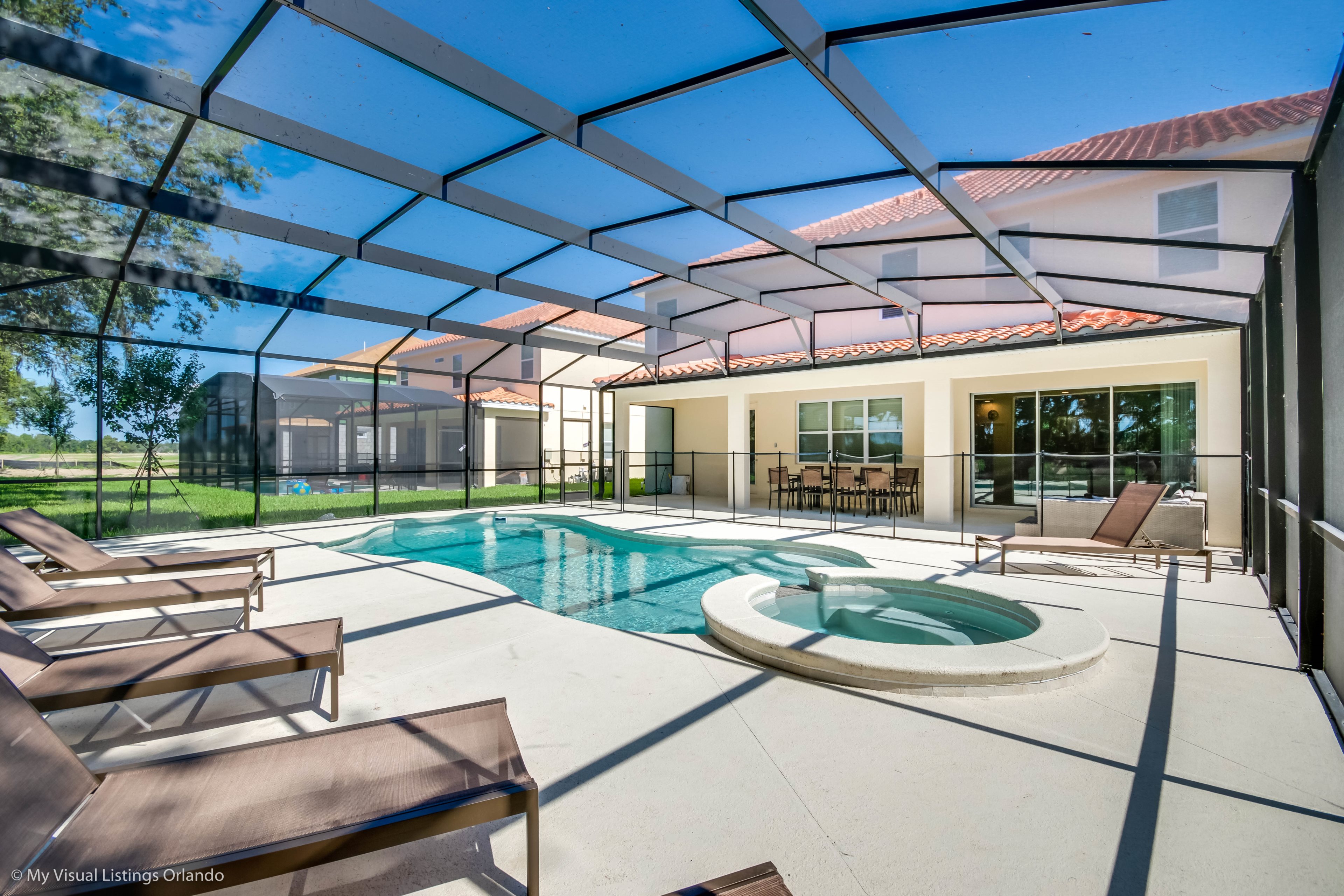 With sun loungers, and a overzided covered lanai, you have plenty of opportunity to enjoy Orlando's beautiful weather, day or night you can relax in the overzised spa!