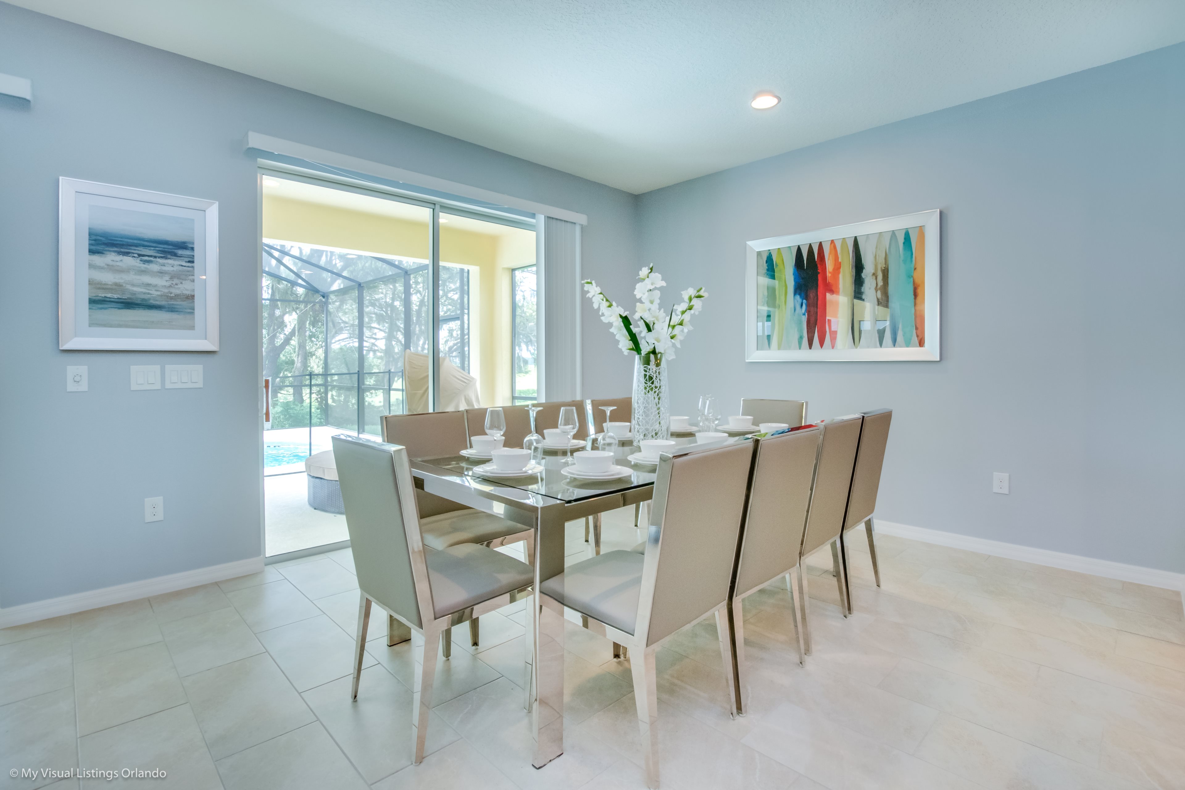 Just a few paces away, a large 16 seat dining table makes a perfect spot for family dinners, as you chat about the day's adventures in the theme parks!