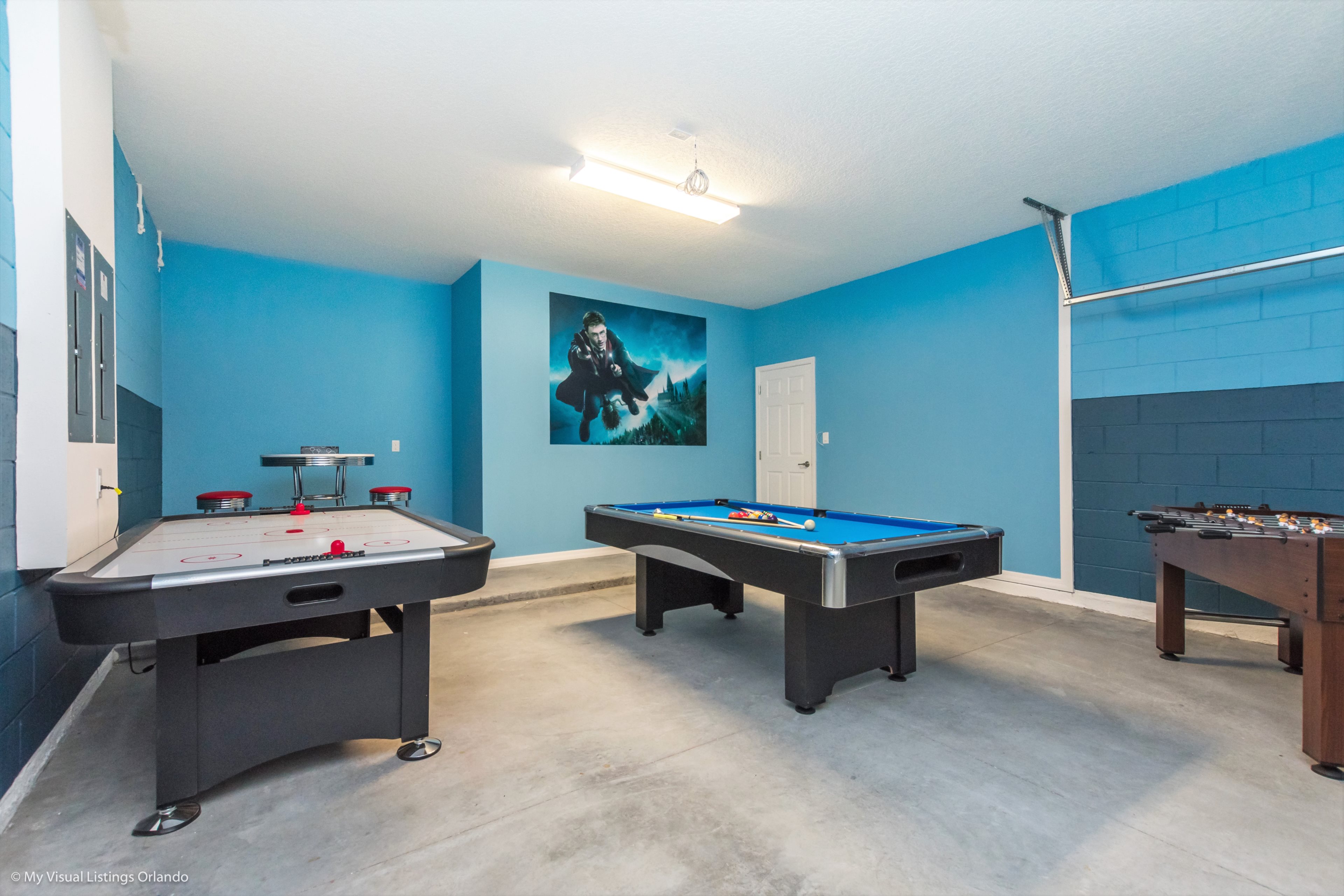 Upstairs, the loft area provides a second social gathering area, with comfortable seating, games area and flat screen TV.