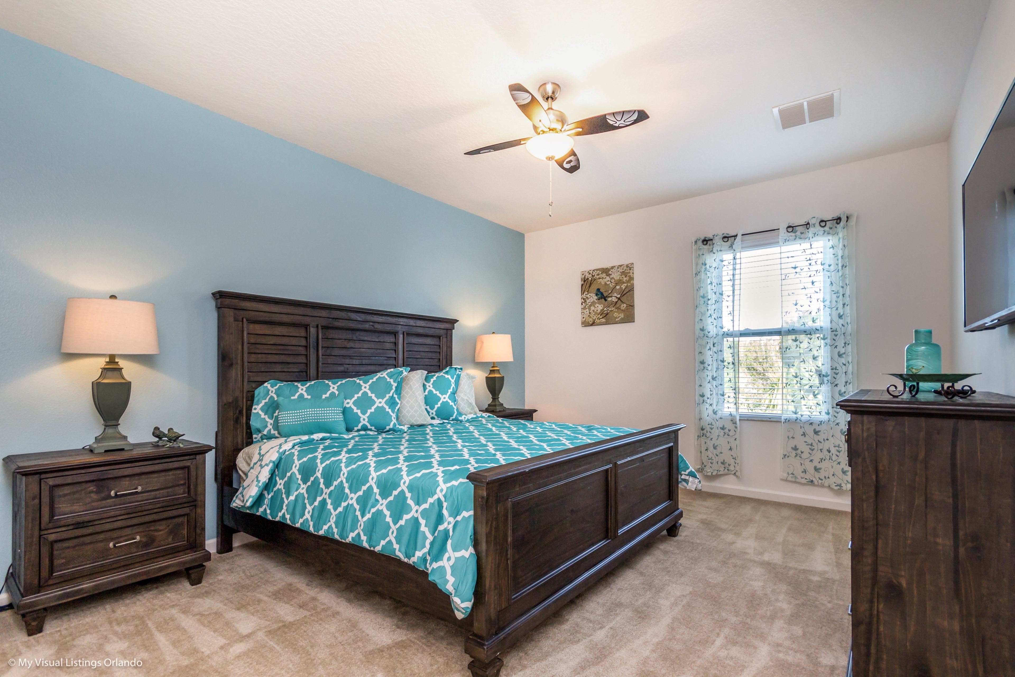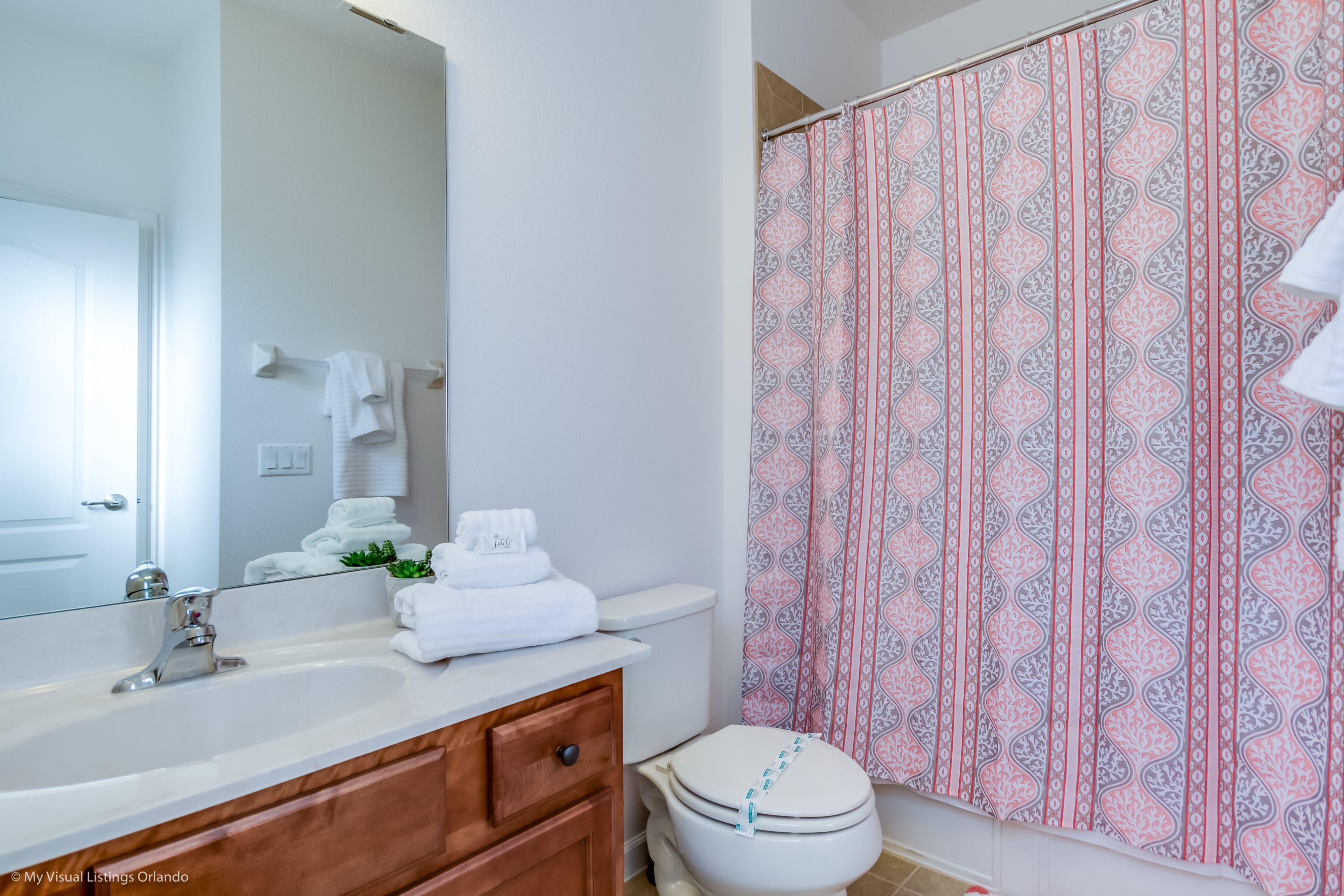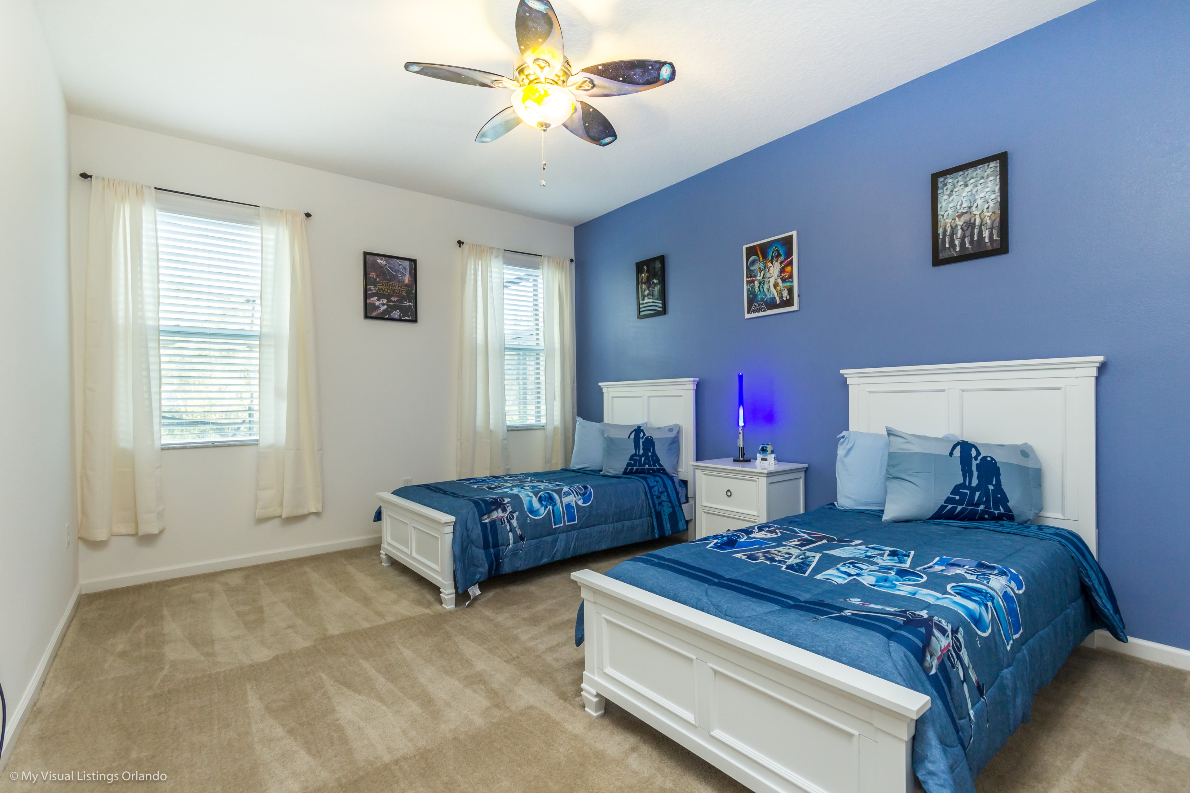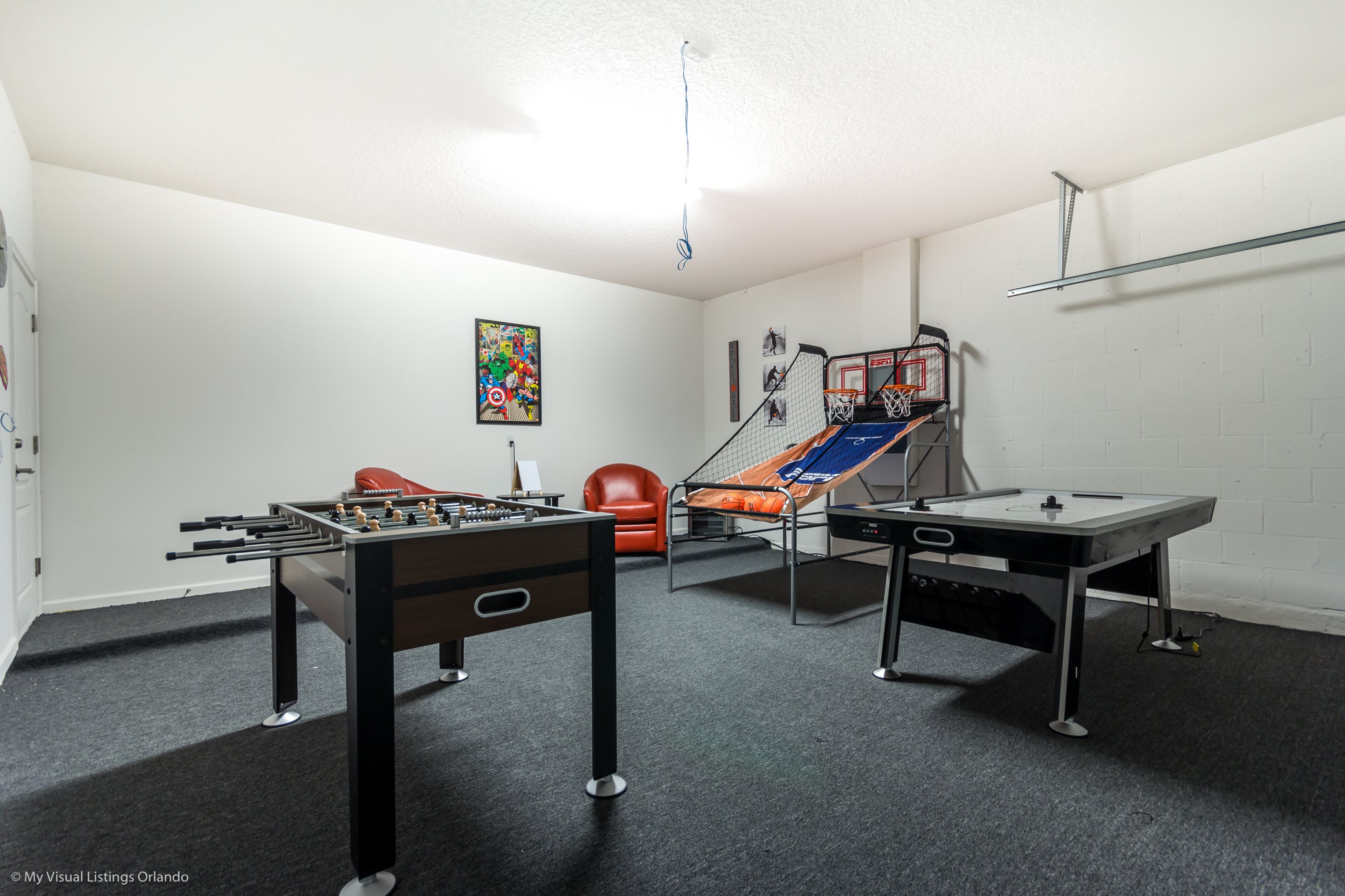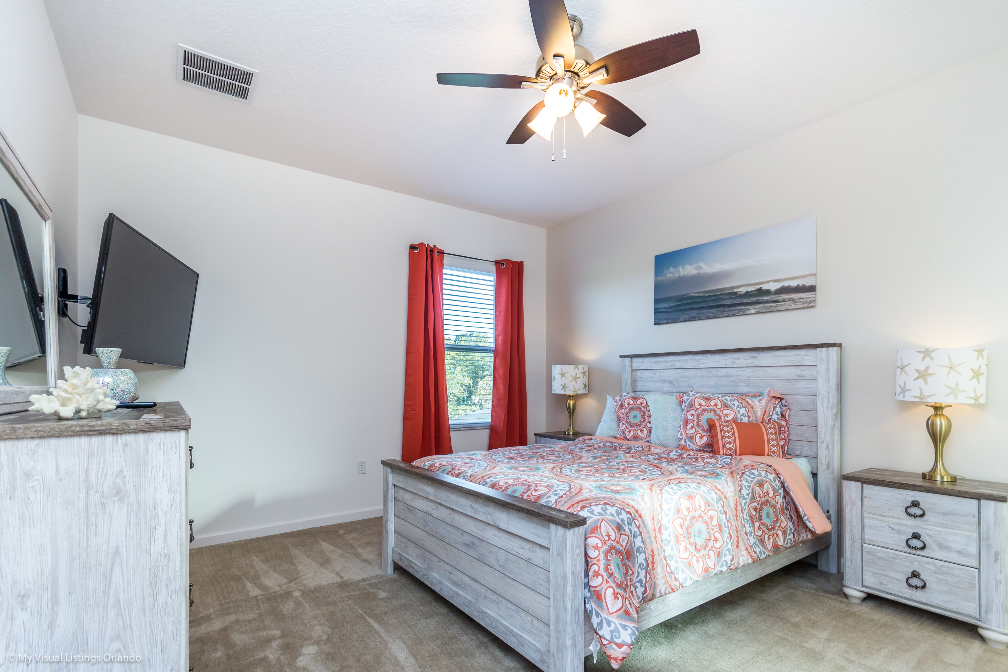 Our luxury villa offers a full living area downstairs and a separate loft area upstairs both with large flat panel tvs to enjoy a movie night and gaming on a relaxing day in from the parks. No detail has been spared as the owners have ensured that your every need is addressed from a fully stocked kitchen to the choice of refreshing paint colors. You can have a Disney area villa rental for less and get a lot less. But here in our villa rental you will have upgraded, plush mattresses for a perfect nights sleep with quality bed linens and so much more. This Solterra Resort villa rental is luxury, fun for the family, and relaxing for the adults!