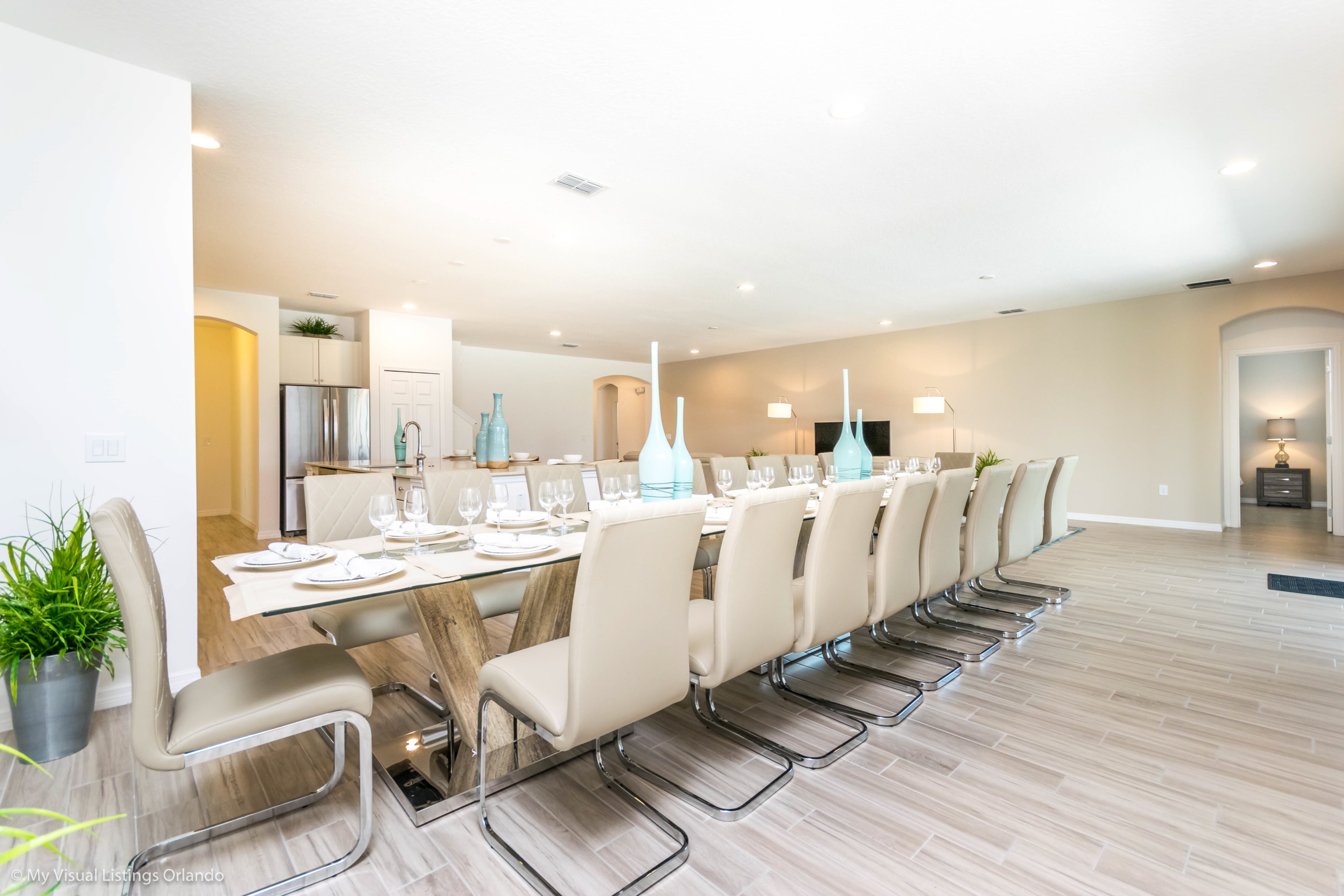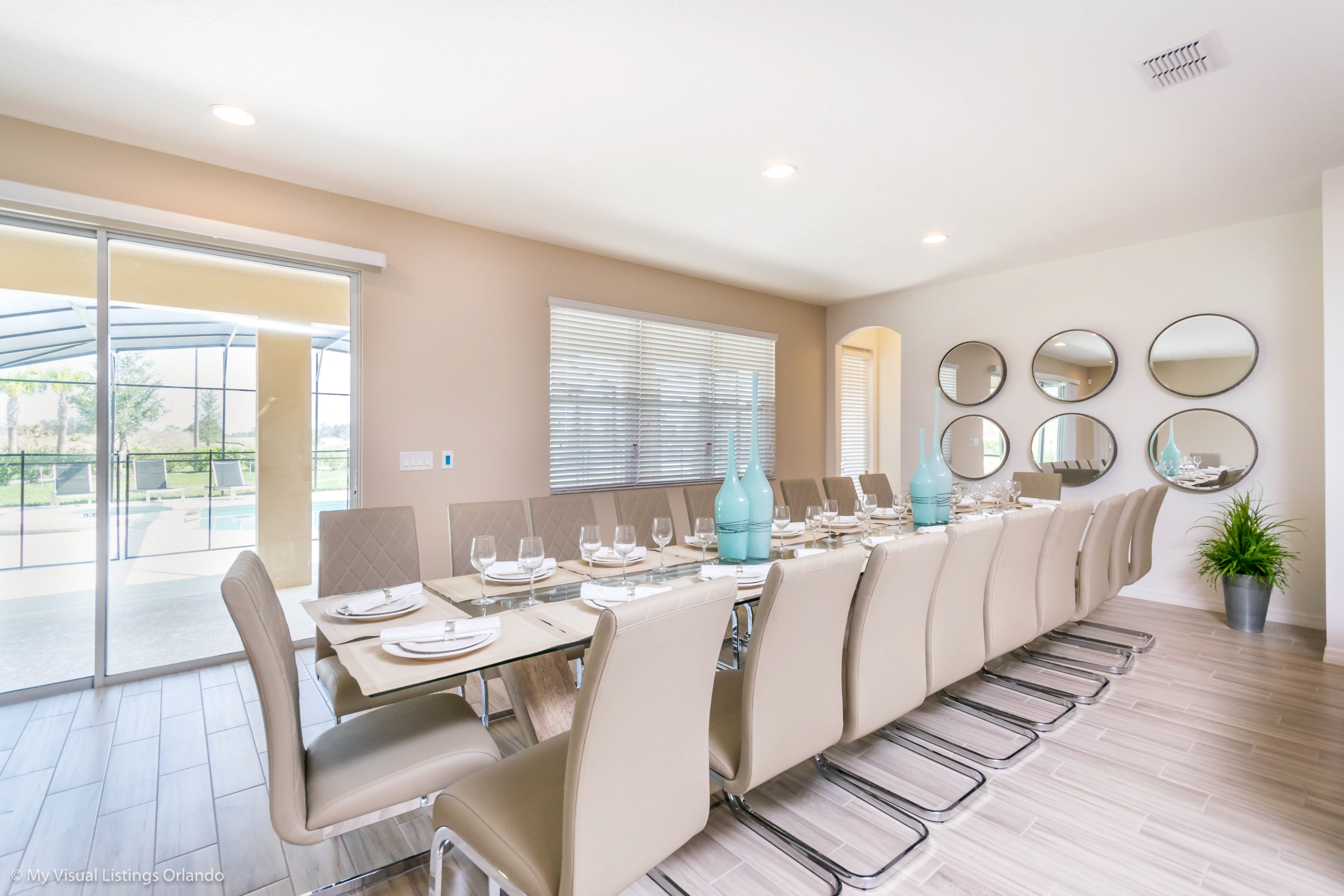 Just a few paces away, a dining table makes a perfect spot for family dinners, as you chat about the day's adventures in the theme parks!