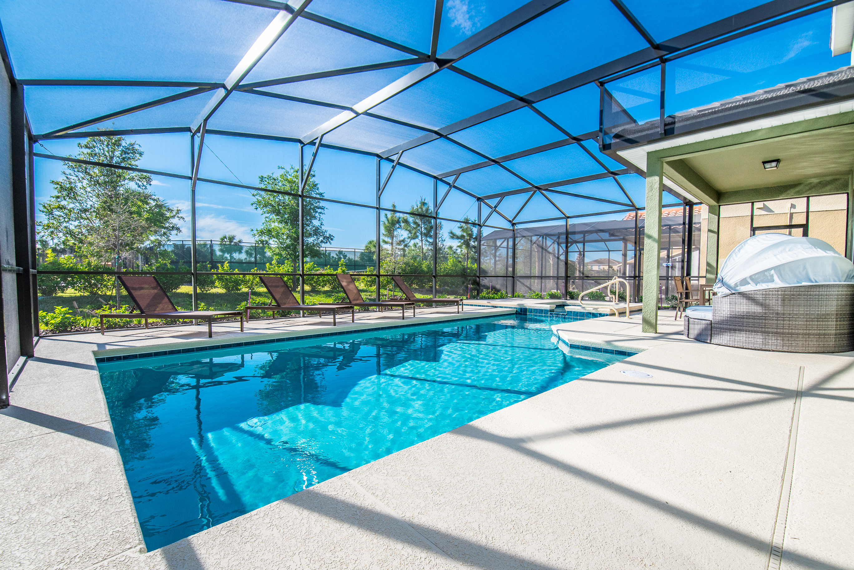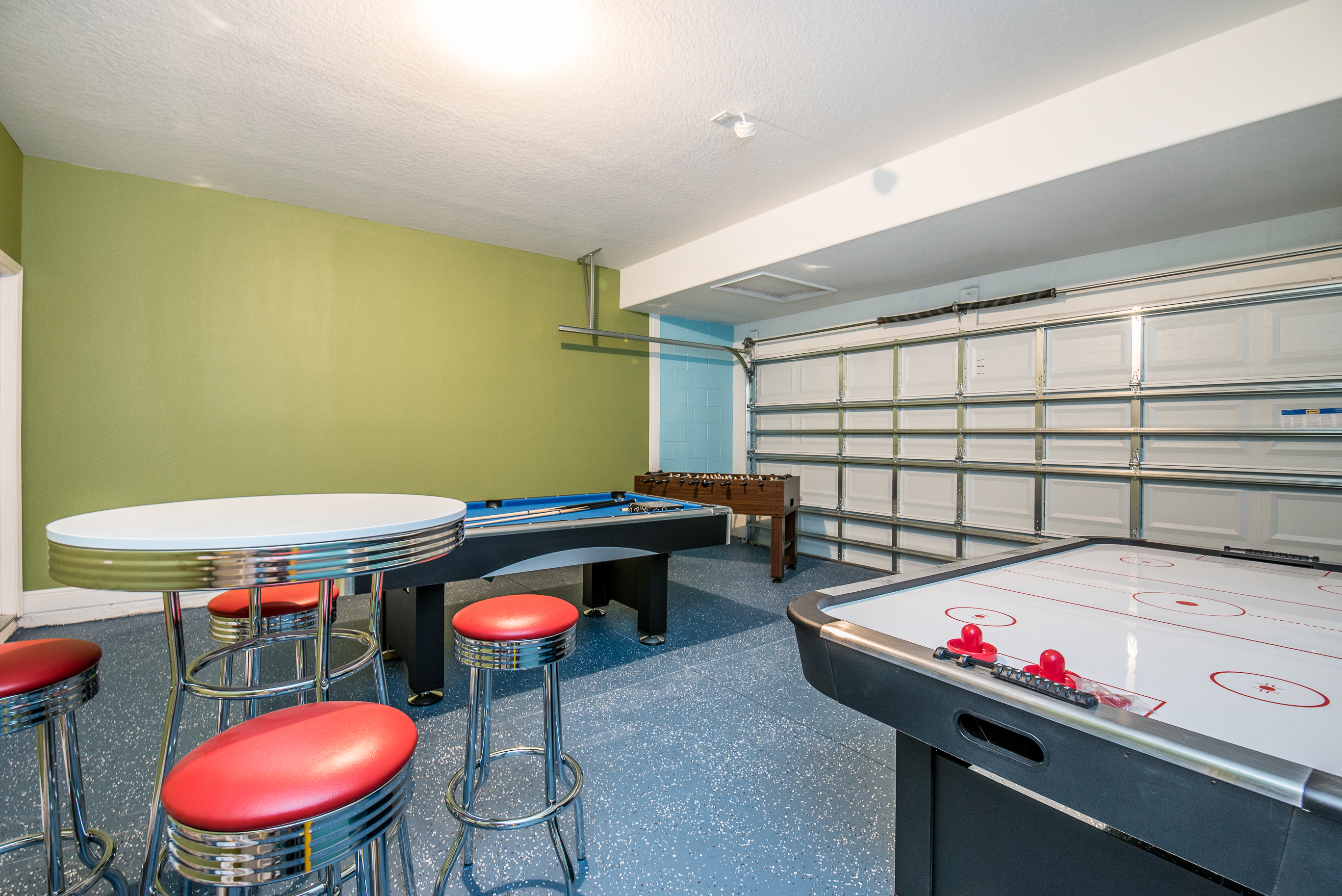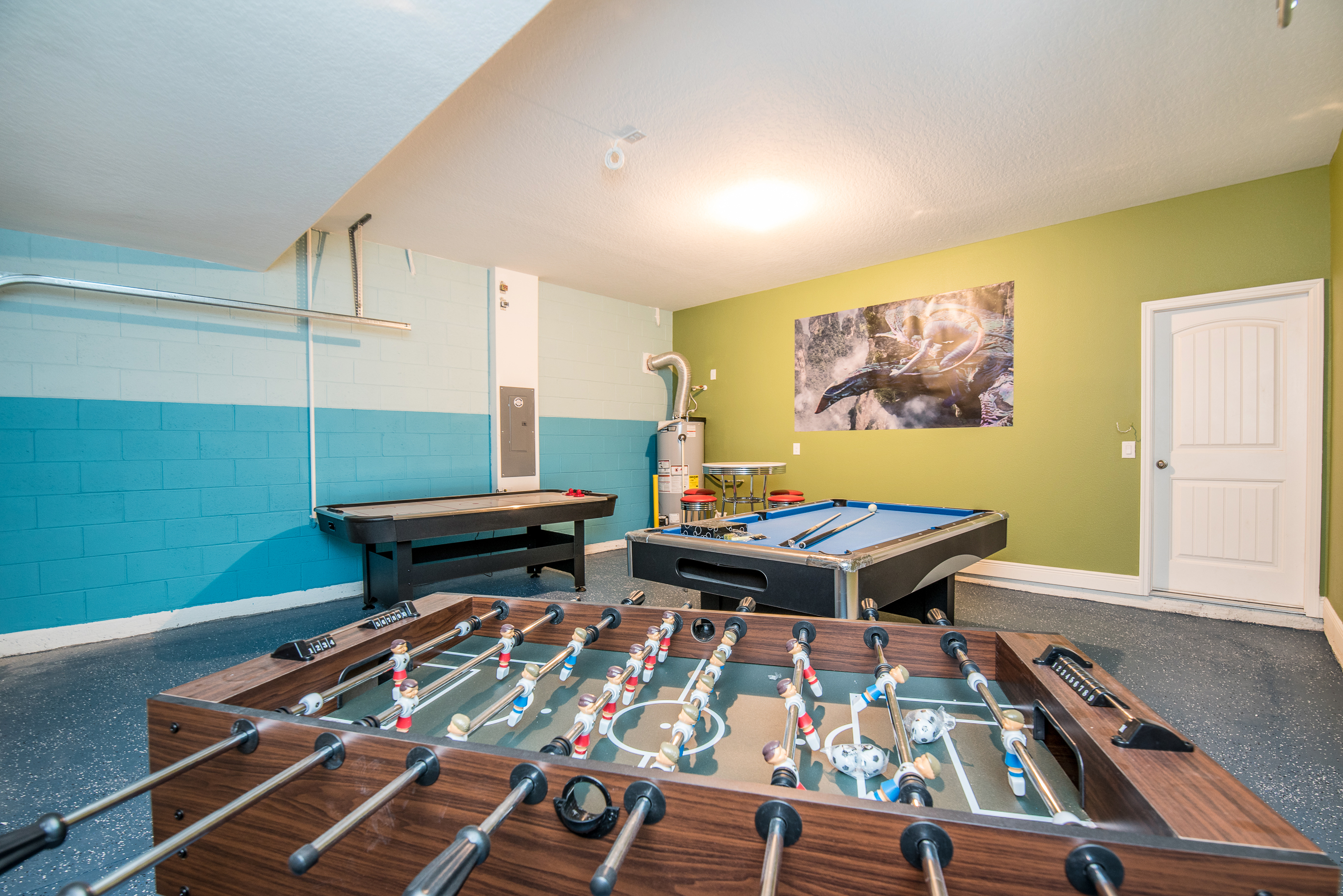 This 5-bedroom, 4 and Half -bathroom home has space and fun for everyone in your family with 2 King bedrooms, 1 Queen bedrooms and 2 twin bedrooms. Everyone in your family will love having their own space on this vacation. All bedrooms are equipped with an HDTV and DVD or game system. Cool off in the screened-in private pool with a spillover spa, grill out poolside under the lanai, compete for bragging rights in a game of foosball or pool in the game room, or gather everyone around the in the living area for a movie night. This luxurious home also includes a fully equipped kitchen, dining area, laundry room, two-car garage and complimentary high-speed Wi-Fi.