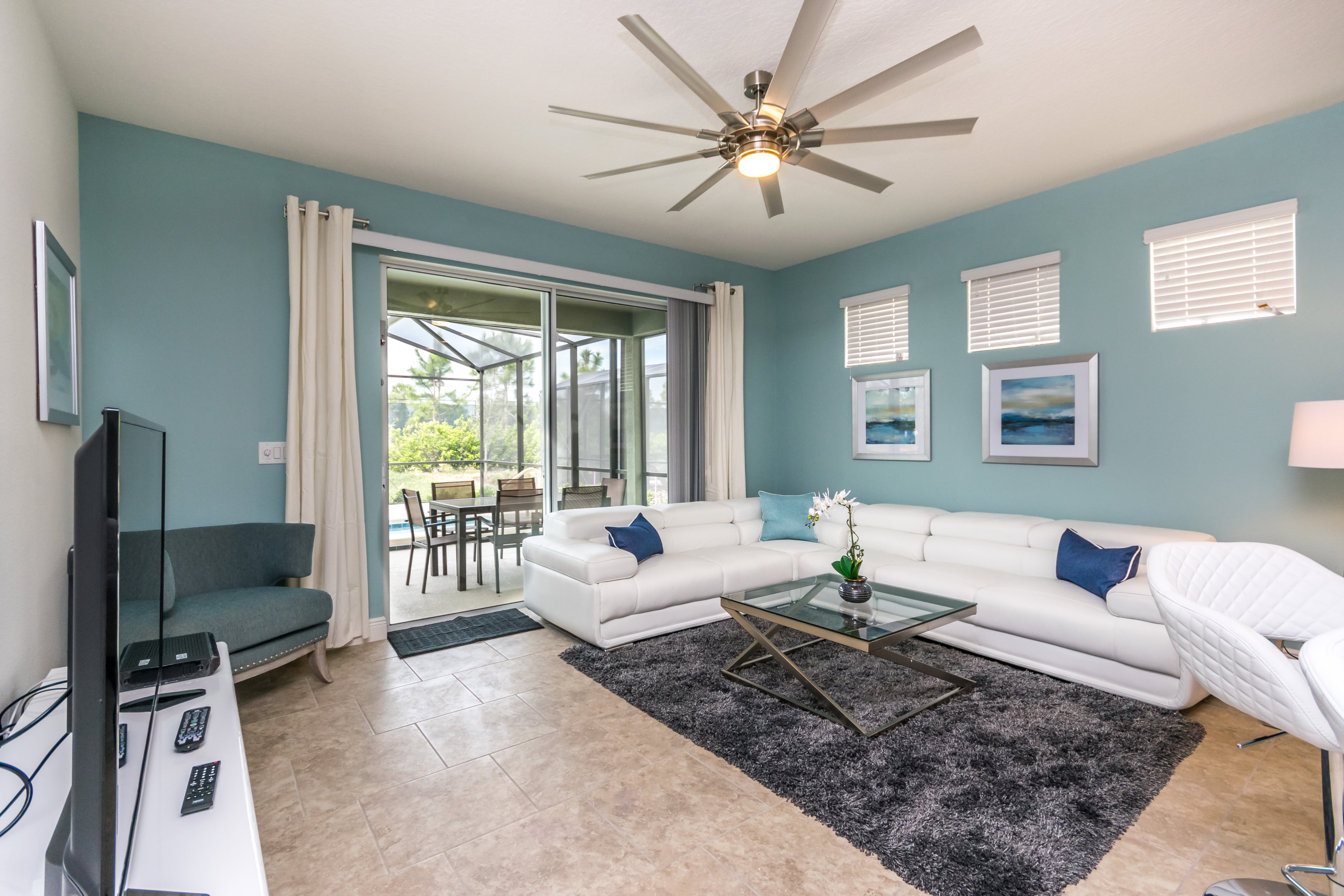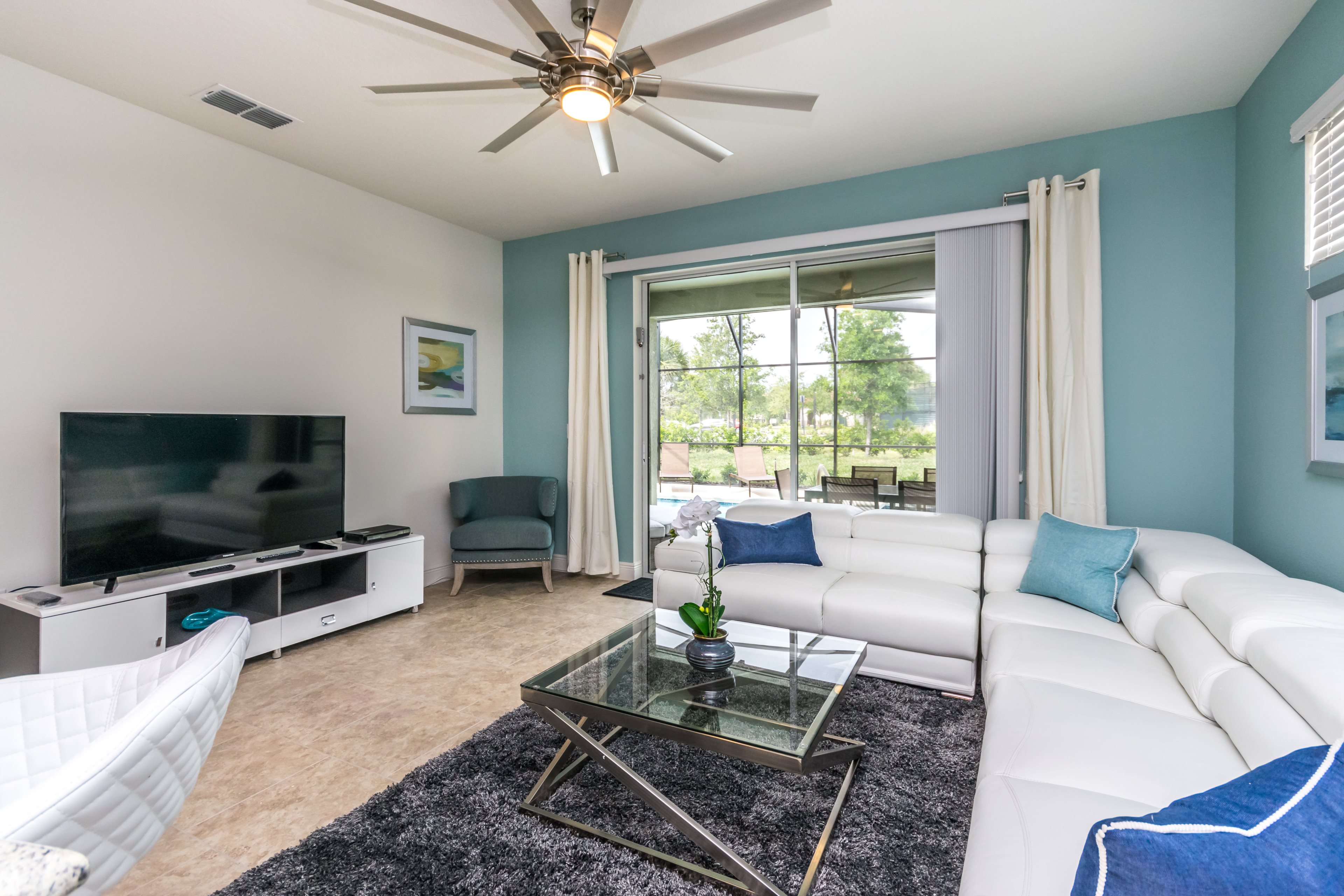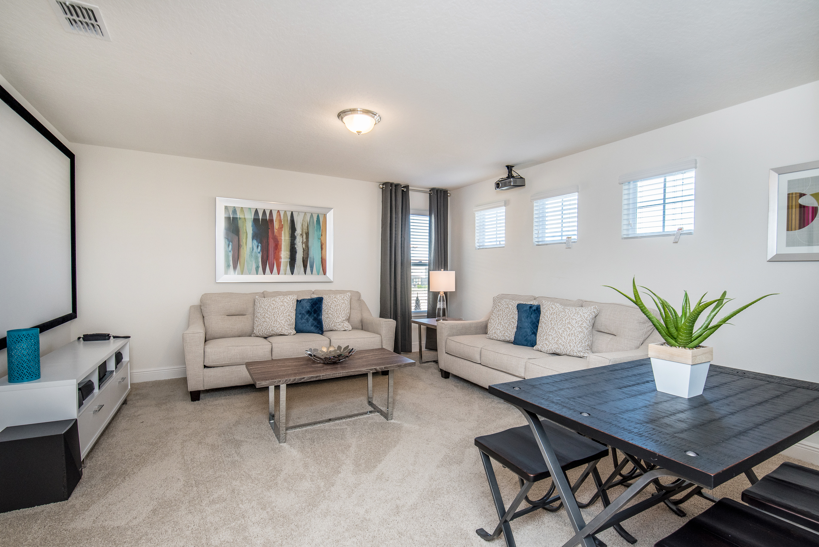 This 5-bedroom, 4 and Half -bathroom home has space and fun for everyone in your family with 2 King bedrooms, 1 Queen bedrooms and 2 twin bedrooms. Everyone in your family will love having their own space on this vacation. All bedrooms are equipped with an HDTV and DVD or game system. Cool off in the screened-in private pool with a spillover spa, grill out poolside under the lanai, compete for bragging rights in a game of foosball or pool in the game room, or gather everyone around the in the living area for a movie night. This luxurious home also includes a fully equipped kitchen, dining area, laundry room, two-car garage and complimentary high-speed Wi-Fi.