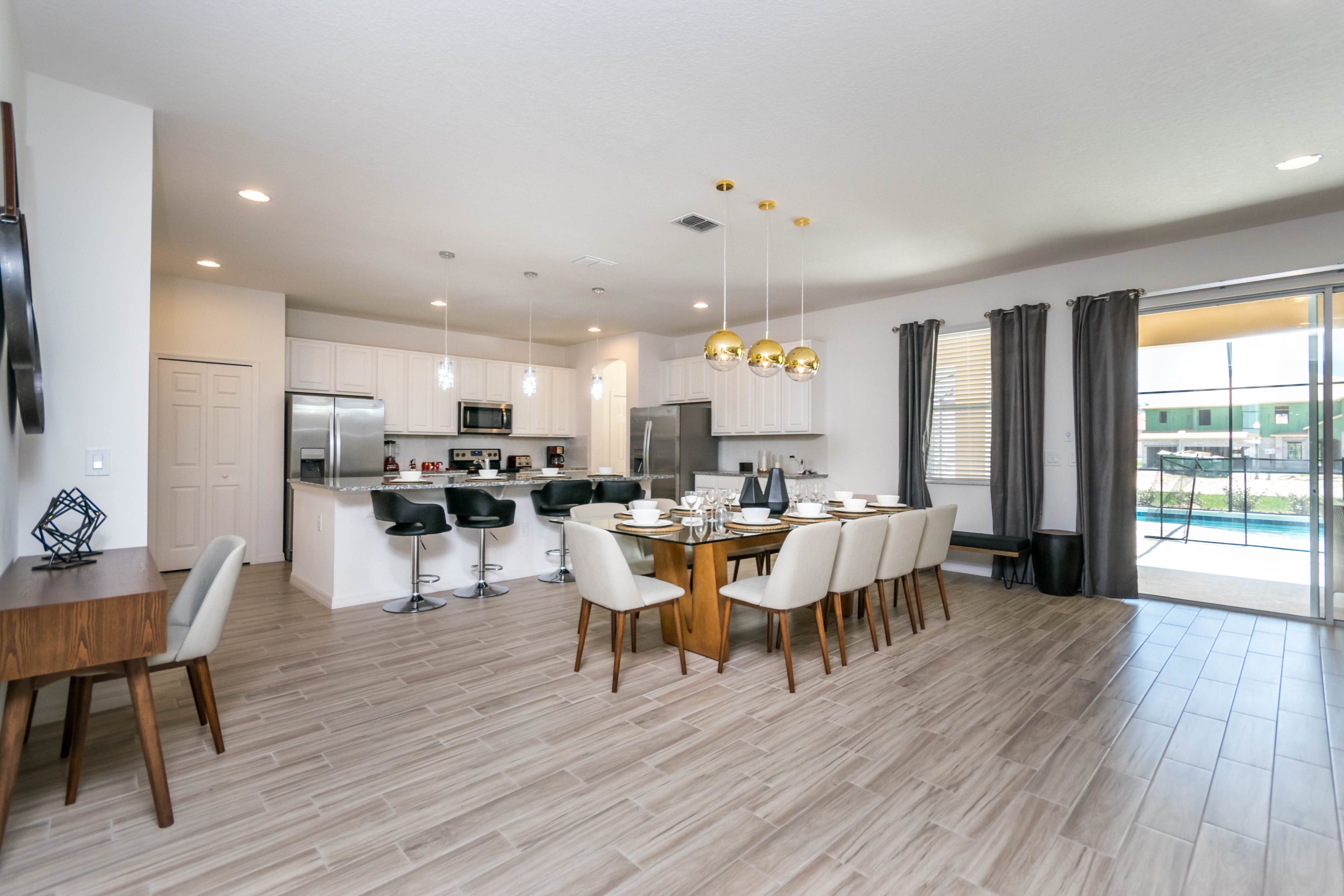 Just a few paces away, a large 16 seat dining table makes a perfect spot for family dinners, as you chat about the day's adventures in the theme parks!