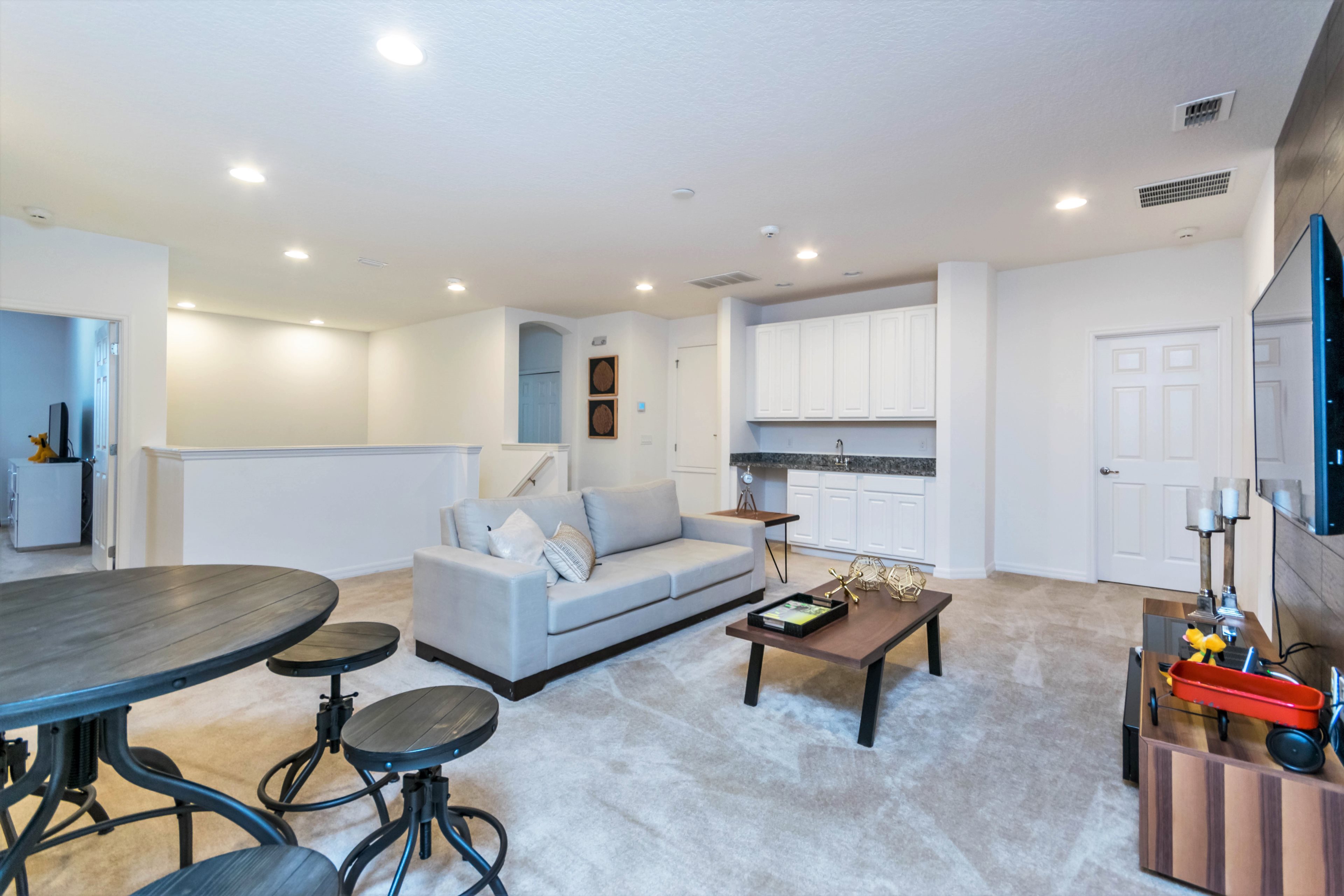 Upstairs, the loft area provides a second social gathering area, with comfortable seating, games area and flat screen TV.
