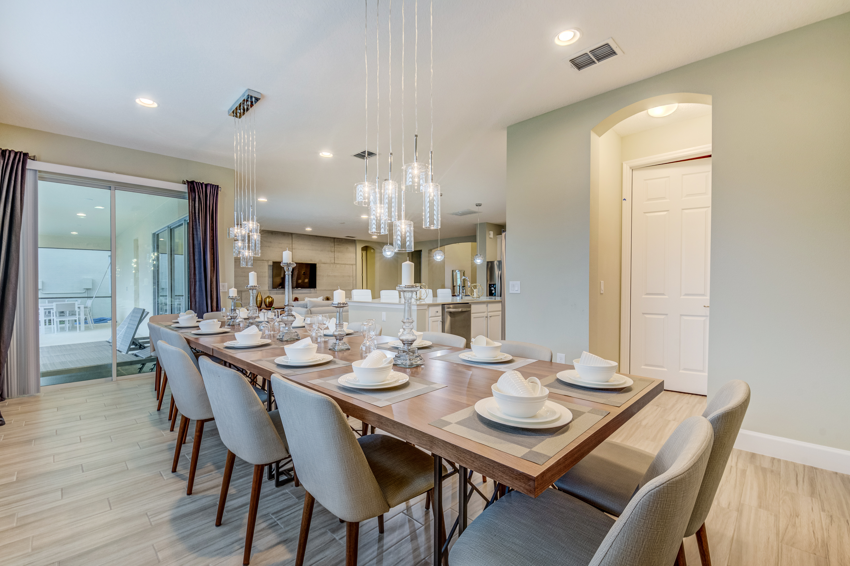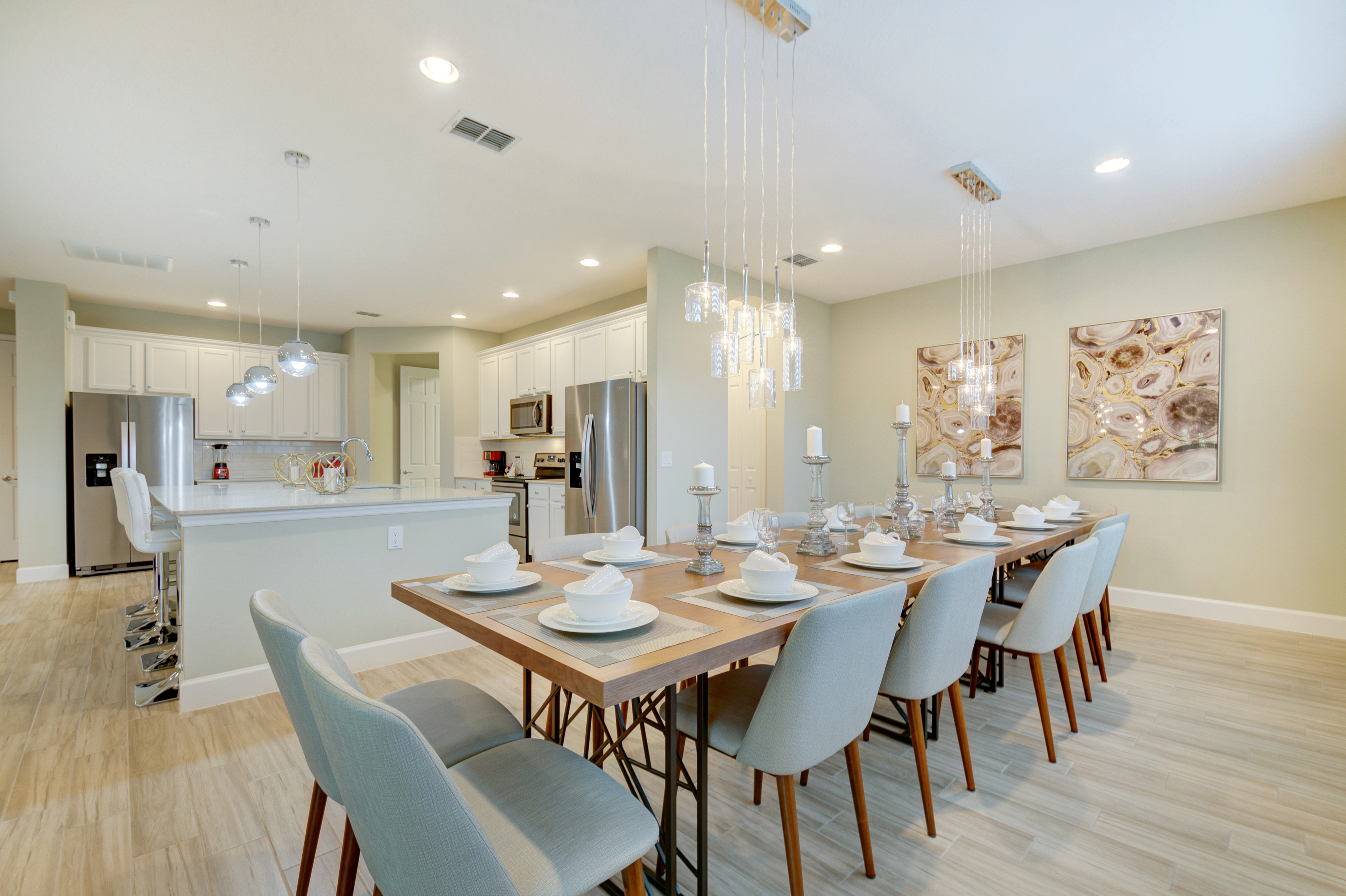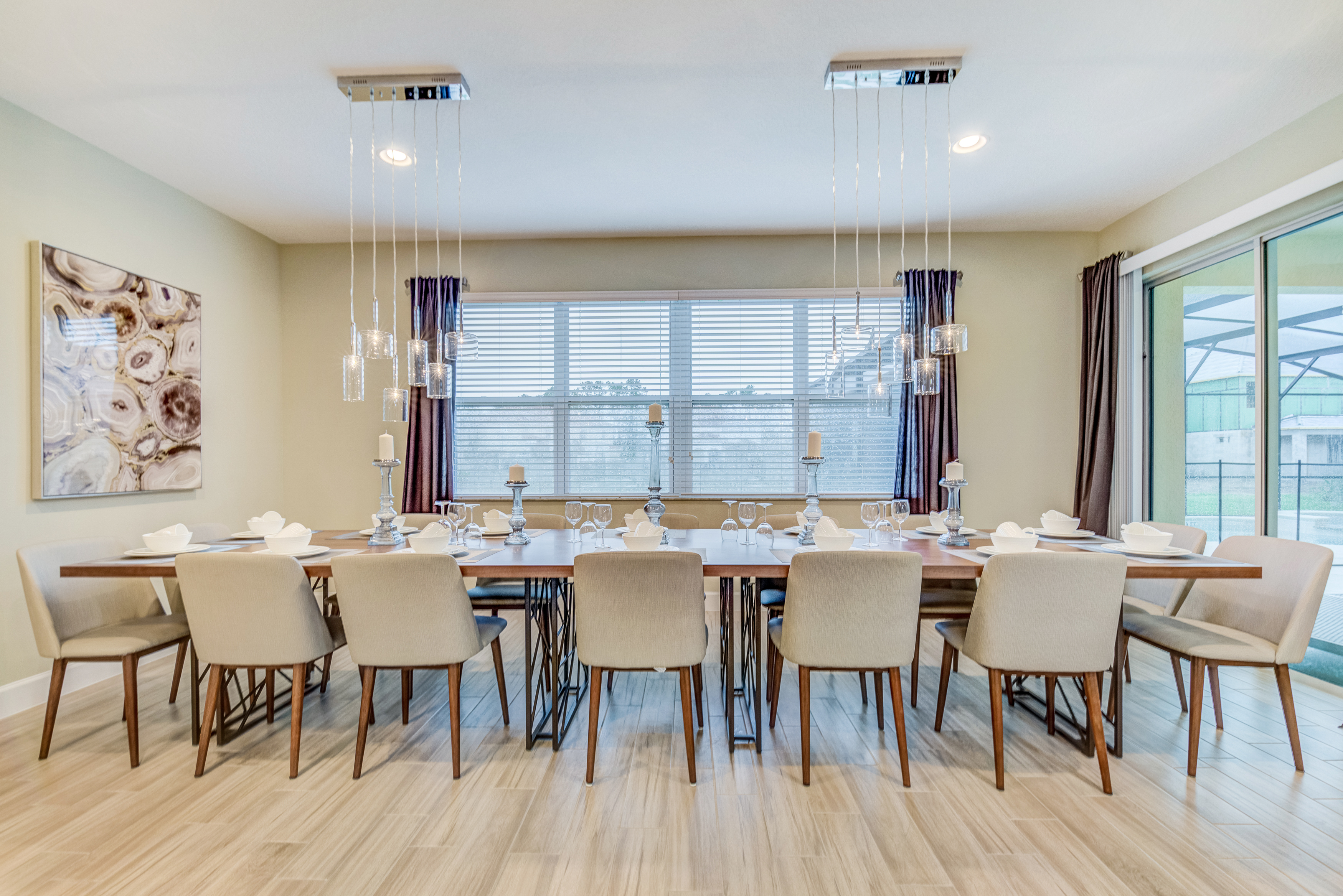 Just a few paces away, a large 16 seat dining table makes a perfect spot for family dinners, as you chat about the day's adventures in the theme parks!