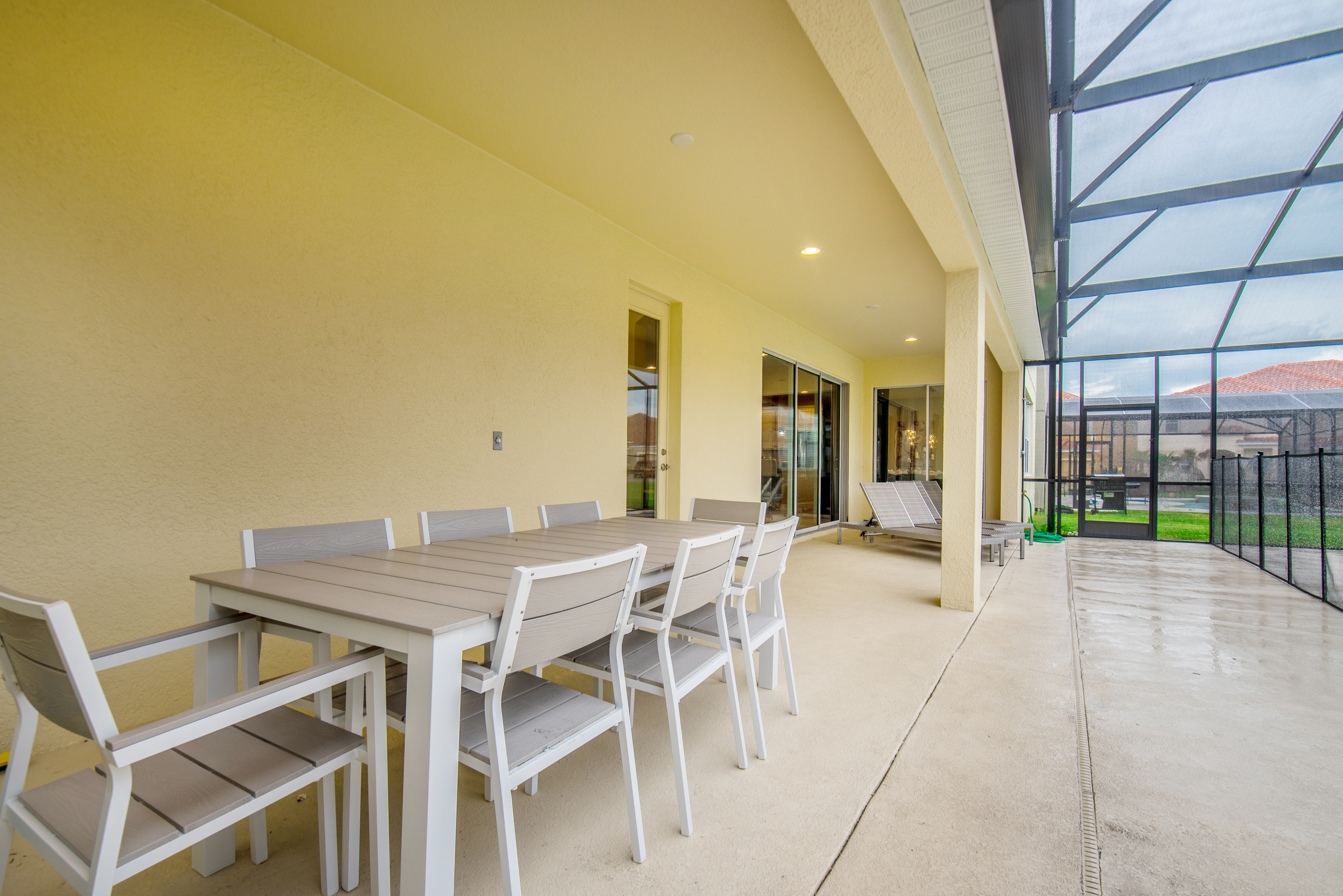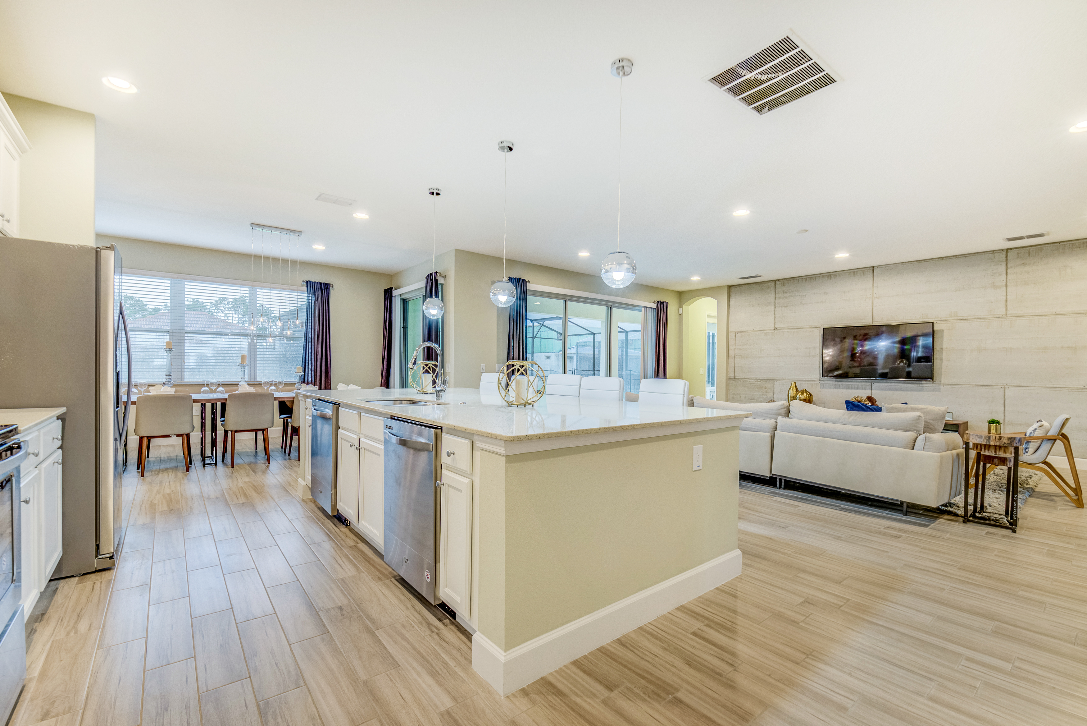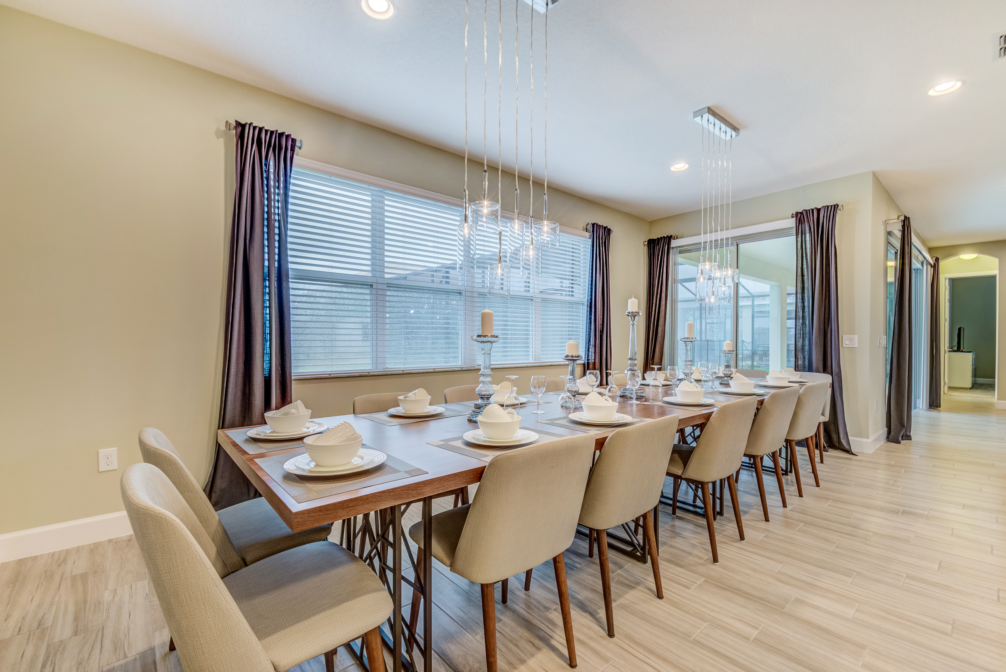 Just a few paces away, a large 16 seat dining table makes a perfect spot for family dinners, as you chat about the day's adventures in the theme parks!