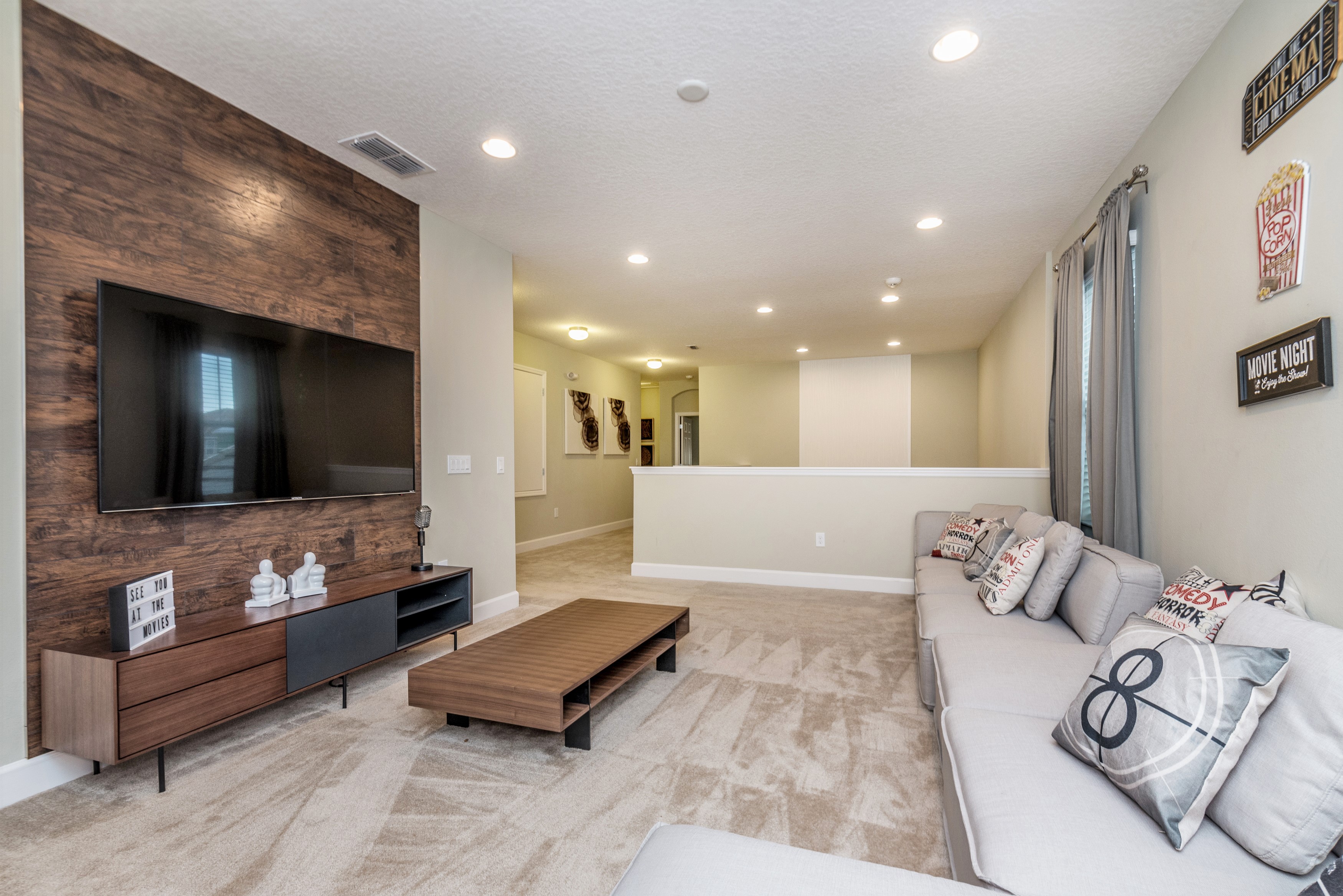 Upstairs, the loft area provides a second social gathering area, with comfortable seating, games area and flat screen TV.