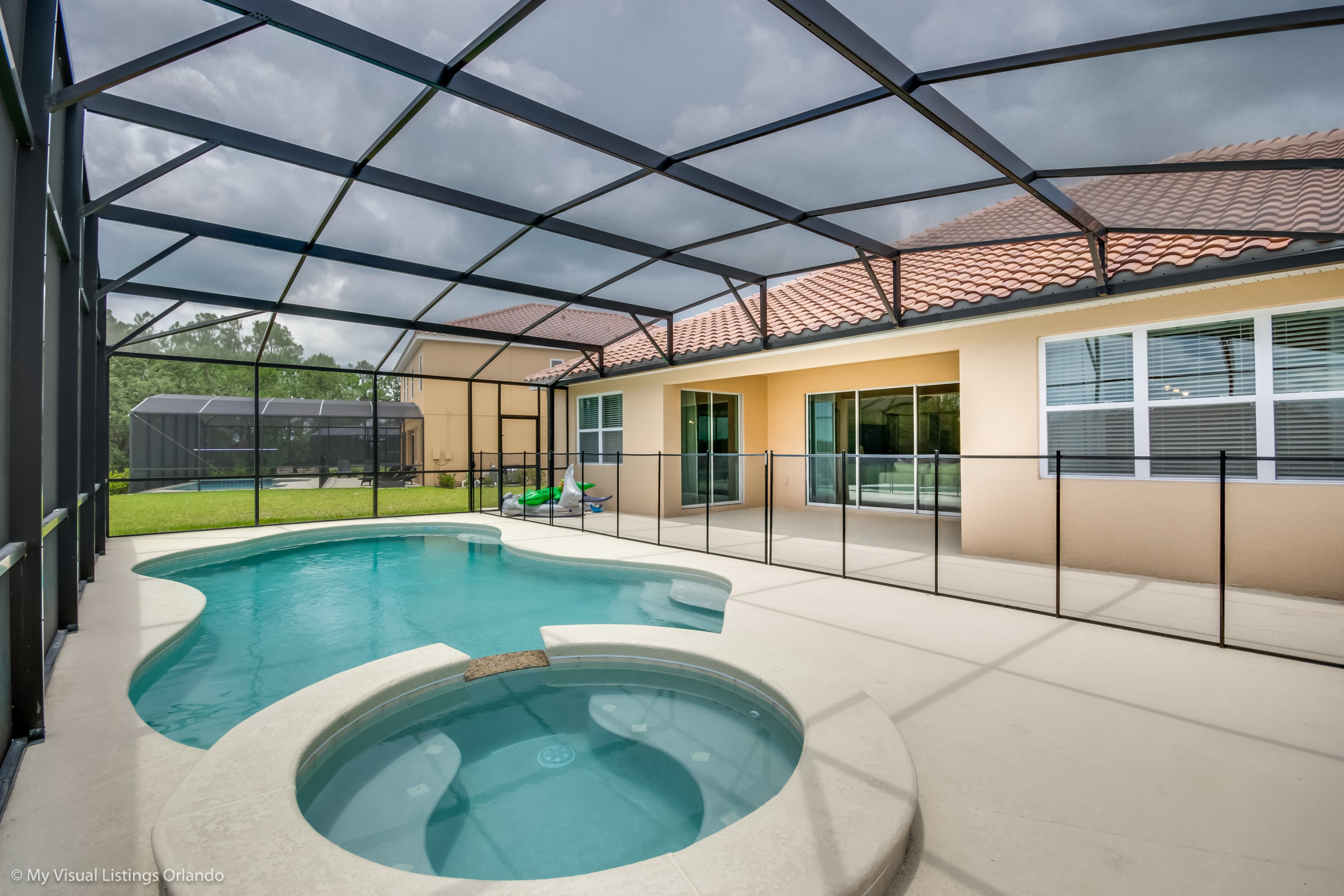 This 5-bedroom, 4 and Half -bathroom home has space and fun for everyone in your family . Everyone in your family will love having their own space on this vacation. All bedrooms are equipped with an HDTV and DVD or game system. Cool off in the screened-in private pool with a spillover spa, grill out poolside under the lanai, or gather everyone around the in the living area for a movie night. This luxurious home also includes a fully equipped kitchen, dining area, laundry room, two-car garage and complimentary high-speed Wi-Fi.