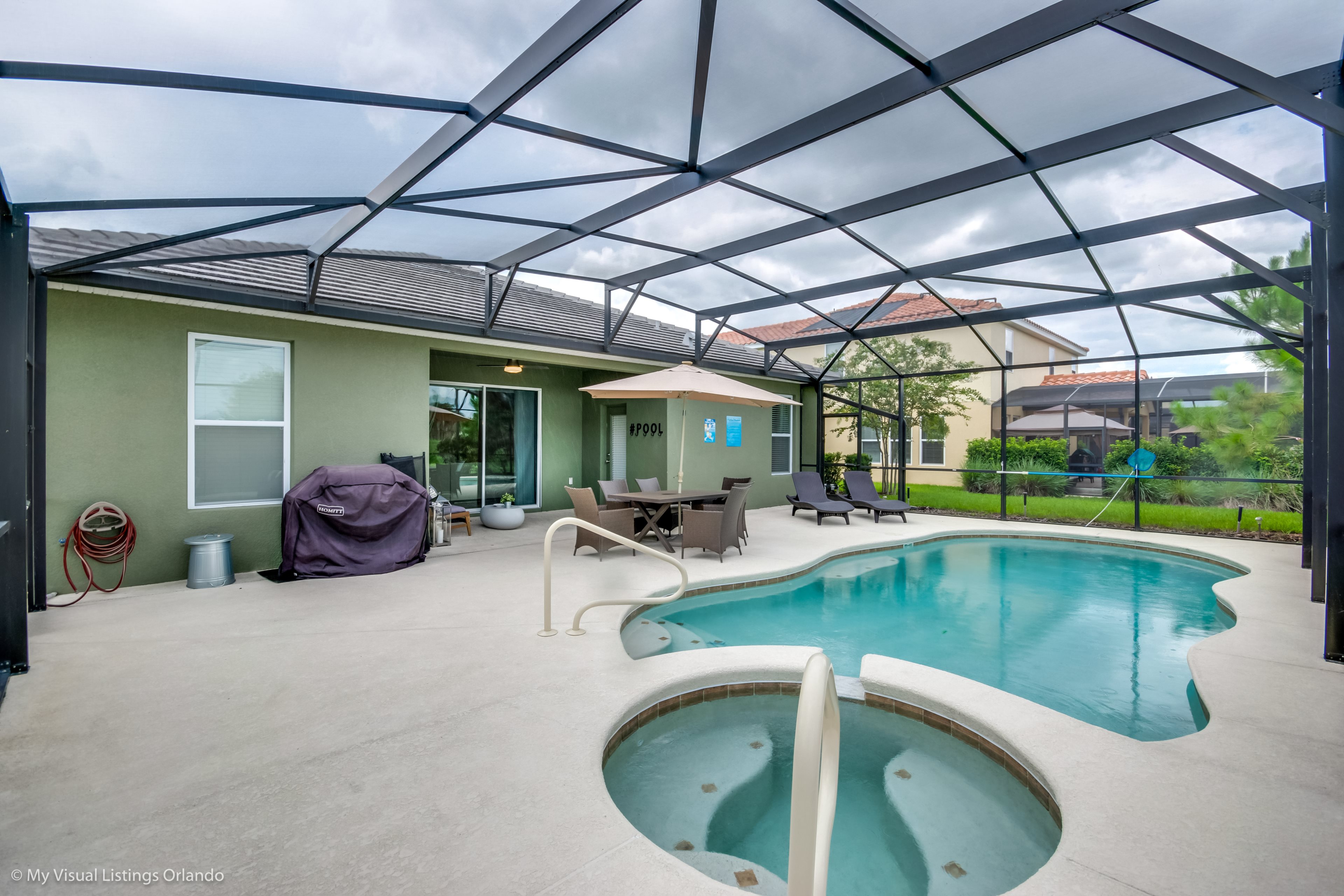This 5-bedroom, 4 and Half -bathroom home has space and fun for everyone in your family . Everyone in your family will love having their own space on this vacation. All bedrooms are equipped with an HDTV and DVD or game system. Cool off in the screened-in private pool with a spillover spa, grill out poolside under the lanai, or gather everyone around the in the living area for a movie night. This luxurious home also includes a fully equipped kitchen, dining area, laundry room, two-car garage and complimentary high-speed Wi-Fi.