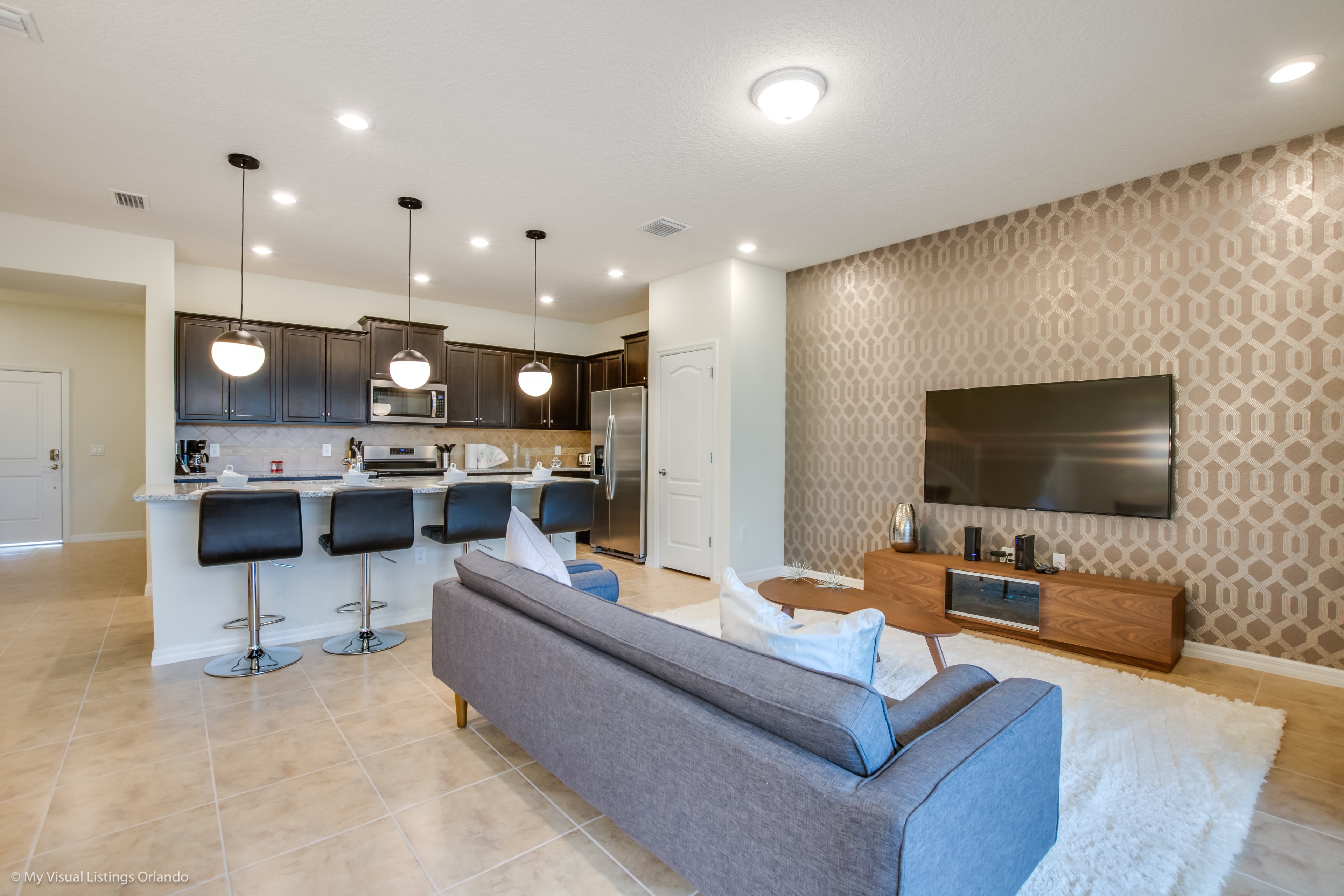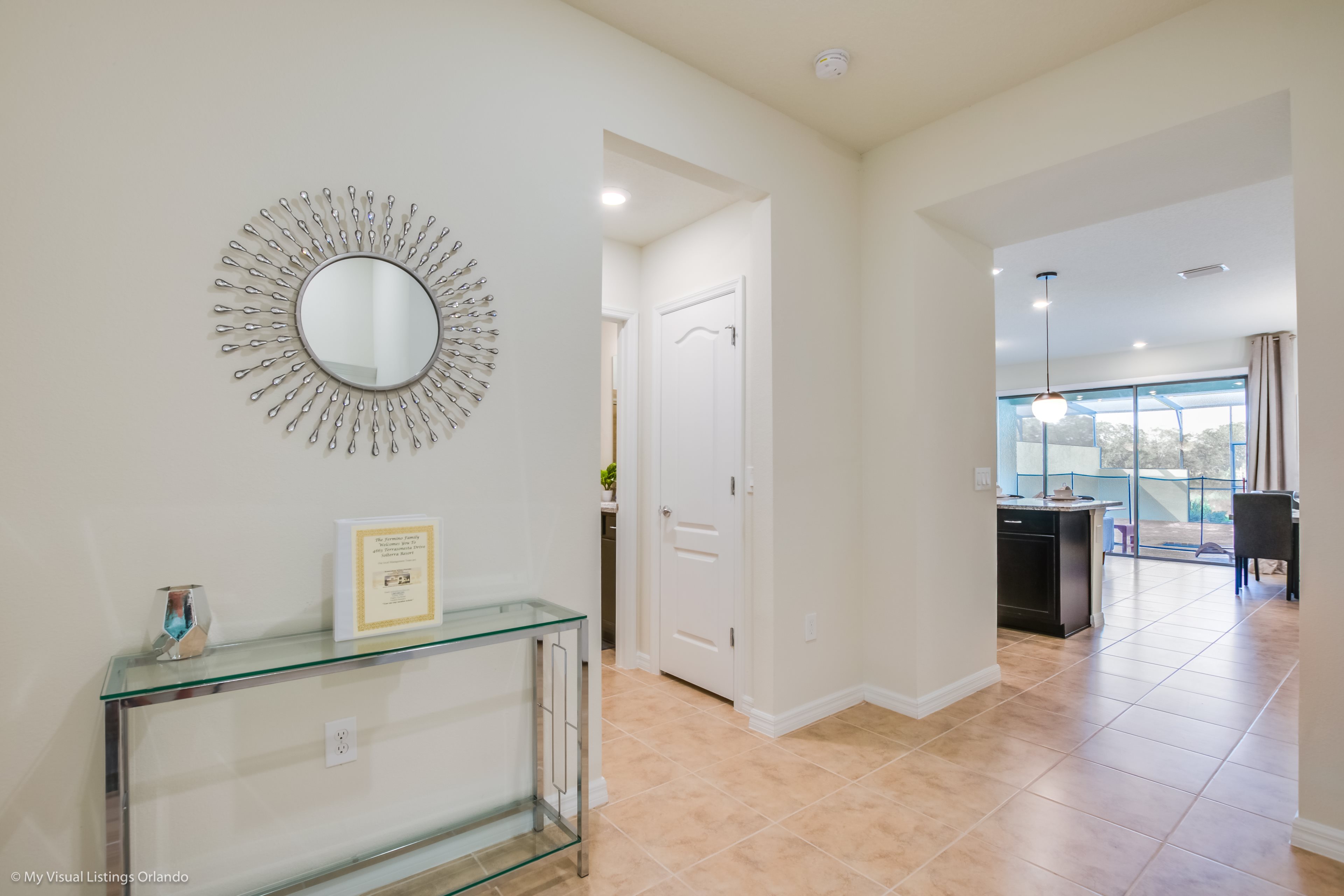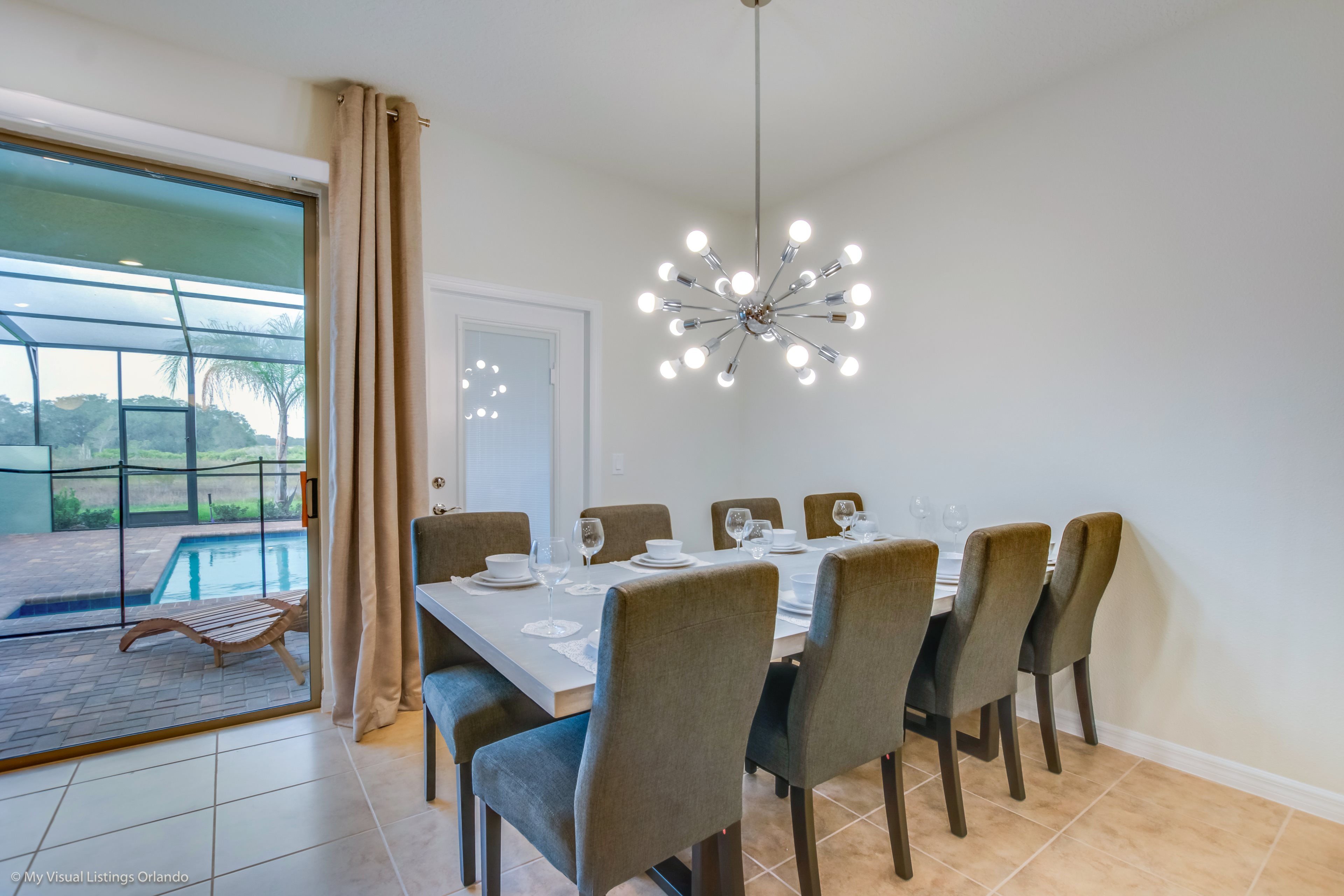 This beautiful Orlando vacation home is located in Solterra Resort, a new vacation home resort, with clubhouse. Driving takes only 10 minutes to Disney, 20 minutes to Universal, 30 minutes to the Universal Drive Outlet Malls and 5 minutes to Champions Gate, Reunion and other golf courses. For great shopping, the new Posner Park is within 2.5 miles; JCPenney, Target, Staples, Best Buy, Michaels and various restaurants.Solterra resort has a wealth of onsite facilities and a fantastic pool area. The clubhouse is a short walk away and features a large fitness center with top of the line TechnoGym equipment including cardio, weight machines and wall mounted flatscreen TVs, high end communal coffee/conversation room with bar seating, comfortable sofas, welcoming decor and large French doors that open out to the pool area.