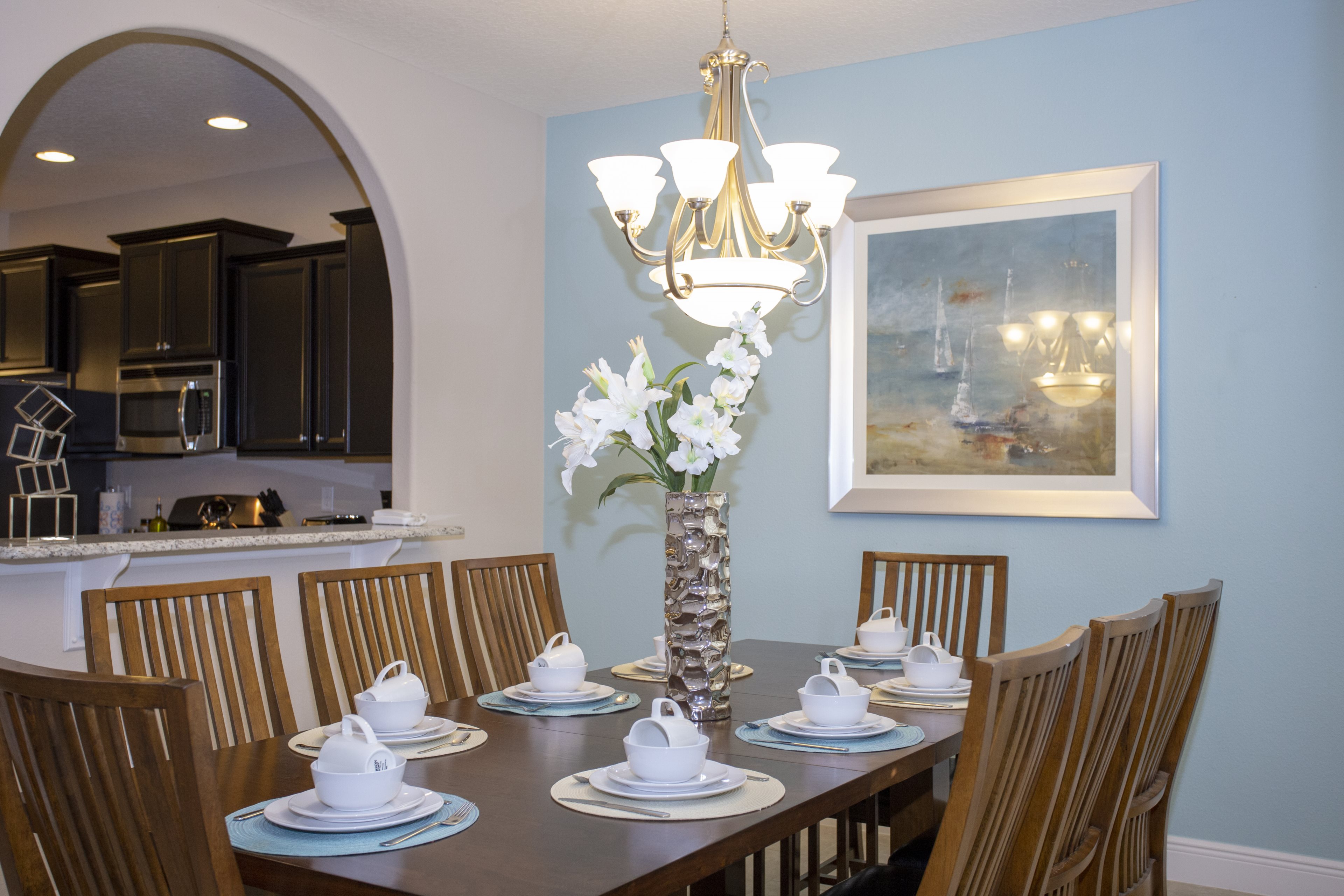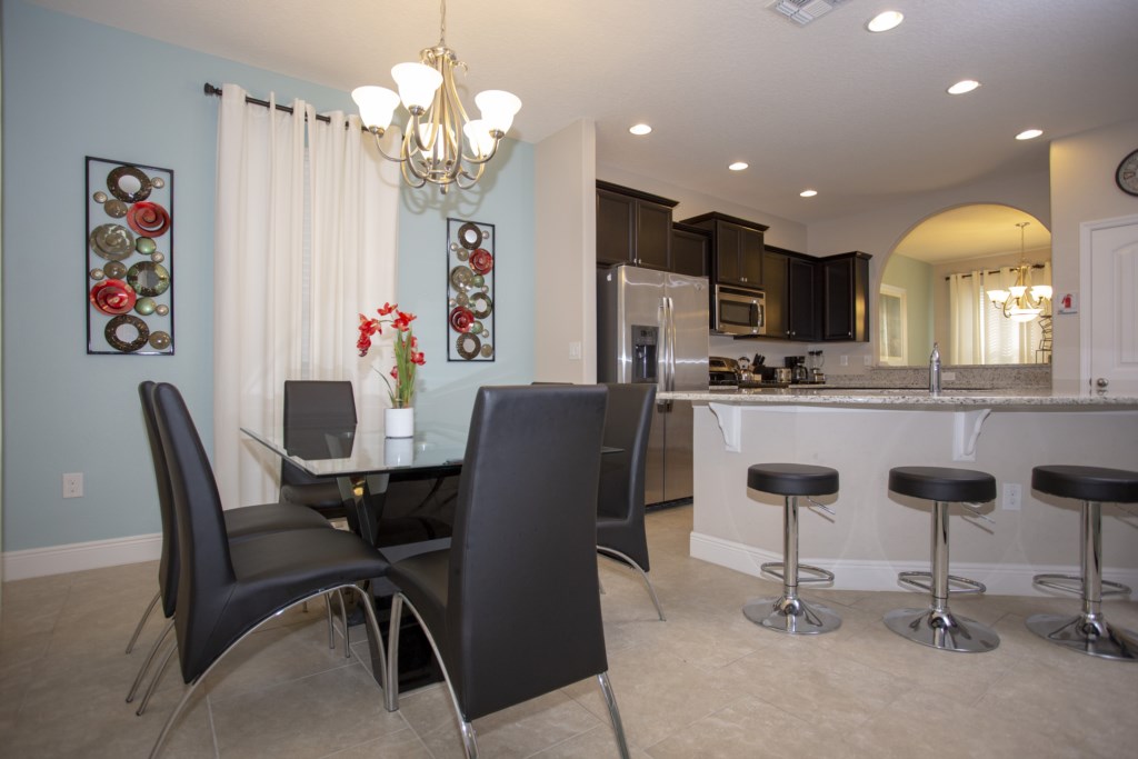 Our home has to living room areas for large group, and also a dining and breakfast area separated. Private pool and Jacuzzi.