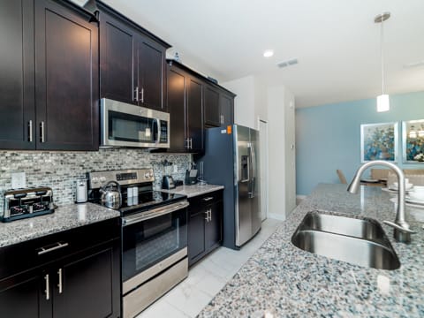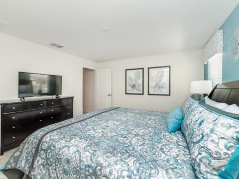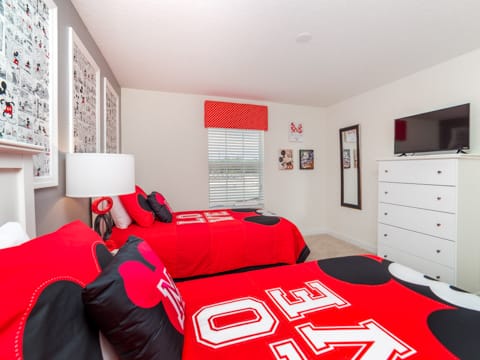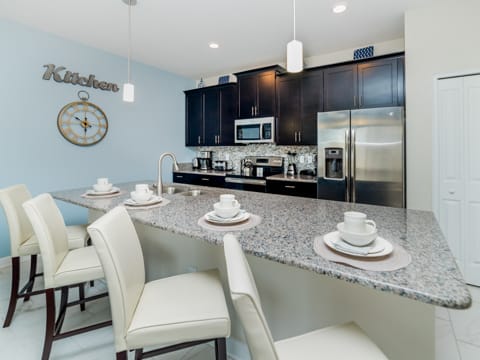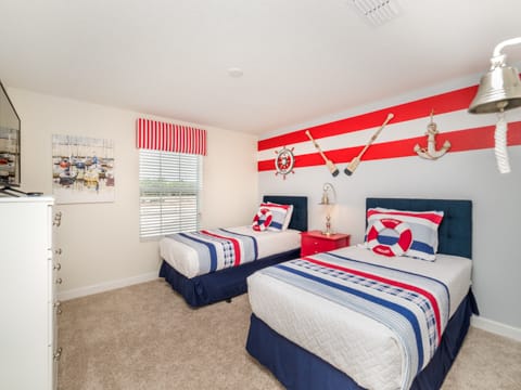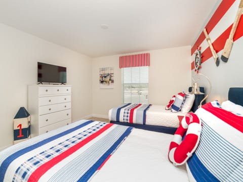 Welcome to the gated resort community of Storey Lake. A new community in Kissimmee - this will have all you want and more. This gorgeous 4 bedroom and 3 bathroom home sleeps you and 7 guests perfectly. With all the amenities of home, you will feel at ease and ready for vacation. As you enter the home, you are greeted by the 6 person dining room which offers the perfect place to relax and enjoy meals together. To the left is the large kitchen where all of your chef dreams are bound to come true. Granite countertops, stainless steel appliances and updated cabinetry make it feel warm and luxurious. Heading into the living room, you are greeted by a 50” flat screen TV as well as cozy couches. The living room overlooks the splash pool, perfect for cooling off from the Florida sun. After that, you must check out the bedrooms. One king bedroom, one queen bedroom and two rooms with two twins in each make everyone feel at home on your stay. The nautical as well as Mickey and Minnie themed rooms are perfect for the little ones. Storey Lake is the ideal community in the perfect location and this home only makes it better. The washer and dryer and free WiFi in the home add to the convenience of a vacation home. Not only is Storey Lake in a great in location, but it also has superb entertainment. The new clubhouse has all you want and more! The pool, slides and sport courts are sure to be a great addition. Book your stay today and let your vacation begin!