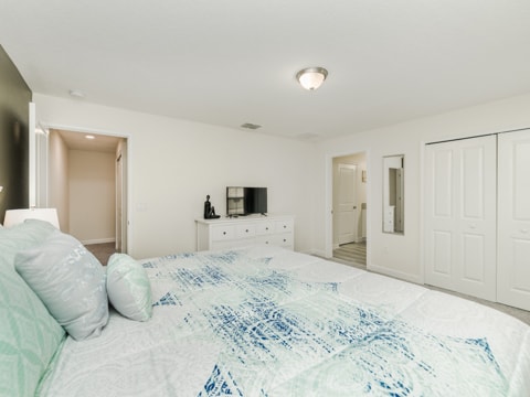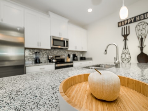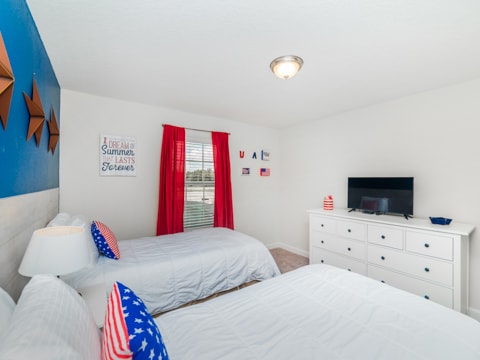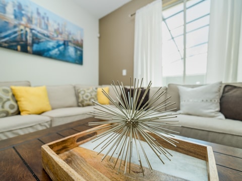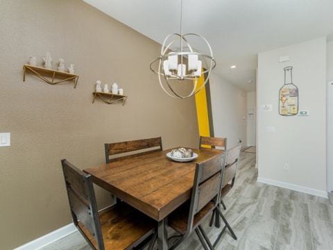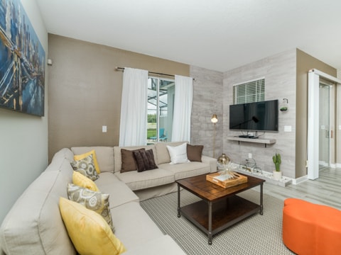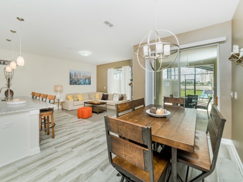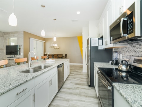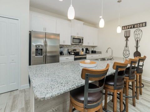 This sleek, new and modern home is set to be your new vacation destination. Welcome to Storey Lake, the new community built around location. This particular townhome is stunning in every aspect. The huge kitchen is a work of art with granite countertops, stainless steel appliances and gorgeous cabinetry. Adjacent to the dining room, the kitchen is within the perfect proximity where you can serve up your favorite gourmet meals. The living room is comfy and cozy with its neutral colors, wood wall and more. The wraparound couch is situated around a 55” flat screen where you can catch up on your favorite TV shows, movies and everything in between. The attention to detail is a must see. Four bedrooms and 3 bathrooms makes sure everyone has their own space on your vacation. Gone are the days of sharing bathrooms and beds with this spacious home. Each bedroom is expertly decorated with a different theme in each. One king bedroom, 1 queen bedroom and 2 rooms with 2 twins in each makes sure all 8 guests can sleep perfectly. The pool on the back patio is sure to be a place of gathering and fun. Stay out here all day and enjoy the sun. If that is not enough, this home includes access to the Storey Lake Clubhouse. Huge pools, a kiddie area and more await you here. The location of Storey Lake is like no other. Just minutes from Disney, shopping and all of Orlando, this will be the place for you. Book your stay today to enjoy your vacay!