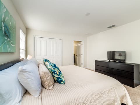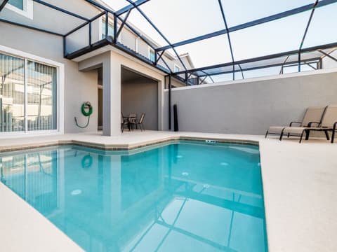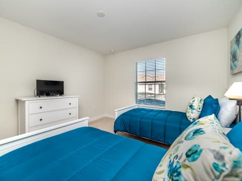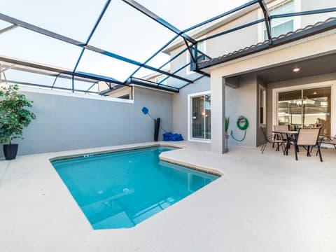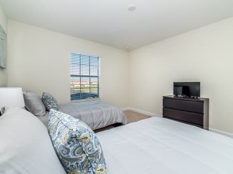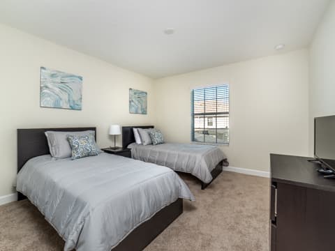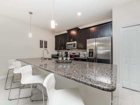 Welcome to the gated resort community of Storey Lake where relaxation begins. This 4 bedroom, 3 bathroom home is the perfect vacation getaway located right in the middle of Kissimmee. To begin, this gorgeous townhome boasts 4 large bedrooms, all perfect and ready for your vacation. With 1 king bedroom, 1 queen bedroom and 2 bedrooms with 2 twins, this home sleeps 8 comfortably. All of these bedrooms come equipped with a 32’ flat screen TV. This townhouse kitchen is the perfect place to cook up some family style meals and enjoy them all together. The upgraded appliances, gorgeous dark wood cabinetry and granite countertops bring a warm feel to the cozy home. The breakfast bar and dining table are there for you to enjoy all of your meals together. The dining room overlooks the gorgeous splashpool where you can relish in the Florida sun all day. Dine al fresco on the outdoor table and call it a day in sunny Florida. All of our homes come with free WiFi and a washer and dryer for your convenience. The resort community of Story Lake is also an advantage to this incredible home. Miles from Disney property and just a few short steps from world class shopping, you are sure to have all you need. Book today and enjoy all of what Orlando has to offer.