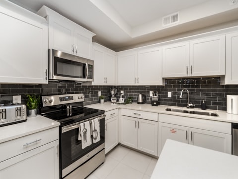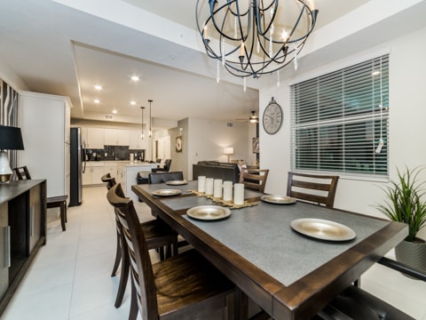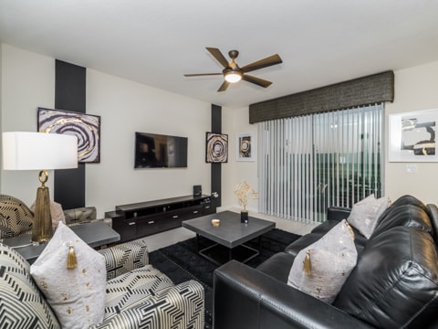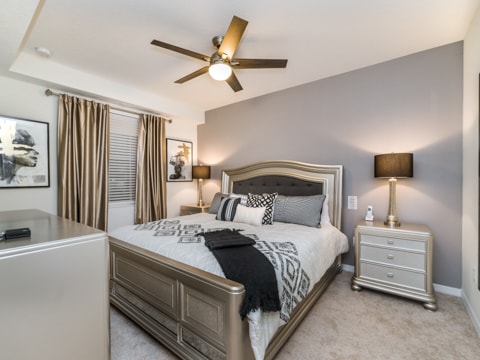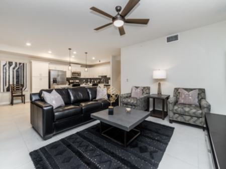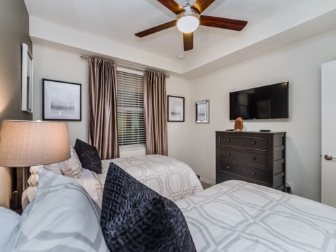 With 2 bedrooms and 2 baths, this perfect condo located in Storey Lake will make your stay absolute perfection. Opening up to a large living room, this home will be the quintessential vacation rental. With a 55” flat screen, couches made for movie nights and an open concept, you are sure to spend quality time with your family. The 2 bedrooms are decorated to perfection. The master bedroom has dark wooden features, a flatscreen TV as well as an ensuite master bathroom. The second room features a bunk bed with a twin over full, sleeping 3 additional guests. One of the best parts of this home is the gorgeous kitchen and dining room. The kitchen is completely upgraded with beautiful white countertops, white cabinets and top of the line appliances. If cooking for 4 people or 10 people, it will feel like a breeze here with plenty of counter space and storage. Any chef will be happy to spend their time cooking here. The dining room, located next to the kitchen is where you’ll be able to enjoy family dinners together. This condo is truly a home and perfect for your next vacation. With all the conveniences of home like WiFi and a washer and dryer, and all the luxuries of vacation, like a huge clubhouse, this is the perfect spot to stay.