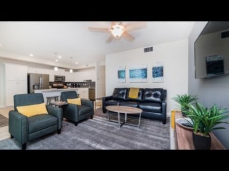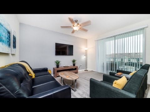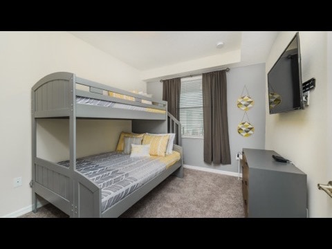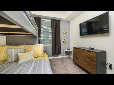 With 2 bedrooms and 2 bathrooms, this perfect condo located in Storey Lake will make your stay absolute perfection. Opening up to a large living room, with spacious couches and a 55'' flat screen, movie nights and spending quality time with family and friends is a sure thing. The 2 bedrooms are decorated to perfection. The master bedroom has dark wooden features, a flat screen TV, as well as an ensuite master bathroom. The second bedroom features a bunk bed with a twin over full, sleeping 3 additional guests. One of the best parts of this home is the gorgeous kitchen and dining room. The kitchen is completely upgraded with beautiful white countertops, white cabinets and top of the line appliances. If cooking for 4 or 10, it will feel like a breeze, with plenty of counter space and storage. Any chef will be happy to spend their time cooking here. The dining room, located next to the kitchen, is where you’ll enjoy family dinners together. With all the conveniences of home, including WiFi and a washer and dryer, this is the perfect spot to stay. And, don't forget the luxuries of the huge clubhouse facility for added enjoyment.