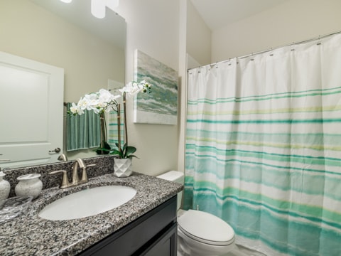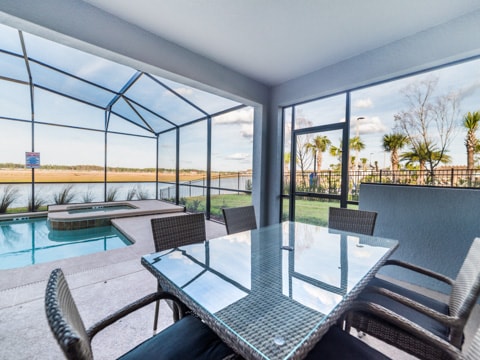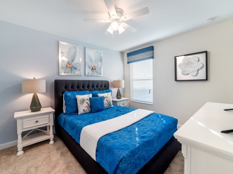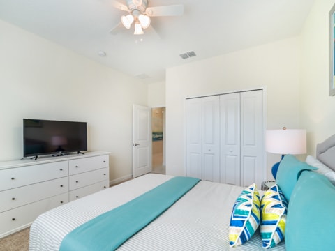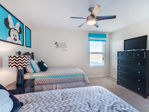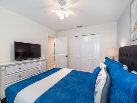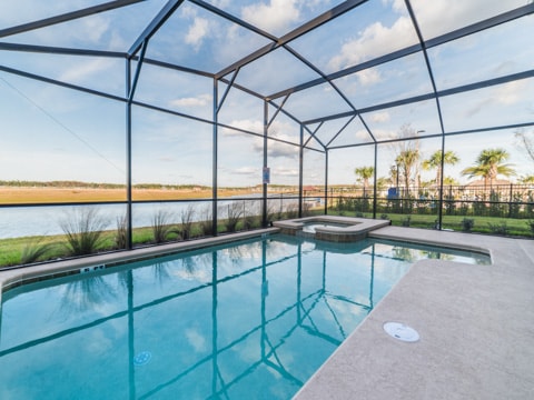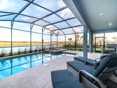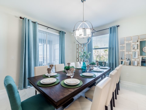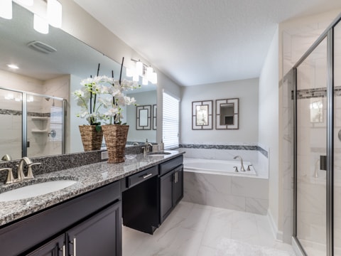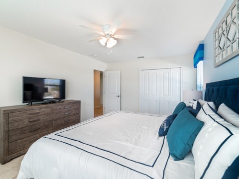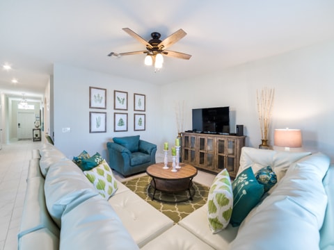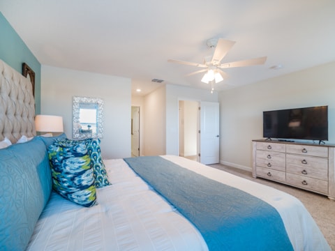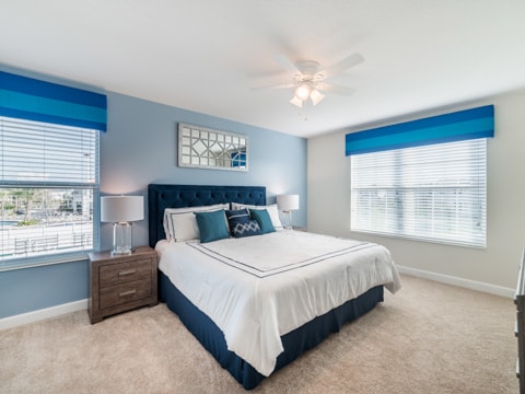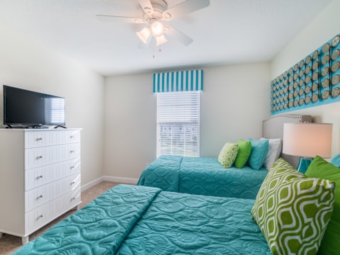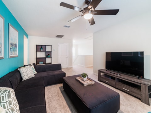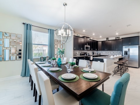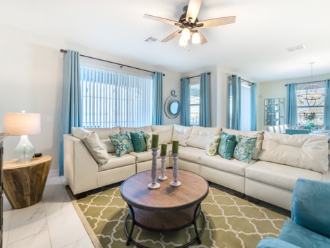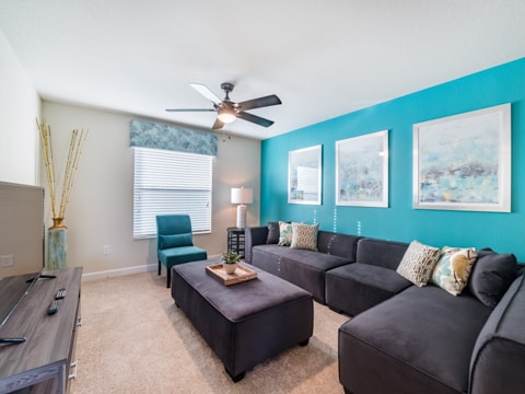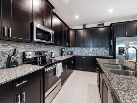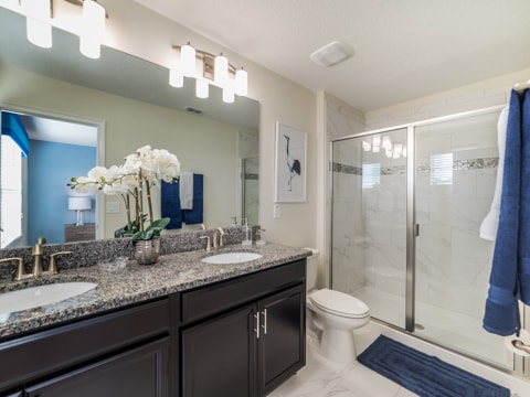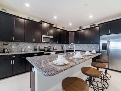 Begin your dream vacation now by staying in this opulent 6 bedroom, 5 bathroom home located in the resort community of Storey Lake. Spacious, open, and luxurious are the perfect words to describe this home. The inviting living room boasts a leather wrap around couch and a 50” flat screen TV. Perfect for hang outs, game night and relaxation, this living room is where you and your guests will spend plenty of time. The striking kitchen is where all the chefs in your family will be happy to cook. The phrase “too many cooks in the kitchen” has no meaning here as there is plenty of counter-space to cook, chop and mix. A gorgeous backsplash complements the granite countertops as well as the stainless steel appliances to the dark cabinetry. Enjoy the fruits of your labor in the dining room which seats 10 and is open to the rest of the main living area. There is even more living space as you head upstairs with a loft, seating area and 55” flat screen. Enjoy movies, cards and so much more here. The 6 bedrooms are made up of cozy beds and warm blue colors. With 2 rooms with king beds, 2 rooms with queens and 2 rooms with 2 twins, this home sleeps a total of 12 guests. There is also a washer and dryer for you to use, so re-wearing clothes will never be a problem. The free wifi in the home is also a major benefit. Lastly, this home comes complete with a beautiful pool and spa area. Overlooking a small lake, you will also have a great view, plenty of sun and memories to last a lifetime. Do not forget that staying here comes with access to the Storey Lake clubhouse which has a lazy river, pool and so much more. Pack your bags and book today!
