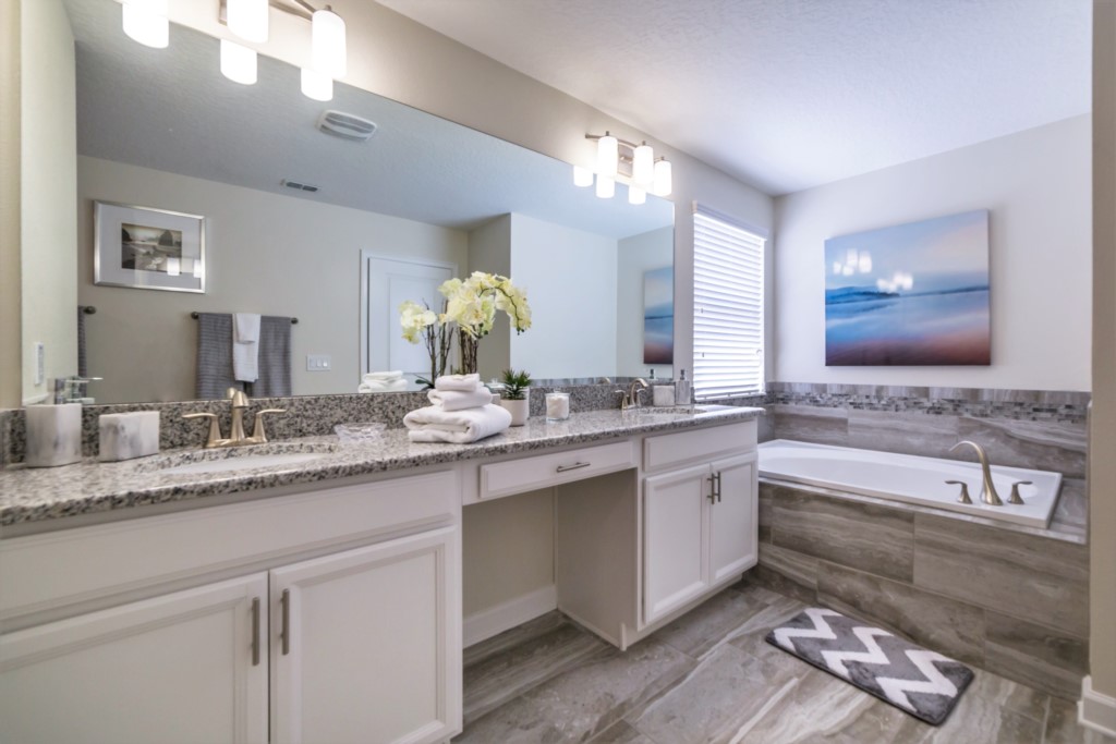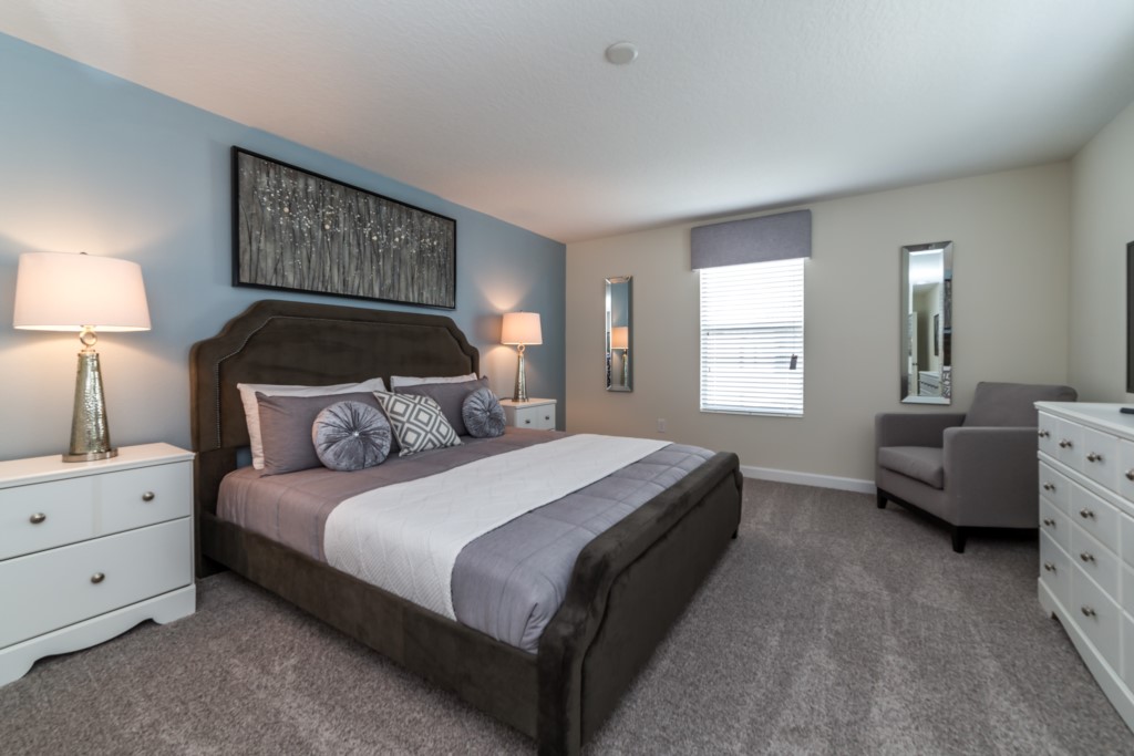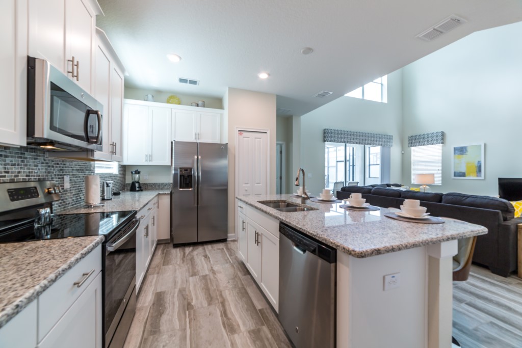 Welcome to the SINGLE FAMILY HOME of your dreams in Kissimmee!! This 5 bedroom and 5 bathroom rental home in 2 floors is located in the Storey Lake Resort Community. The 5 bedrooms and 2 living rooms, all together with 7 LED TVs, come in handy to sleep up to 1O guests (2 king beds 2 queen and 1 set of twins ). The large kitchen is a chef’s dream to cook in, with upgraded cabinetry, granite countertops and black/stainless steel appliances. Take a break and cool off in your very own pool/jacuzzi and dine poolside at your leisure. For your convenience, this home includes a washer and dryer, FREE WIFI . With this dream home, a fantastic vacation awaits for your Family...