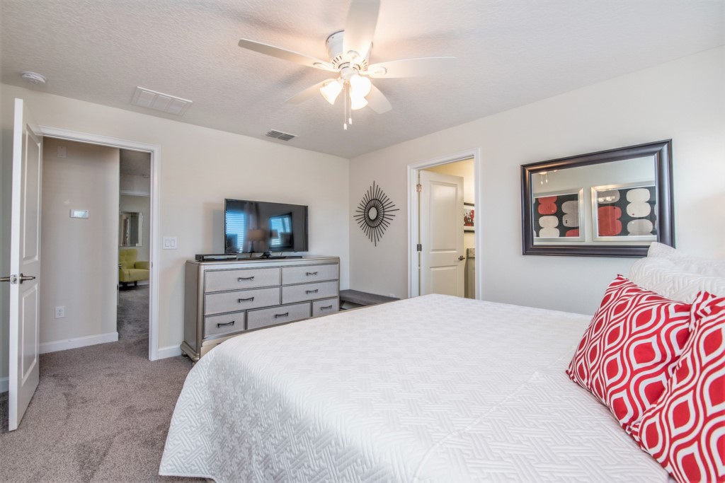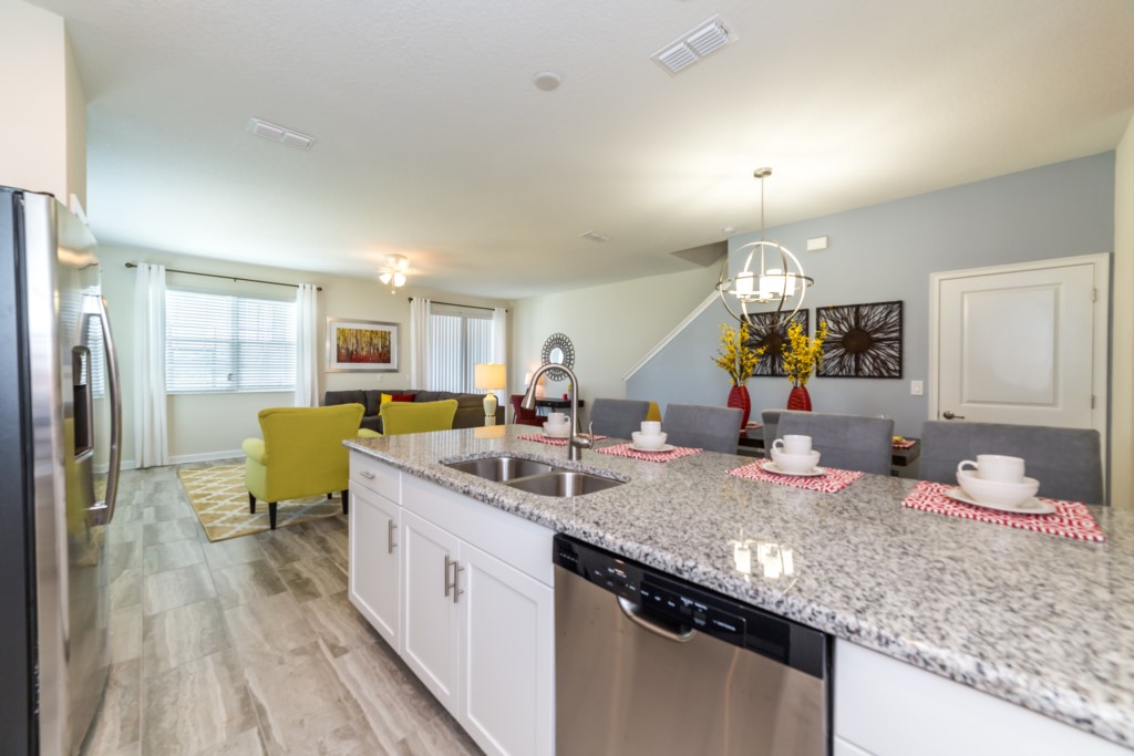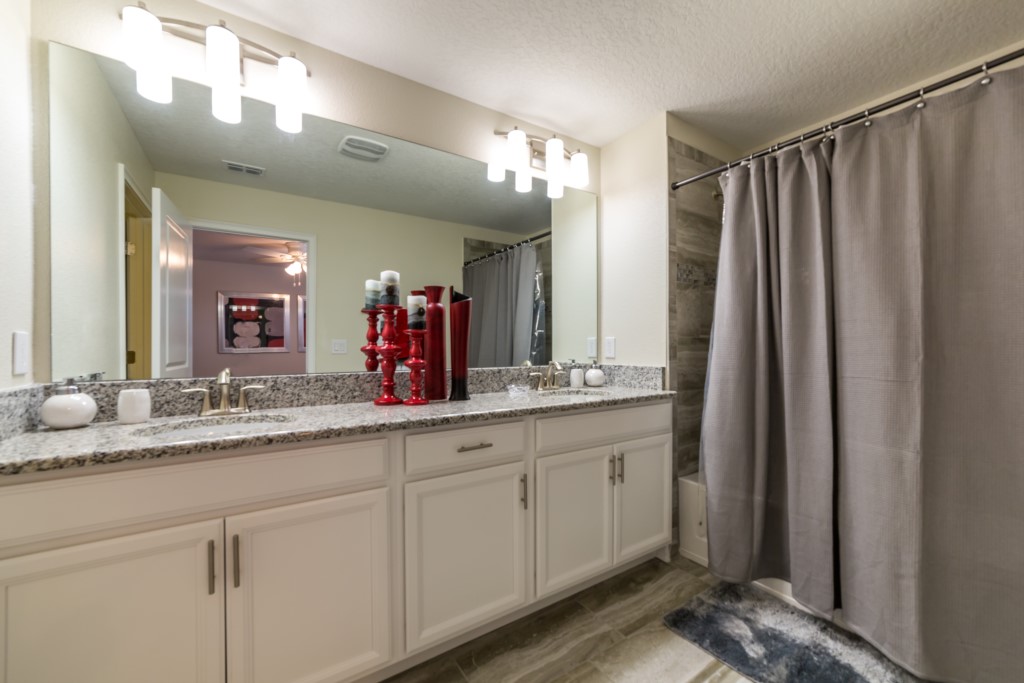 Welcome to the SINGLE FAMILY HOME of your dreams in Kissimmee!! This 5 bedroom and 5 bathroom rental home in 2 floors is located in the Storey Lake Resort Community. The 5 bedrooms and 2 living rooms, all together with 7 LED TVs, come in handy to sleep up to 10 guests (2 king beds 2 queen and 1 twin room ). The large kitchen is a chef’s dream to cook in, with upgraded cabinetry, granite countertops and black/stainless steel appliances. Take a break and cool off in your very own pool/jacuzzi and dine poolside at your leisure. For your convenience, this home includes a washer and dryer, FREE WIFI . With this dream home, a fantastic vacation awaits for your Family...