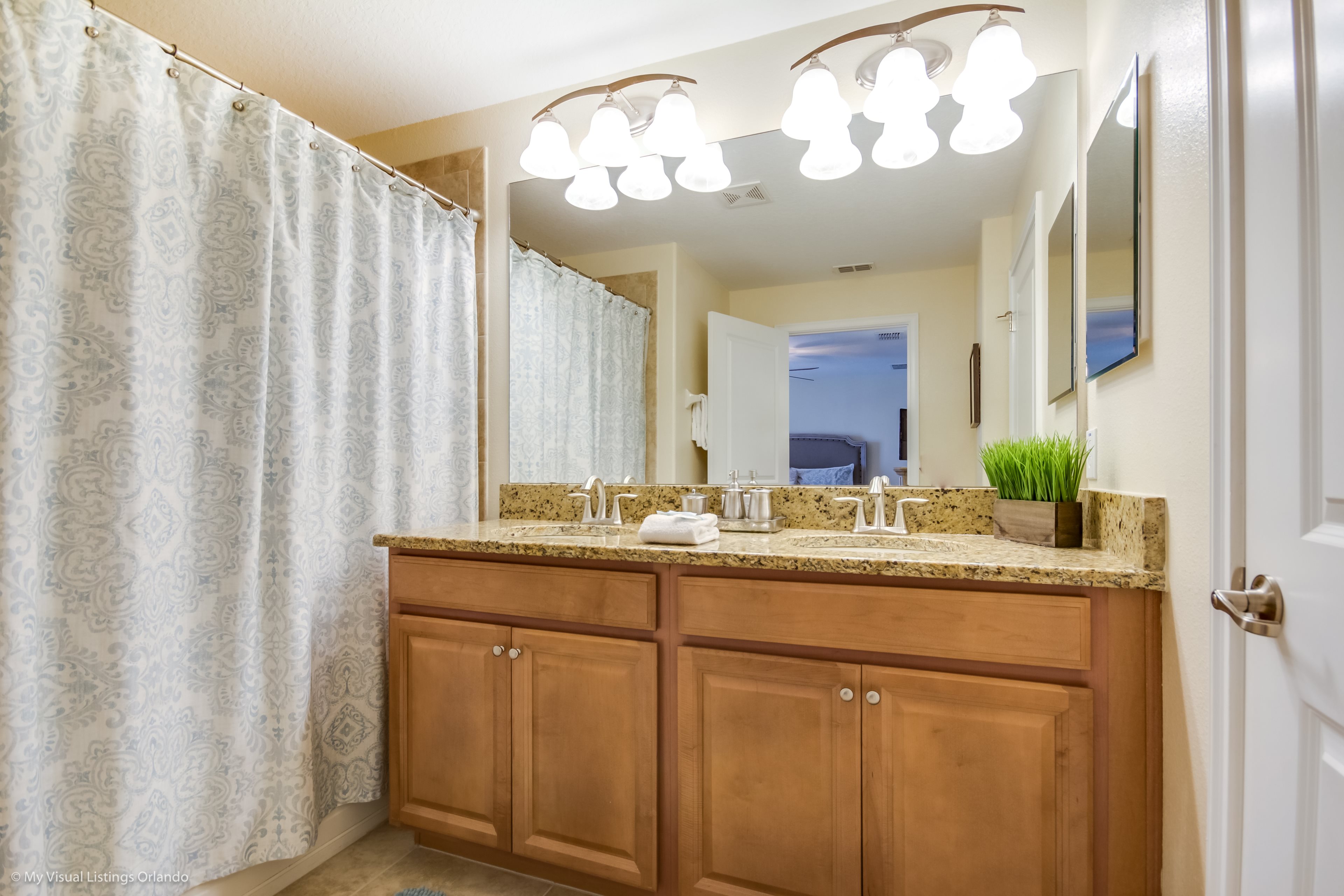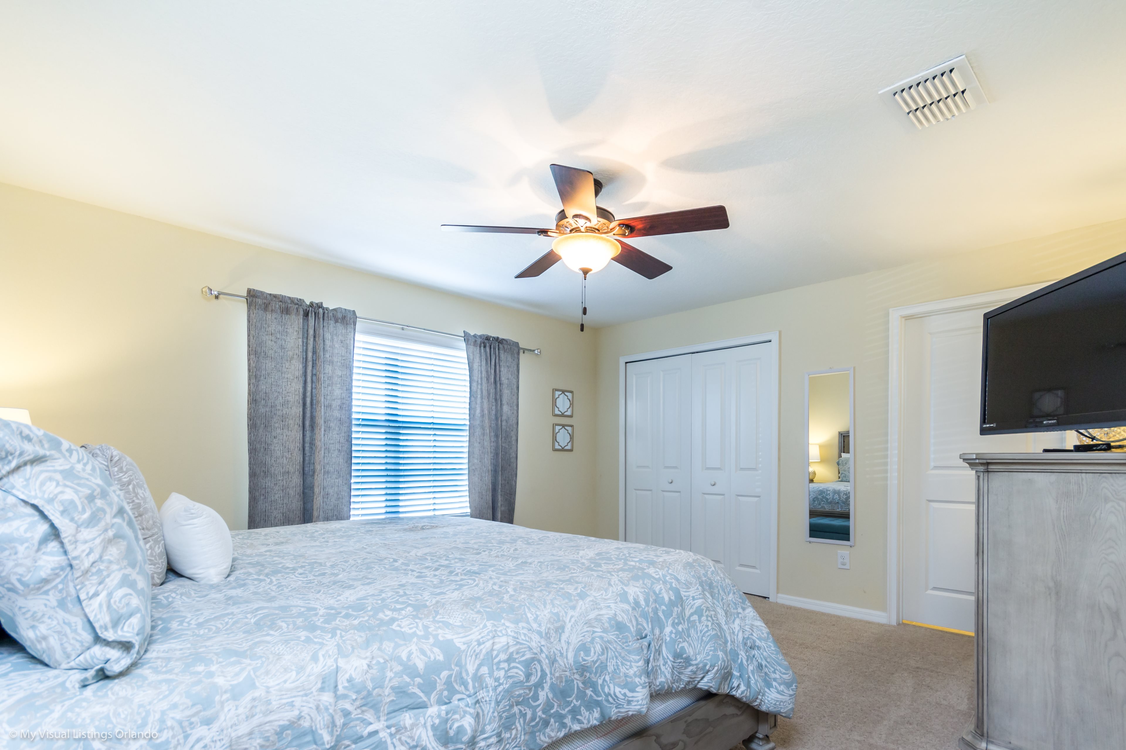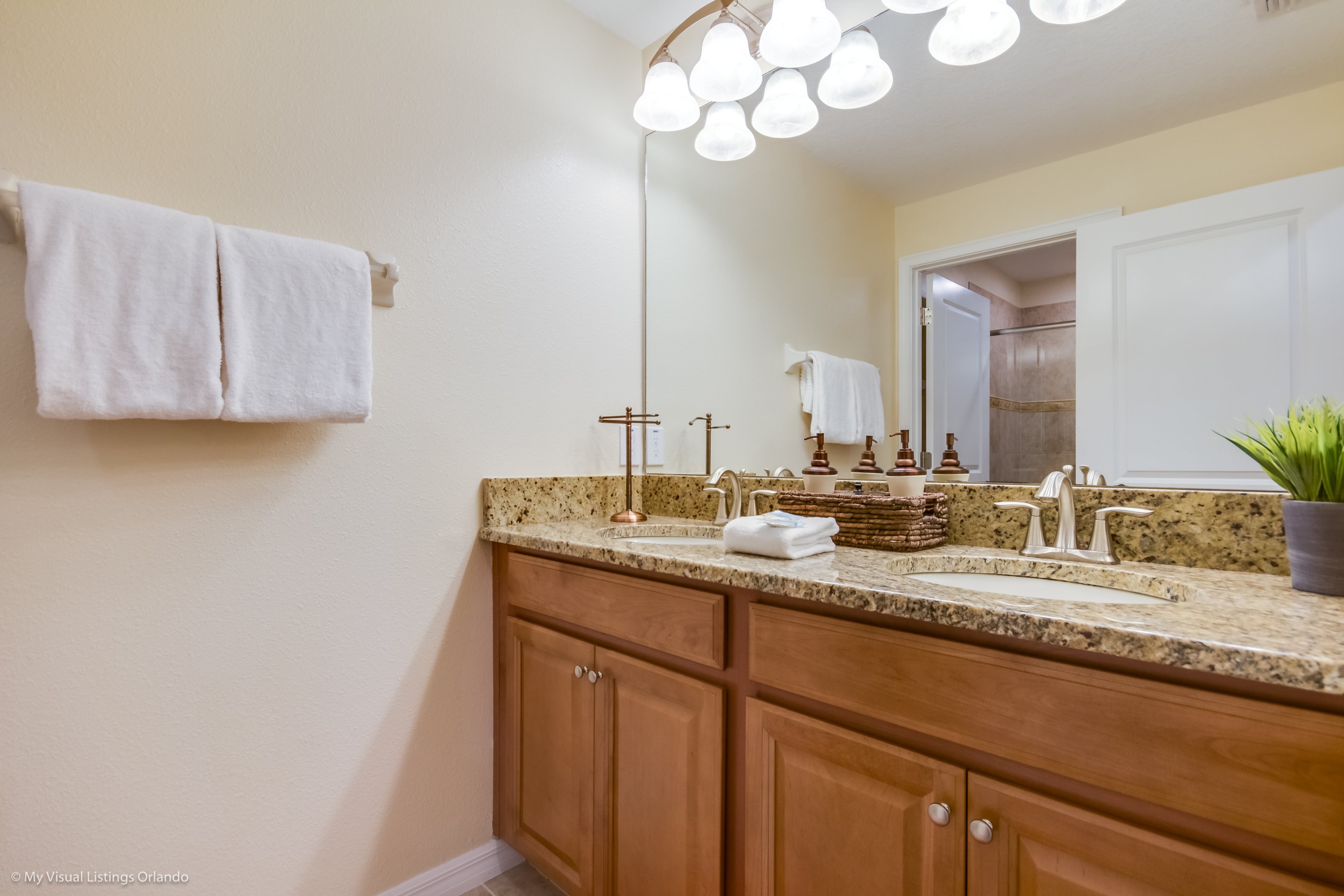 Head upstairs to find 3 Bedrooms. The Master bedroom en-suite features a King size bed and flat screen TV with it's own private shower. The kids will love the sports themed room with 2 Twin beds and the Mickey themed with 2 Twin beds. The 2 twin bedrooms share a bathroom upstairs and the laundry room is also located upstairs for your convenience.